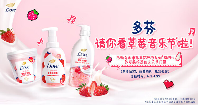 Dove recommended by Sun Yingsha Fruit Milk Shower Gel Sweet Strawberry Fragrance Bath Bubble 400g Moisturizing and Long-lasting Fragrance