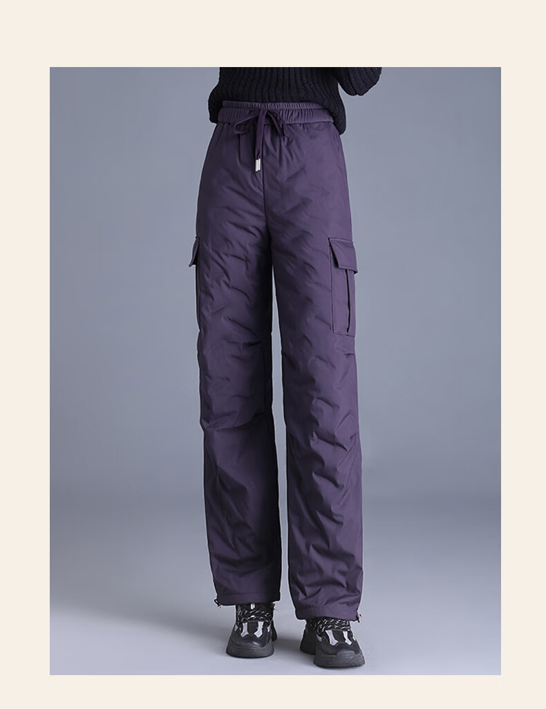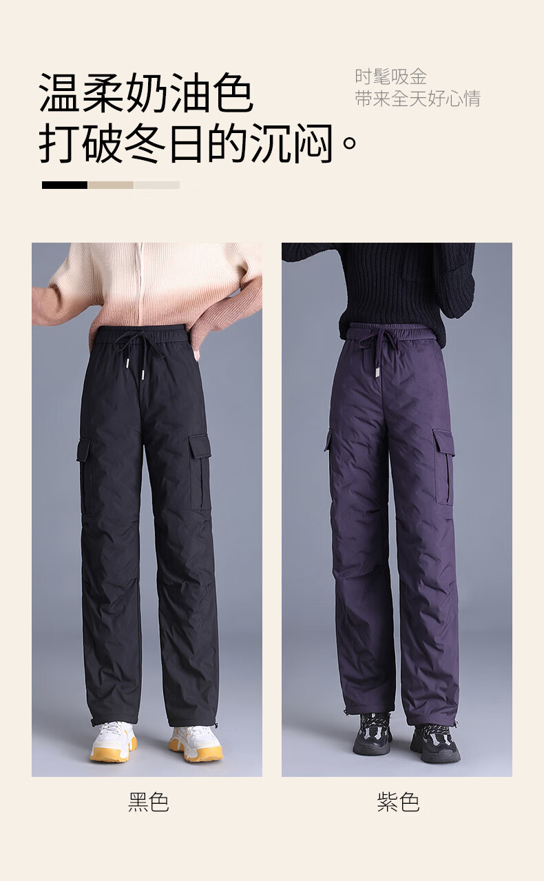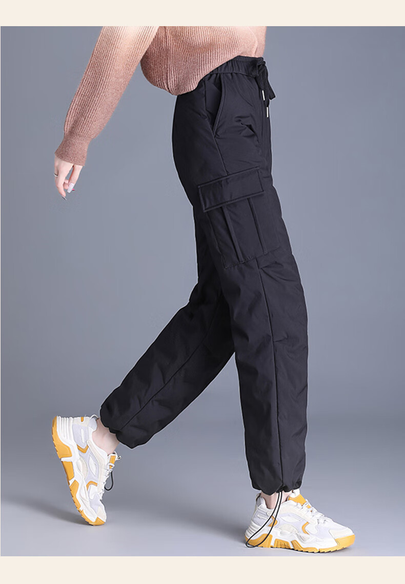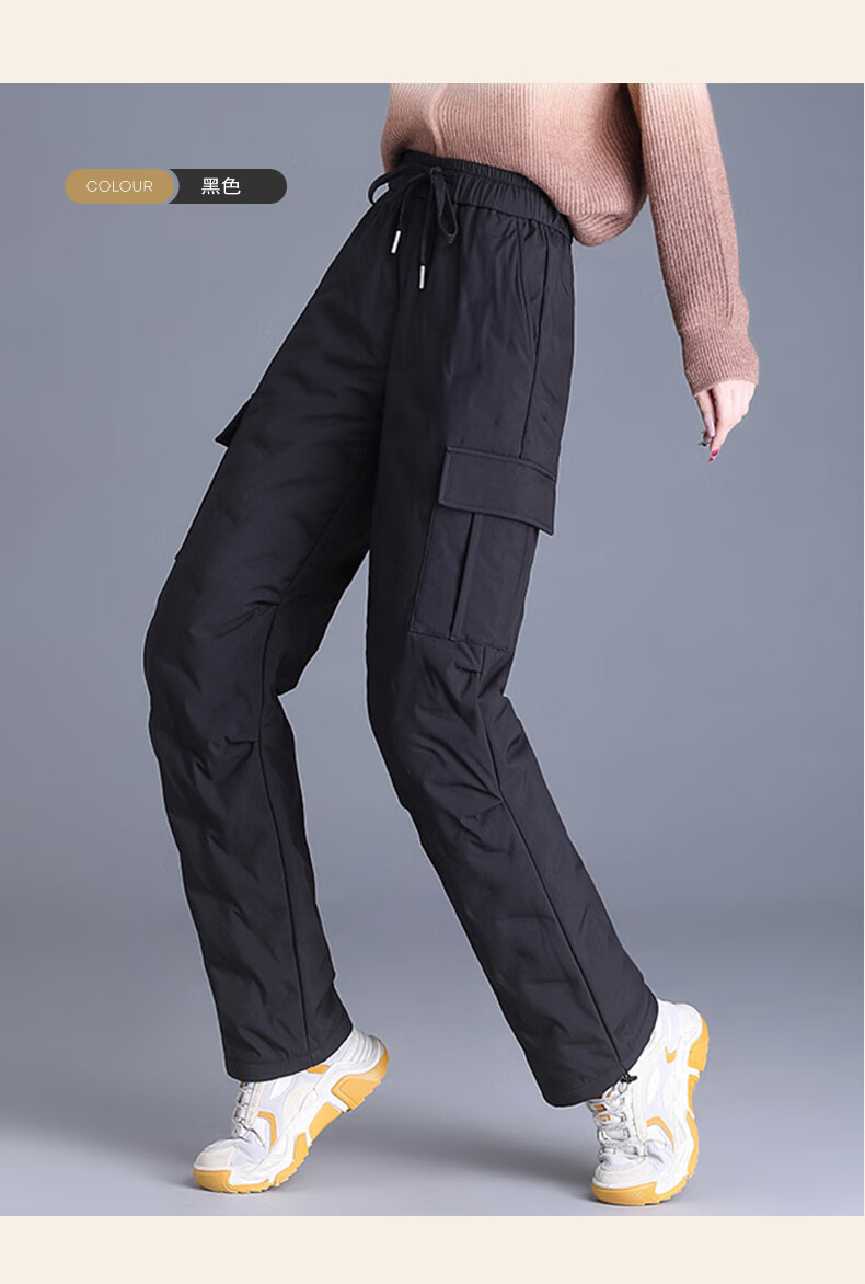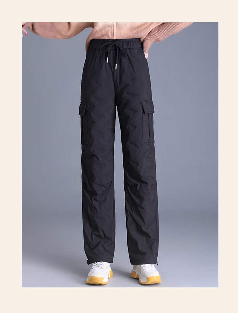 Snow Flying Down Pants Women's Autumn and Winter Warm Elastic Waist Drawstring Workwear Straight Trousers Black 165/72A