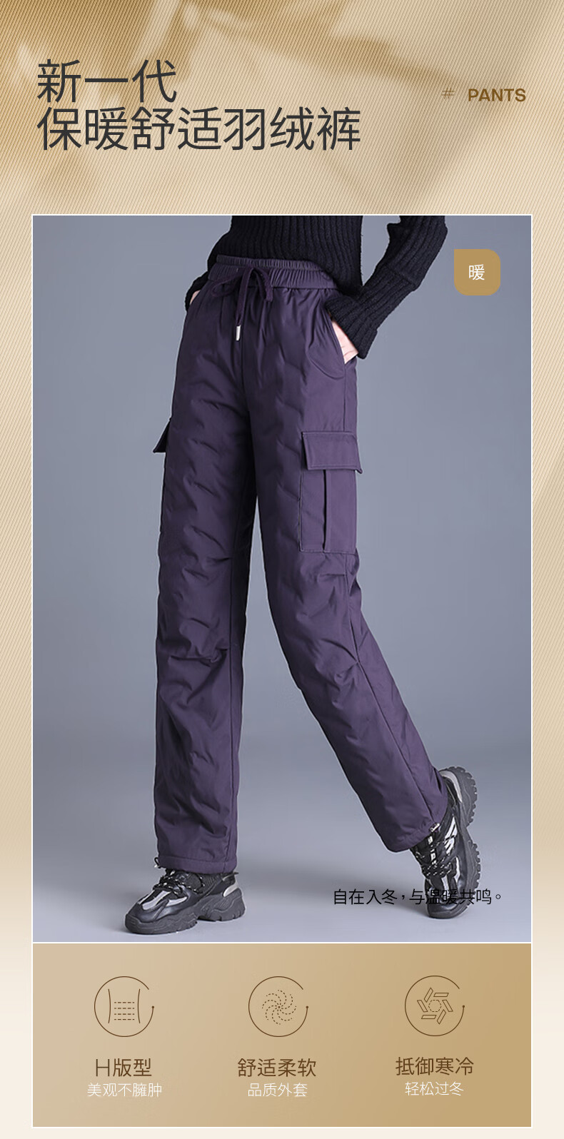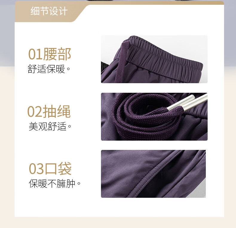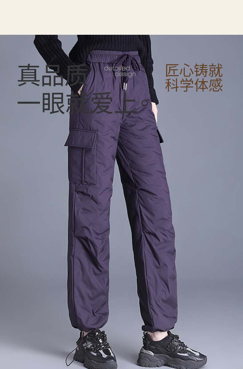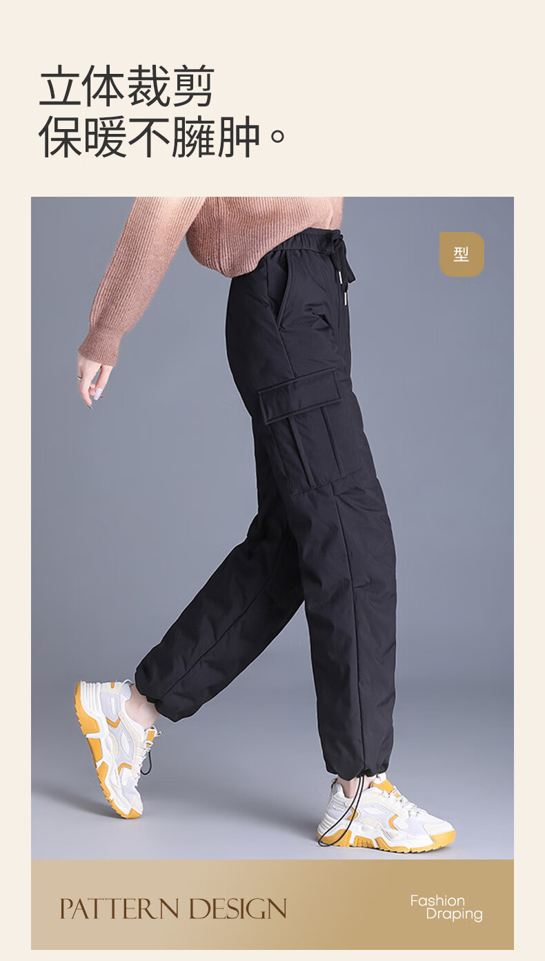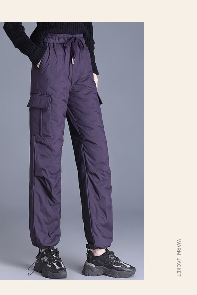 Snow Flying Down Pants Women's Autumn and Winter Warm Elastic Waist Drawstring Workwear Straight Trousers Black 165/72A