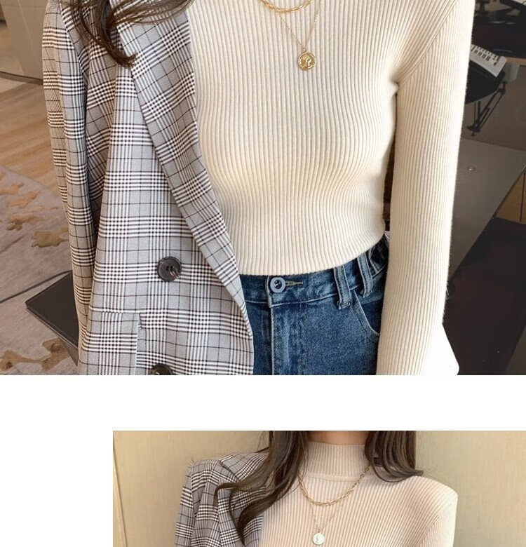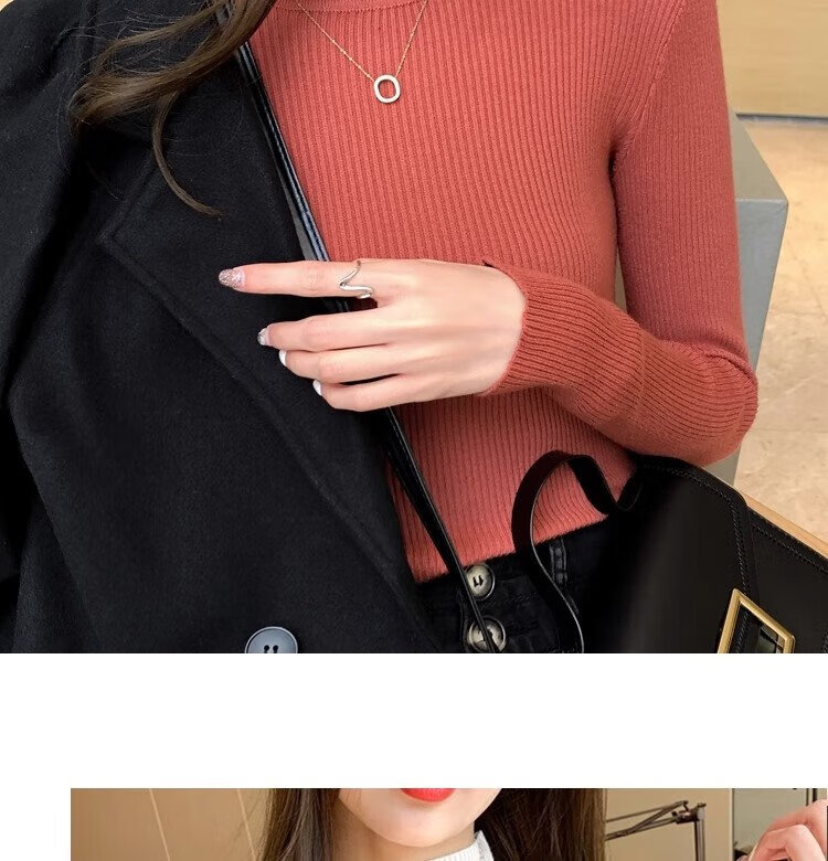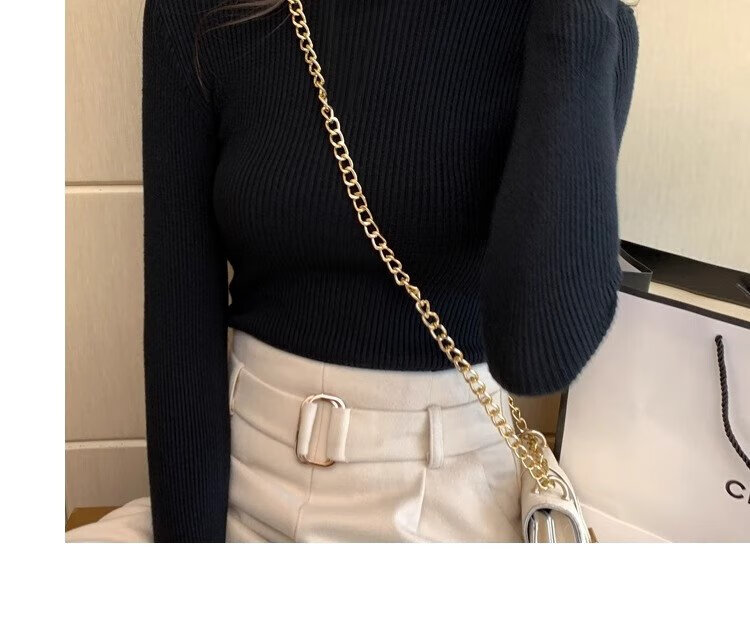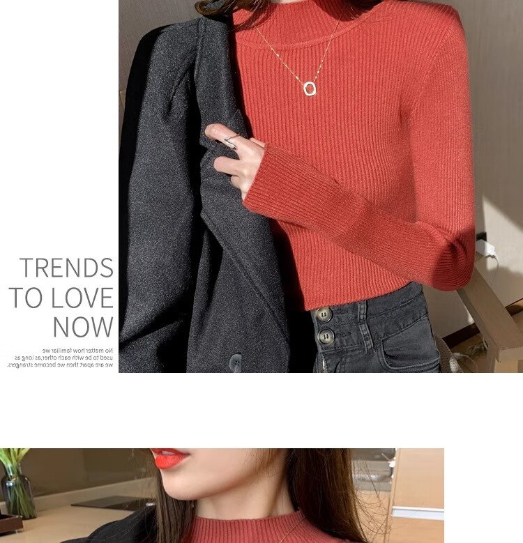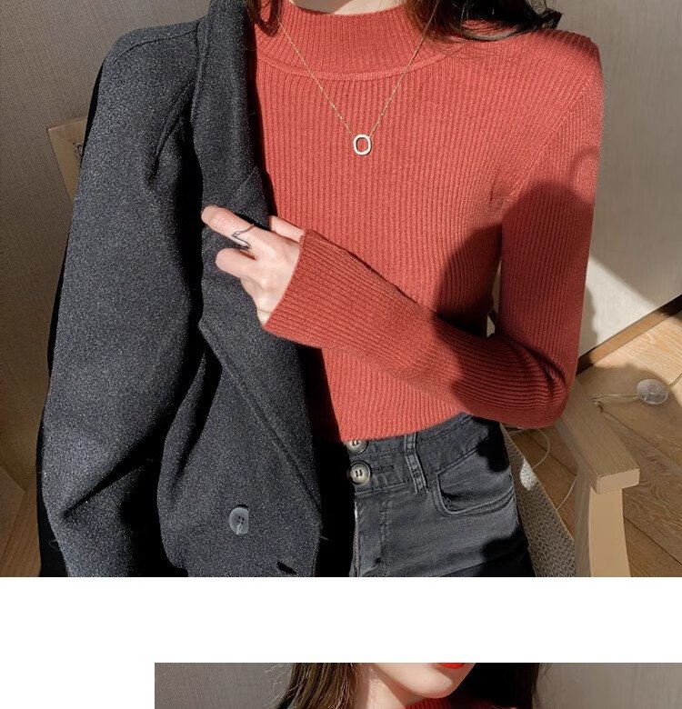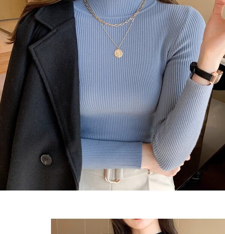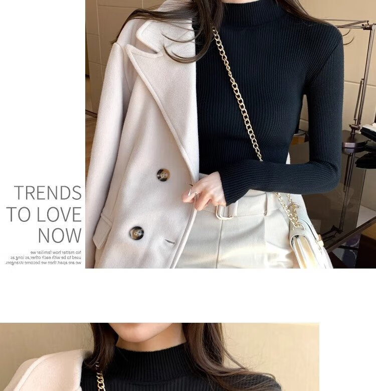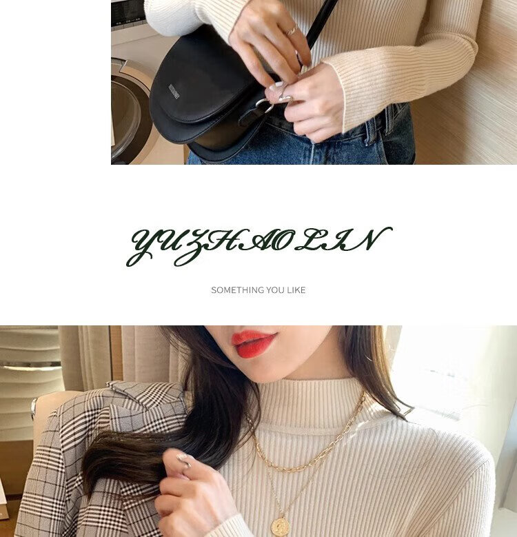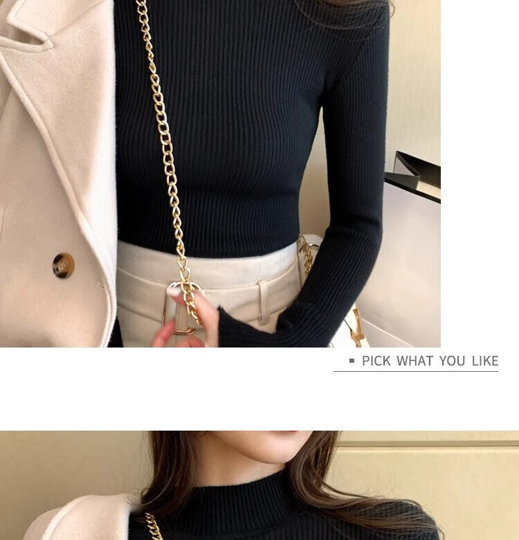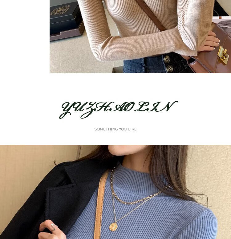 Yu Zhaolin half turtleneck knitted bottoming shirt for women autumn and winter sweater for women versatile slim long-sleeved tights black