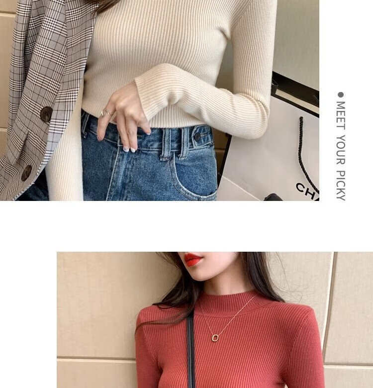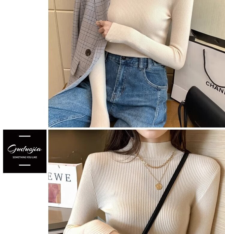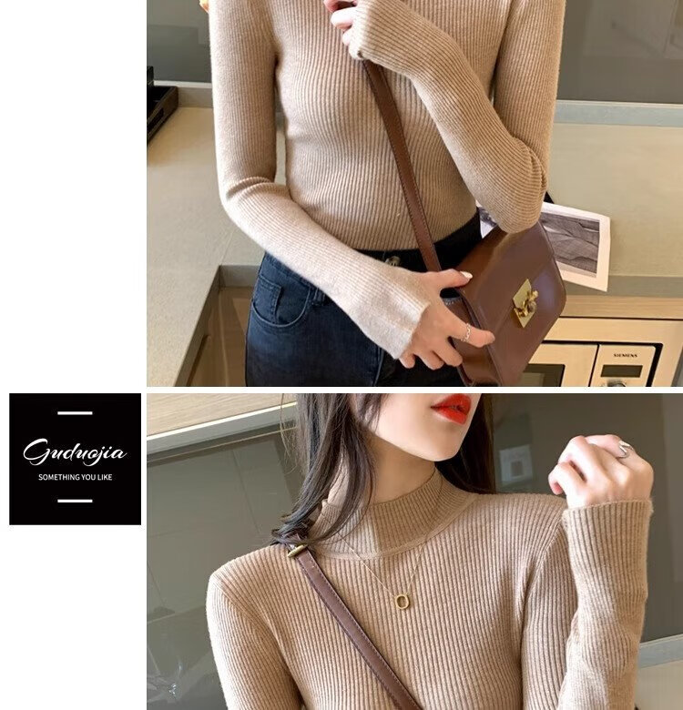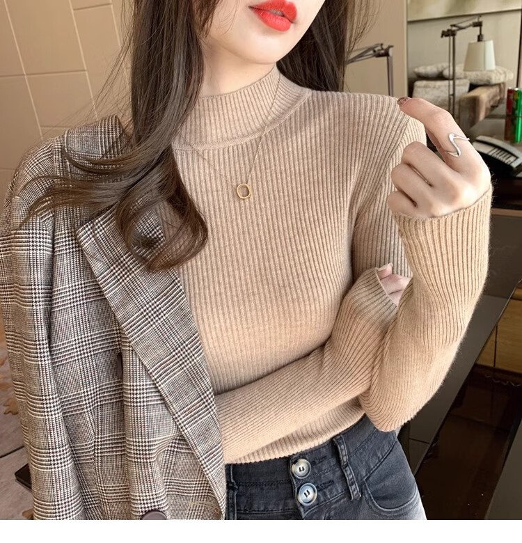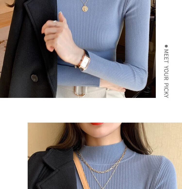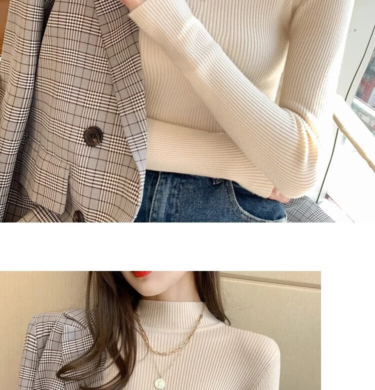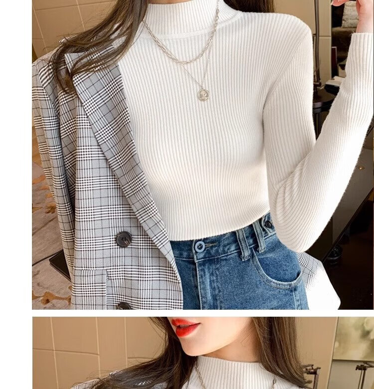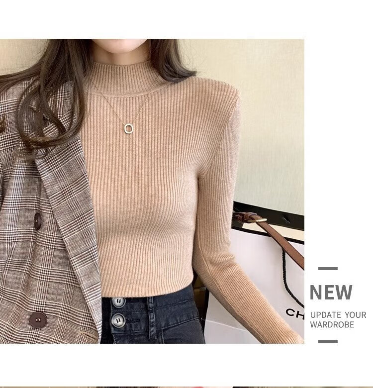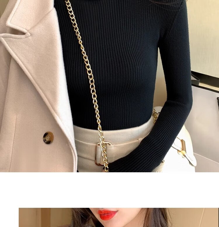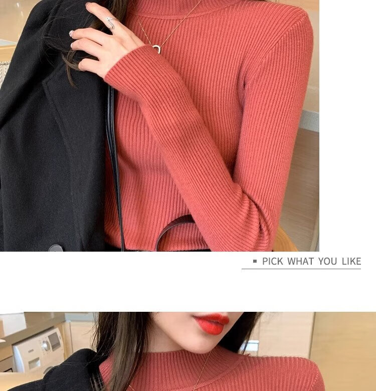Yu Zhaolin half turtleneck knitted bottoming shirt for women autumn and winter sweater for women versatile slim long-sleeved tights black