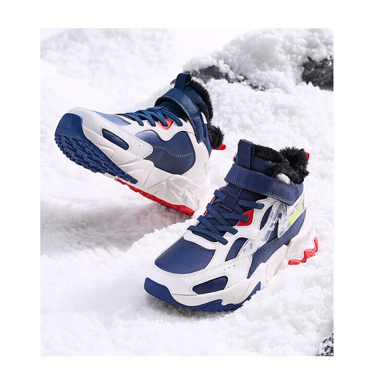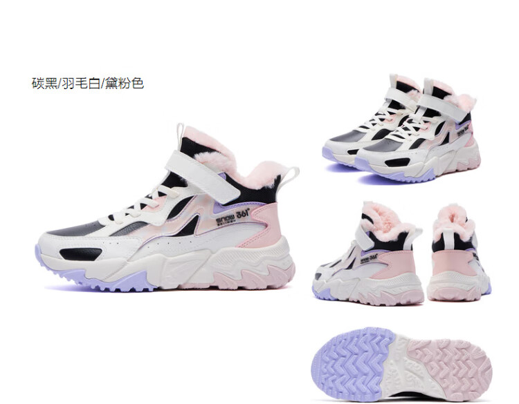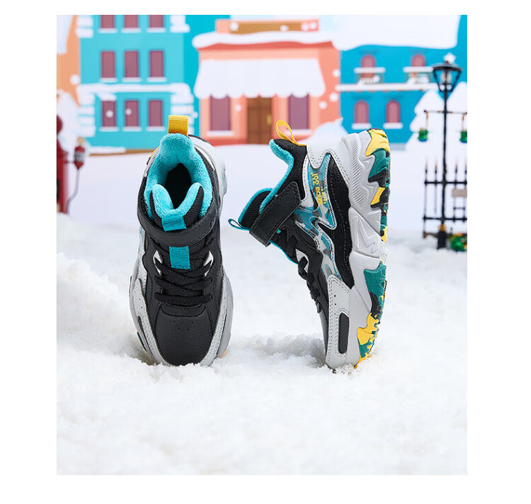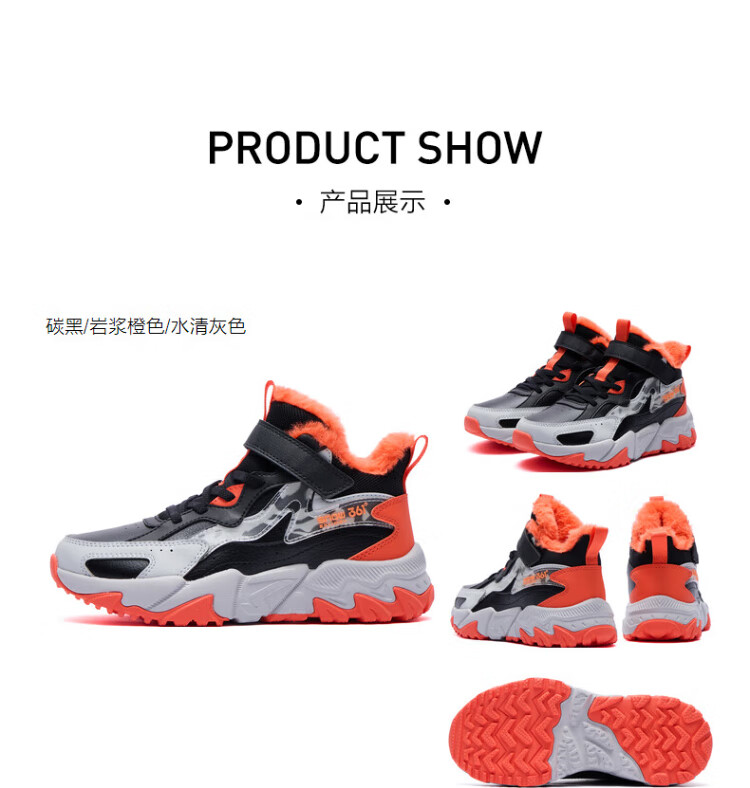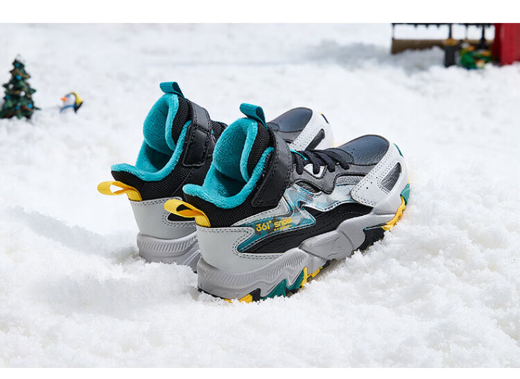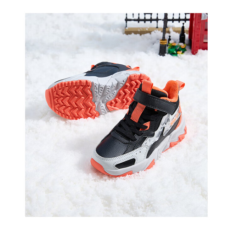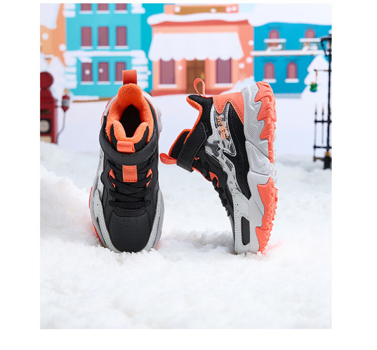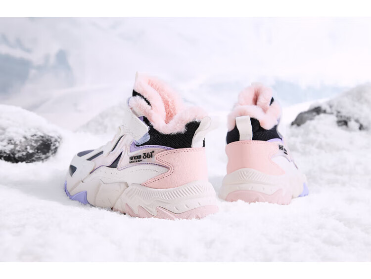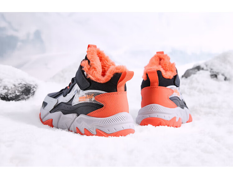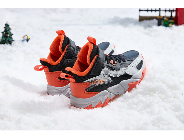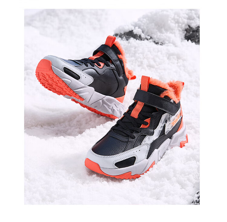 361 Children's cotton shoes 25 winter boys and girls 3-14 years old plus velvet warm leather outdoor sports shoes black 35