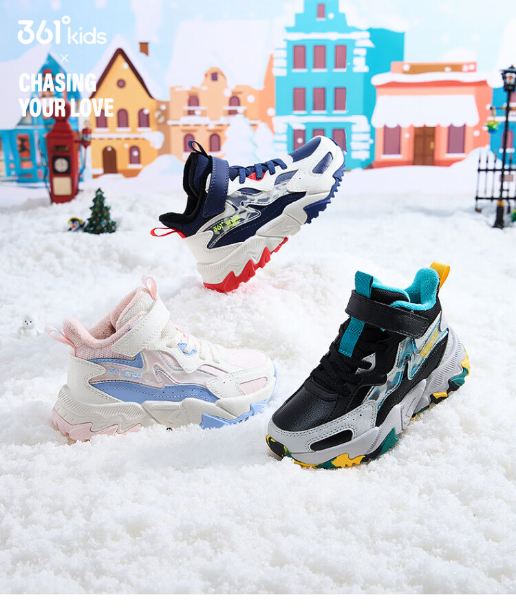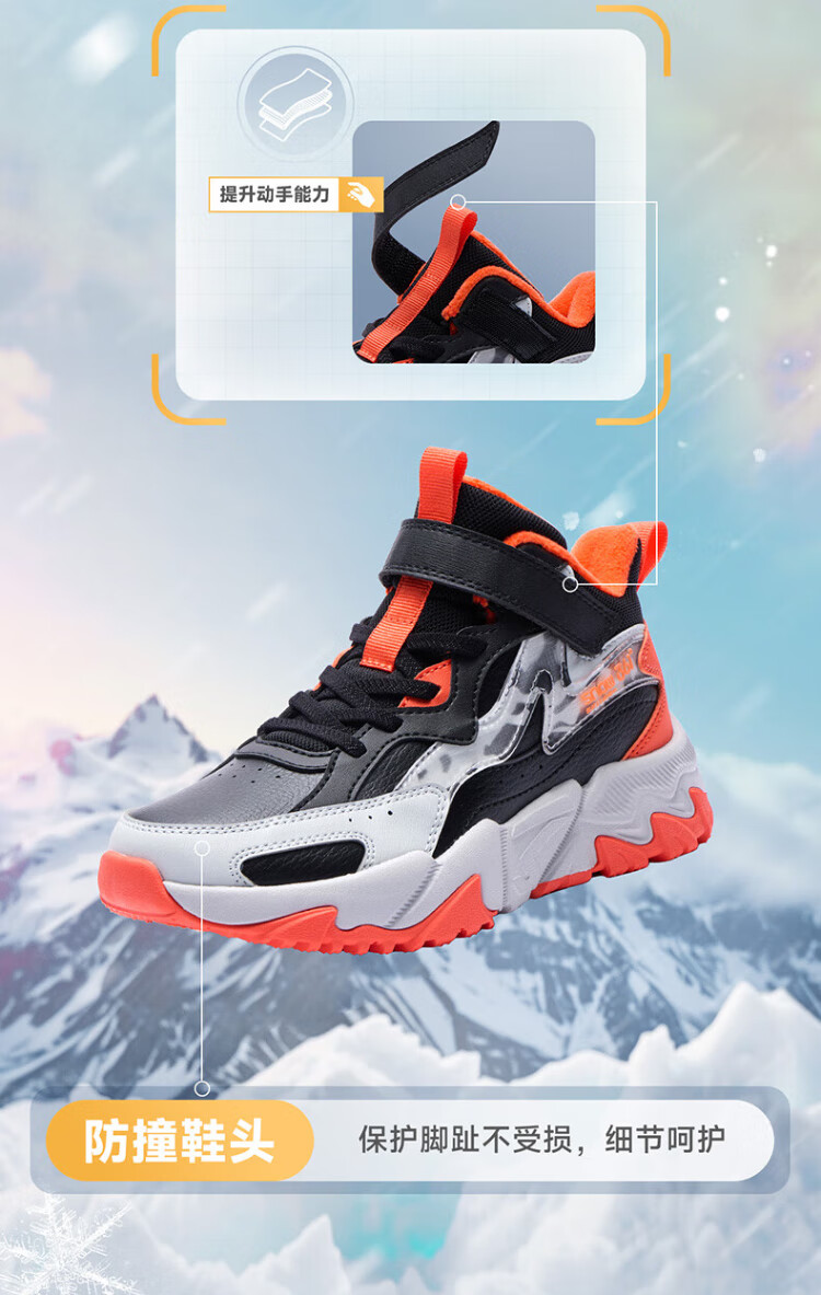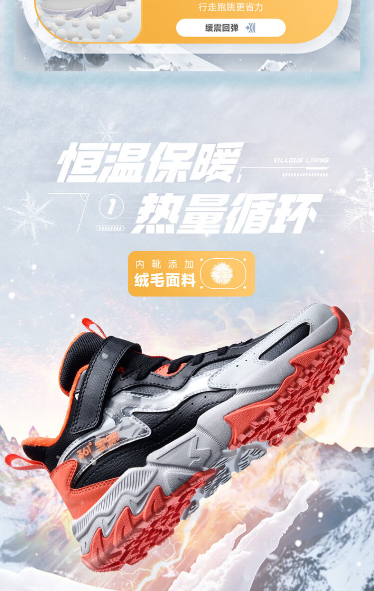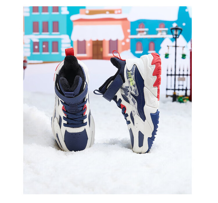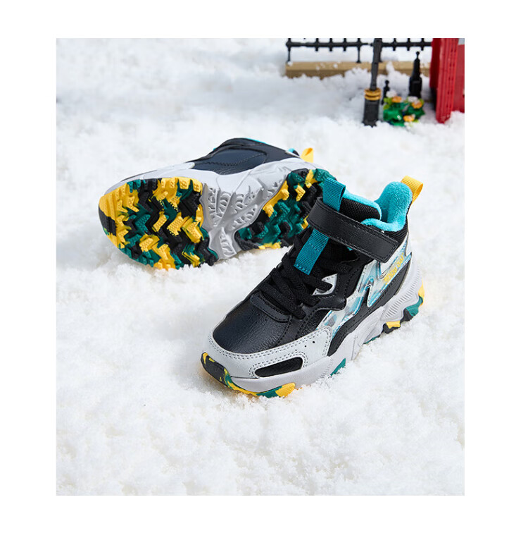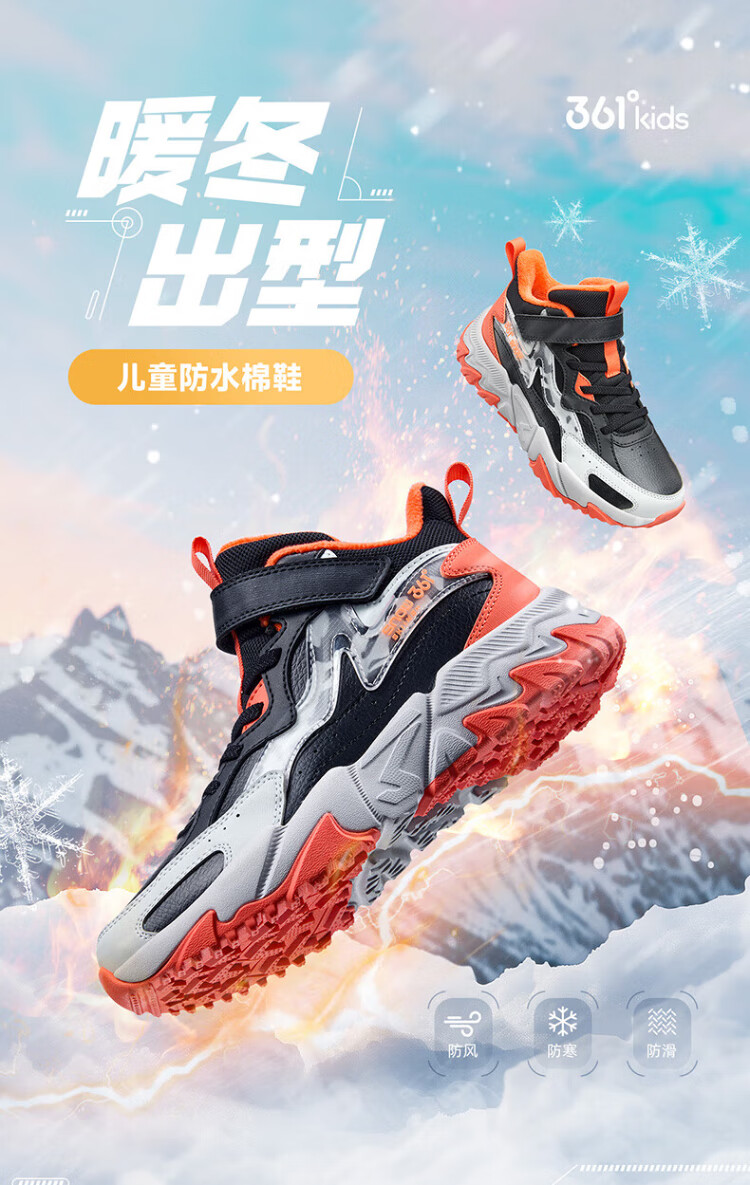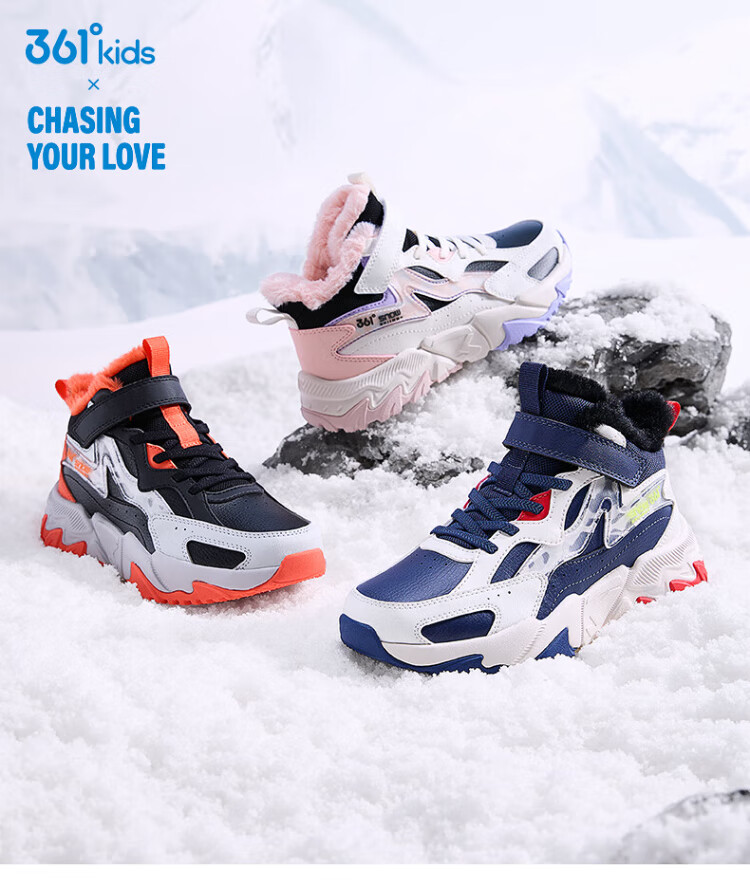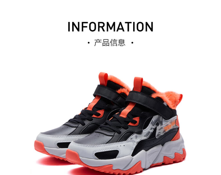 361 Children's cotton shoes 25 winter boys and girls 3-14 years old plus velvet warm leather outdoor sports shoes black 35