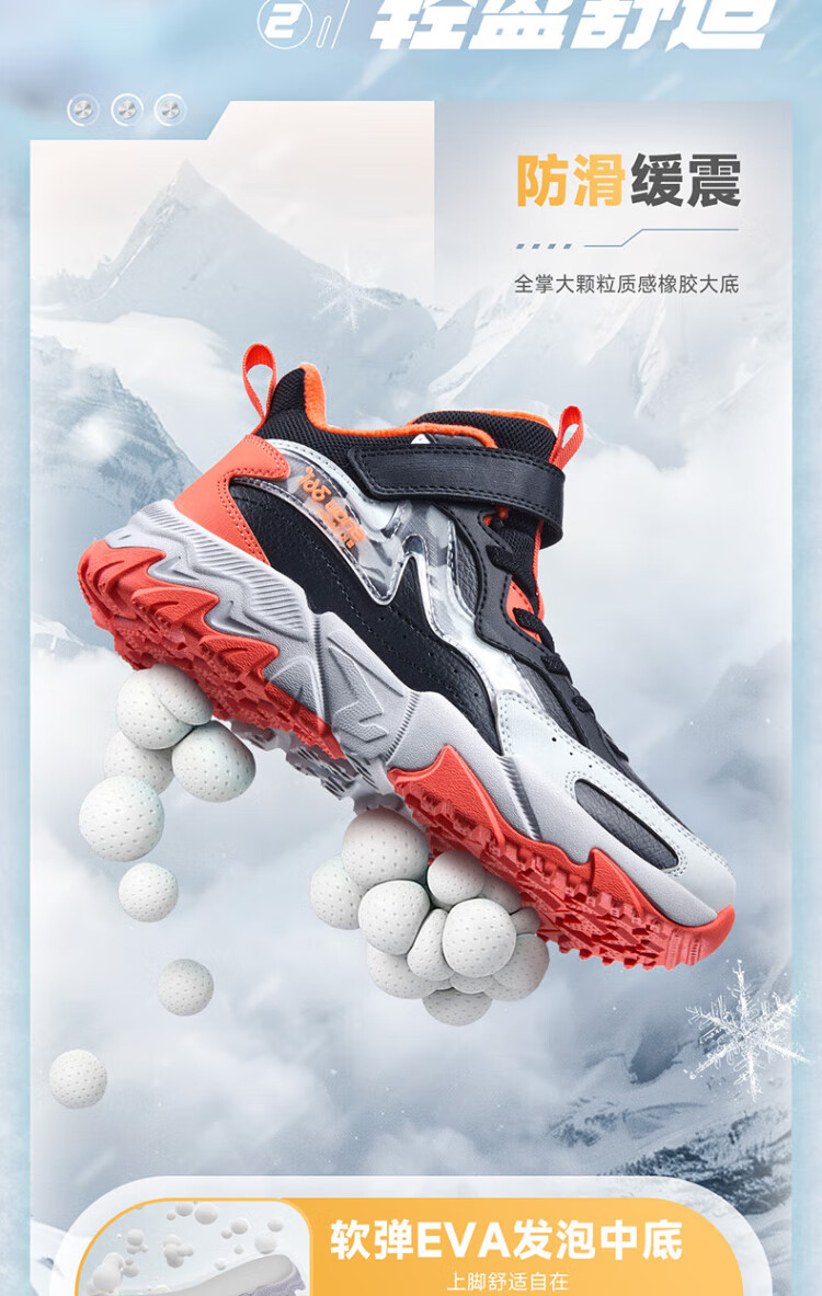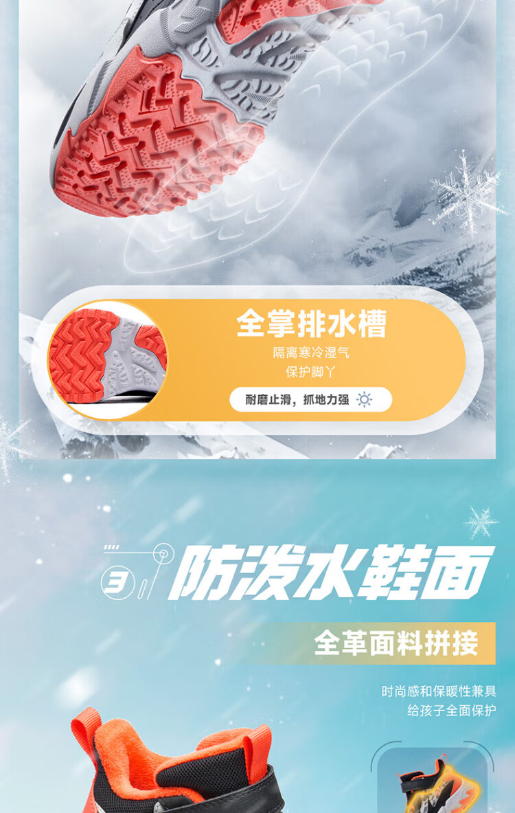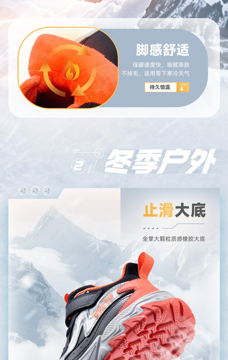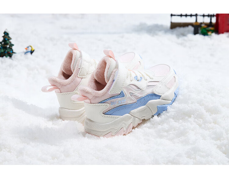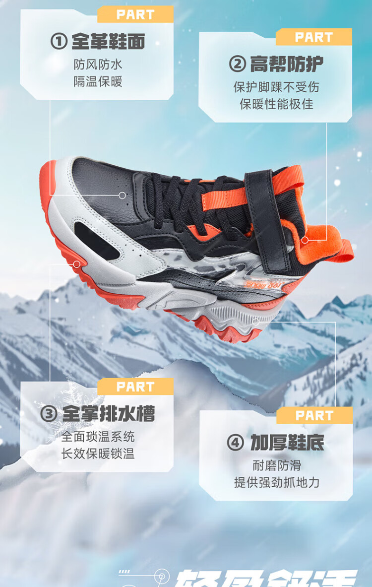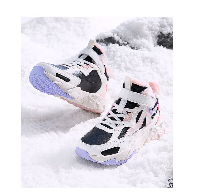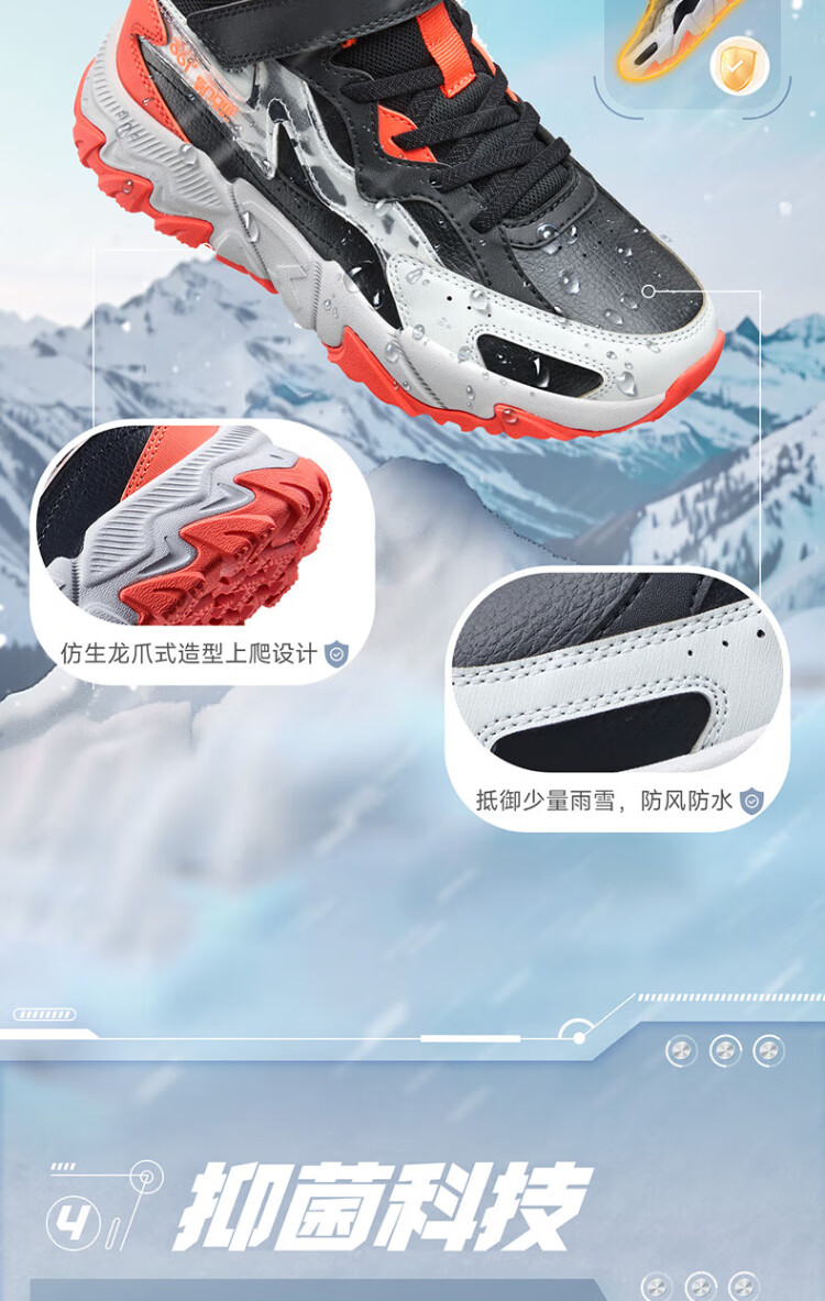 361 Children's cotton shoes 25 winter boys and girls 3-14 years old plus velvet warm leather outdoor sports shoes black 35