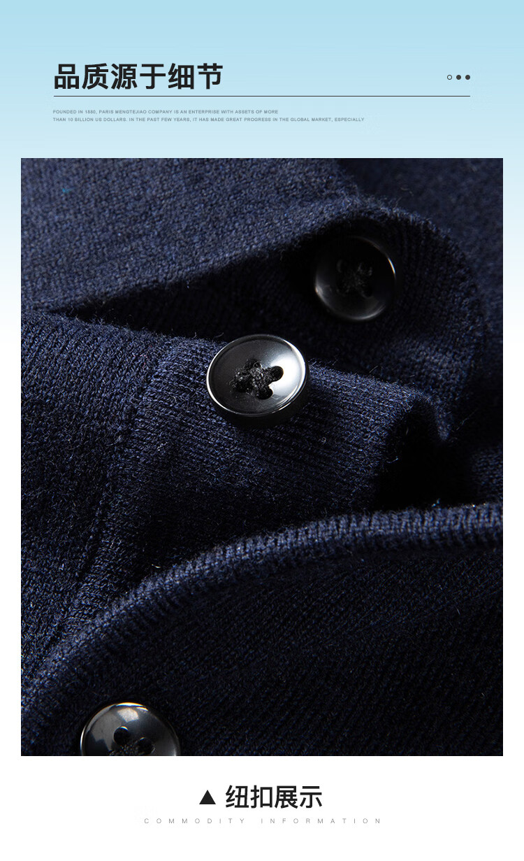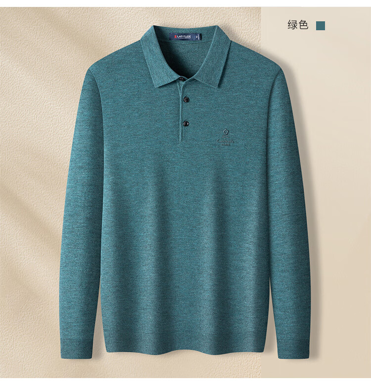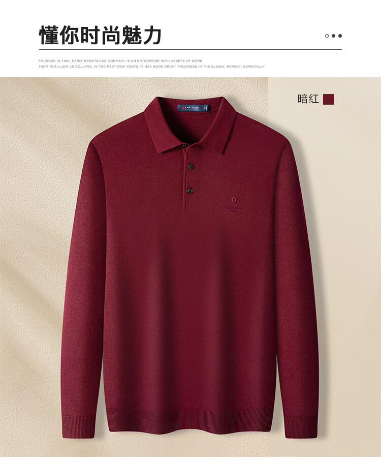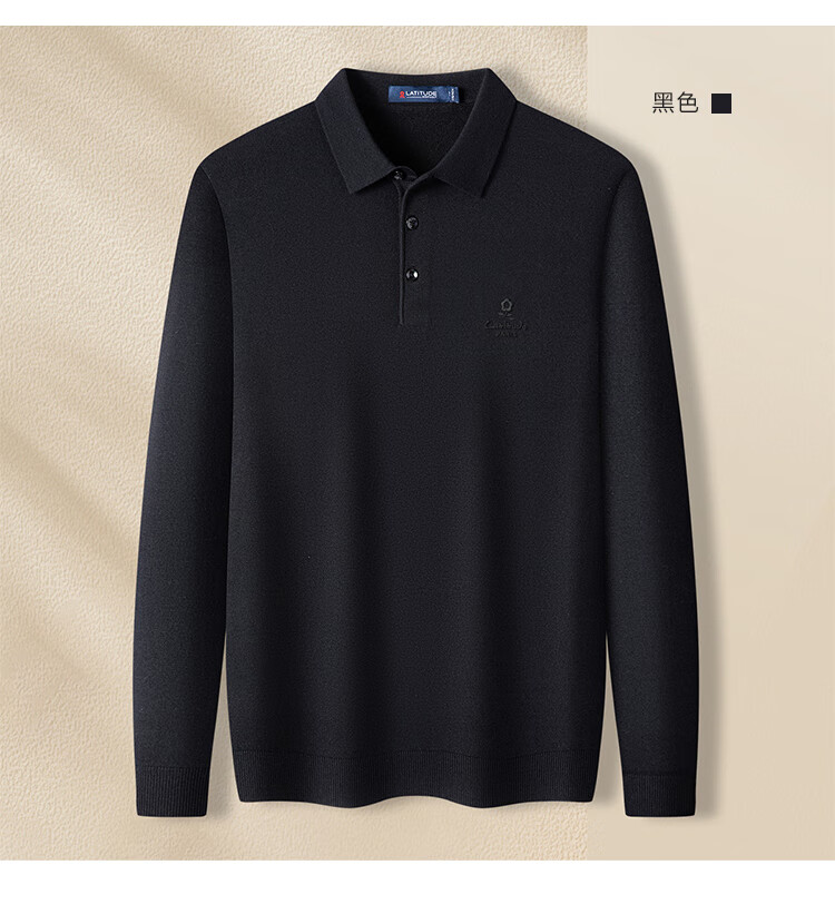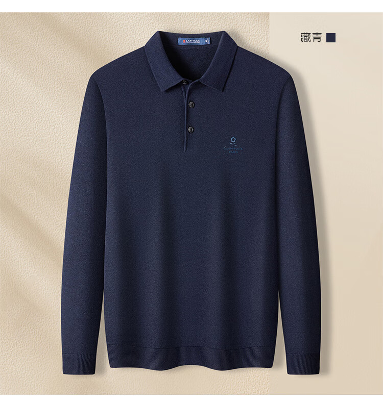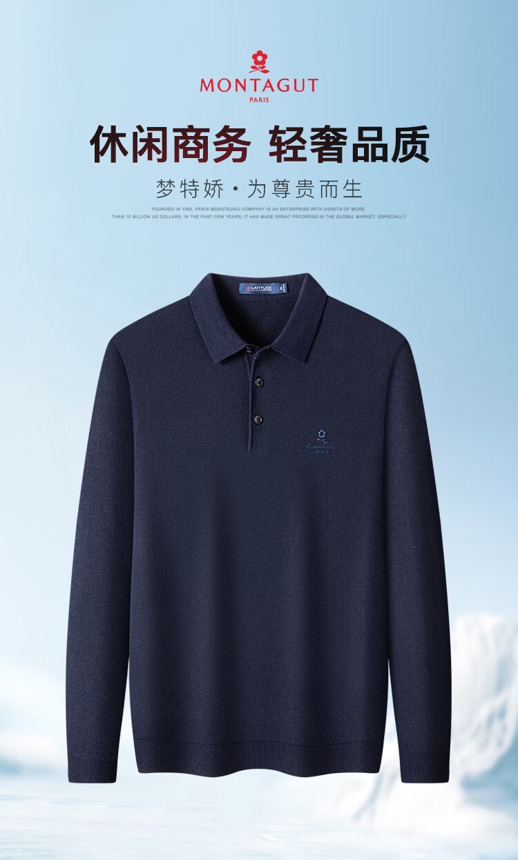 MONTAGUT Sheep Wool Blended Autumn and Winter Men's Polo Shirt Long Sleeve Embroidered Soft Knitted T-Shirt Navy 50