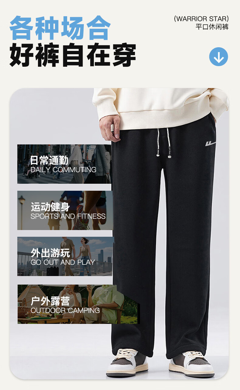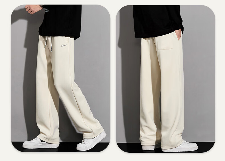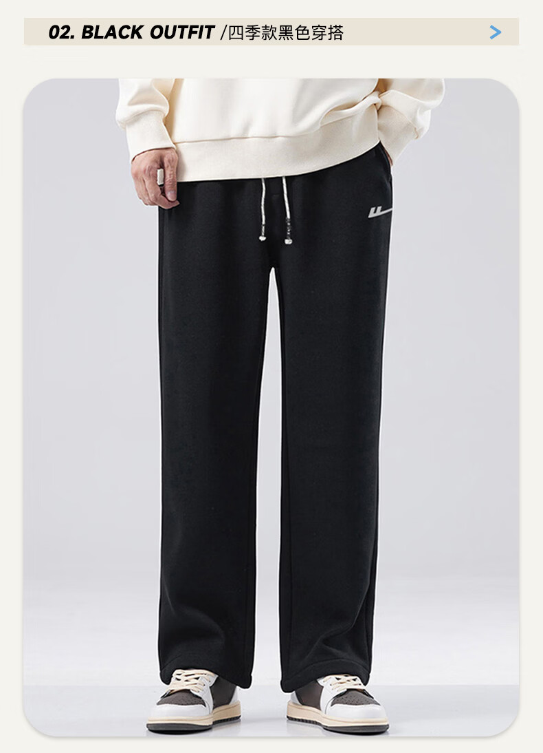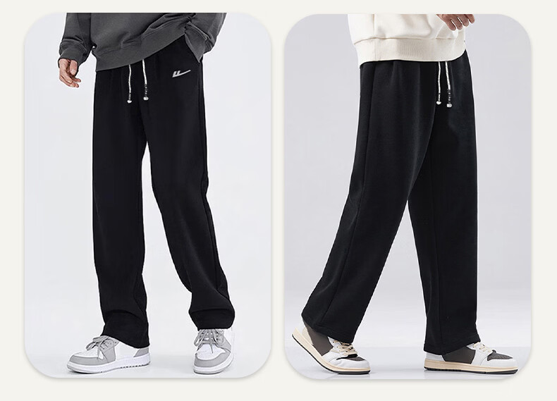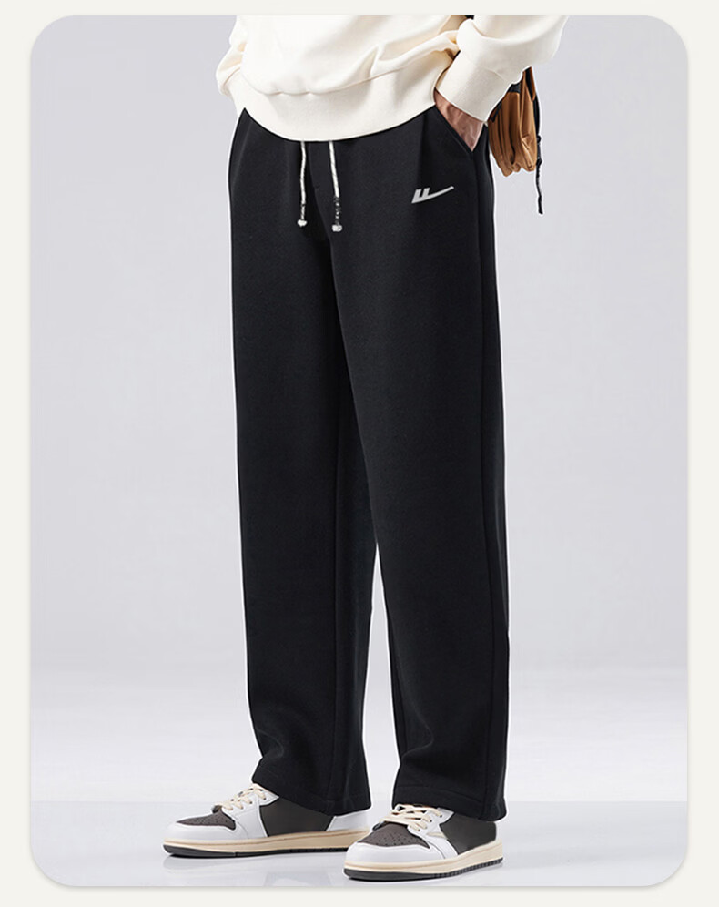 Pull back casual pants men's winter velvet straight wide-leg pants men's warm sweatpants men's sports pants men's pants black XL