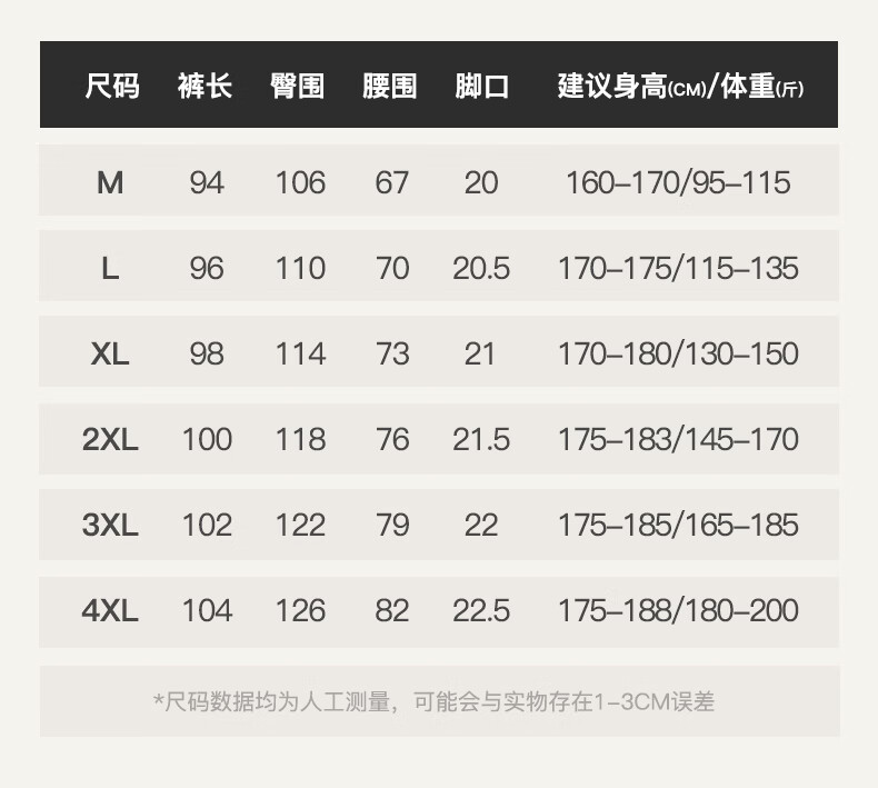 Outseam (cm) 99 cm 101.5 cm 104 cm 106.5 cm 109 cm