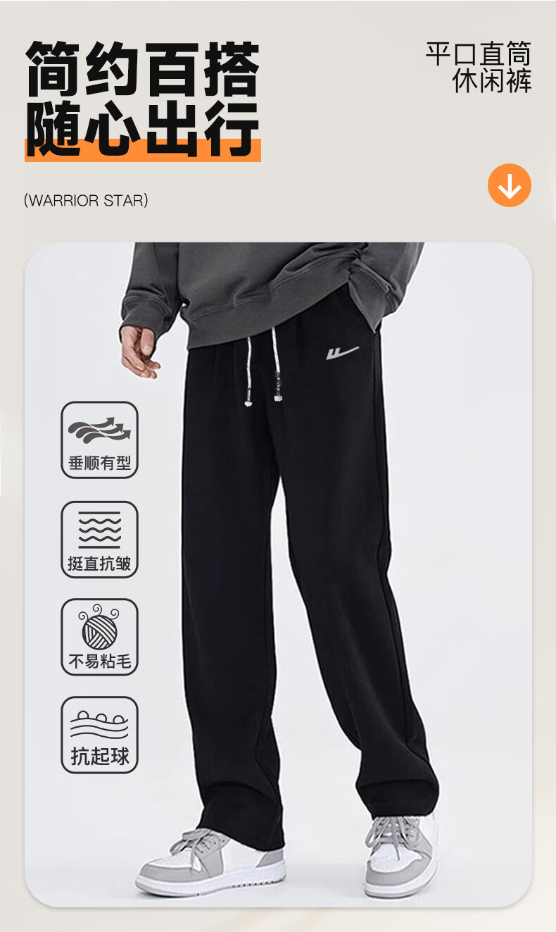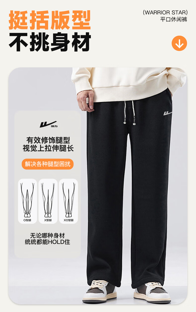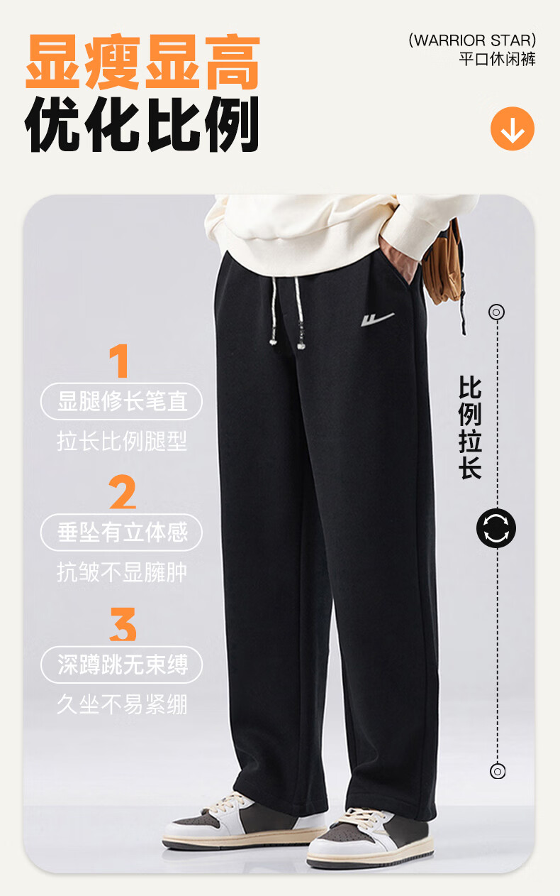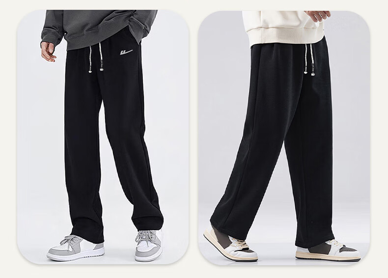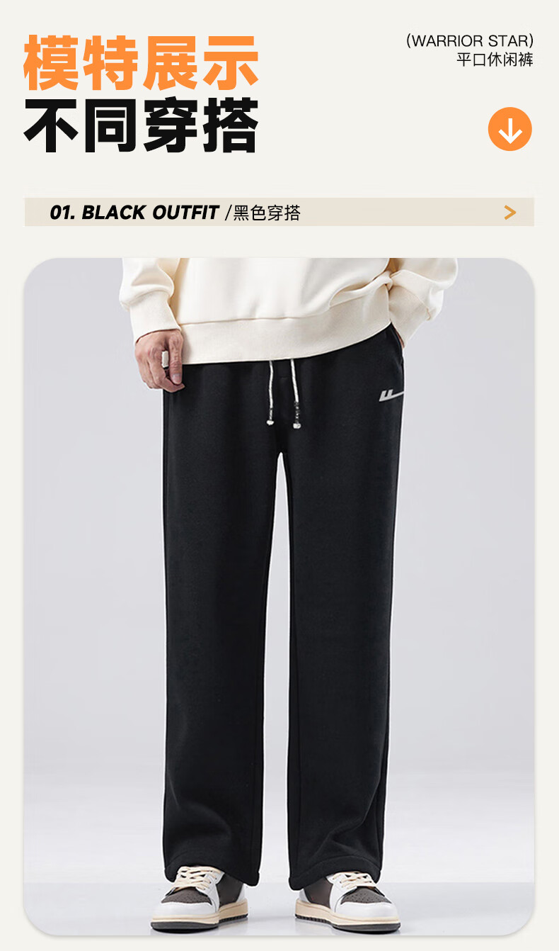 Pull back casual pants men's winter velvet straight wide-leg pants men's warm sweatpants men's sports pants men's pants black XL
