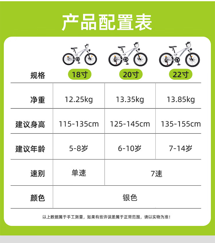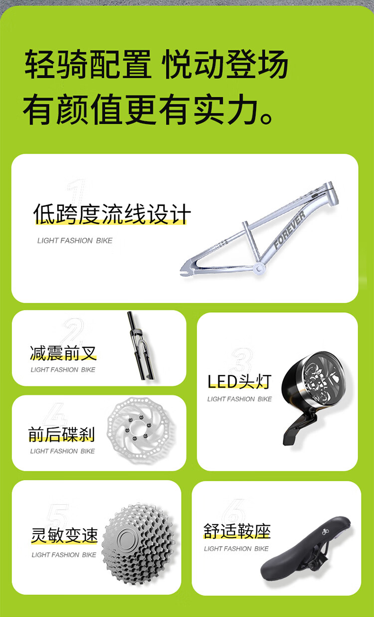FOREVER (FOREVER) children's bicycles, boys and girls, children's bicycles, 22-inch bicycles, 7-speed silver