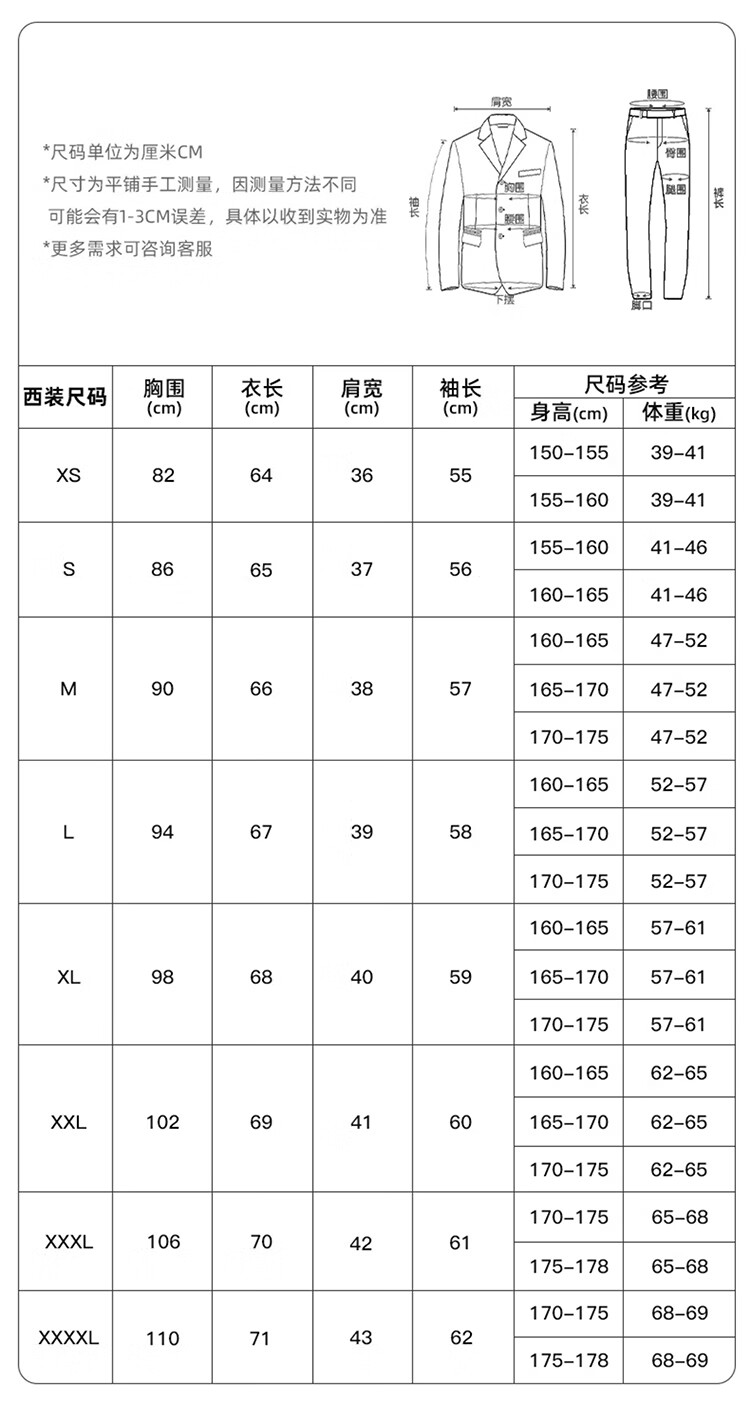 China (cm) 160-165/84-86 165-170 / 88-90 167-172 / 92-96 168-173 / 98-102 170-176 / 106-110