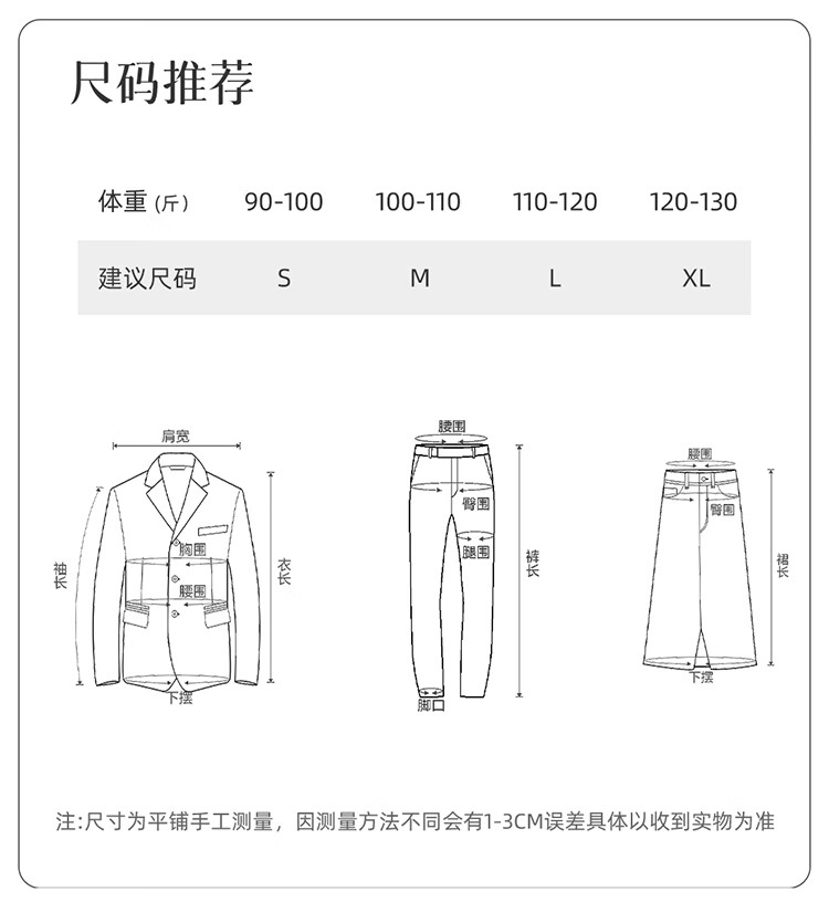 China (cm) 165 / 88-90 170 / 96-98 175 / 108-110 180 / 118-122 185 / 126-130