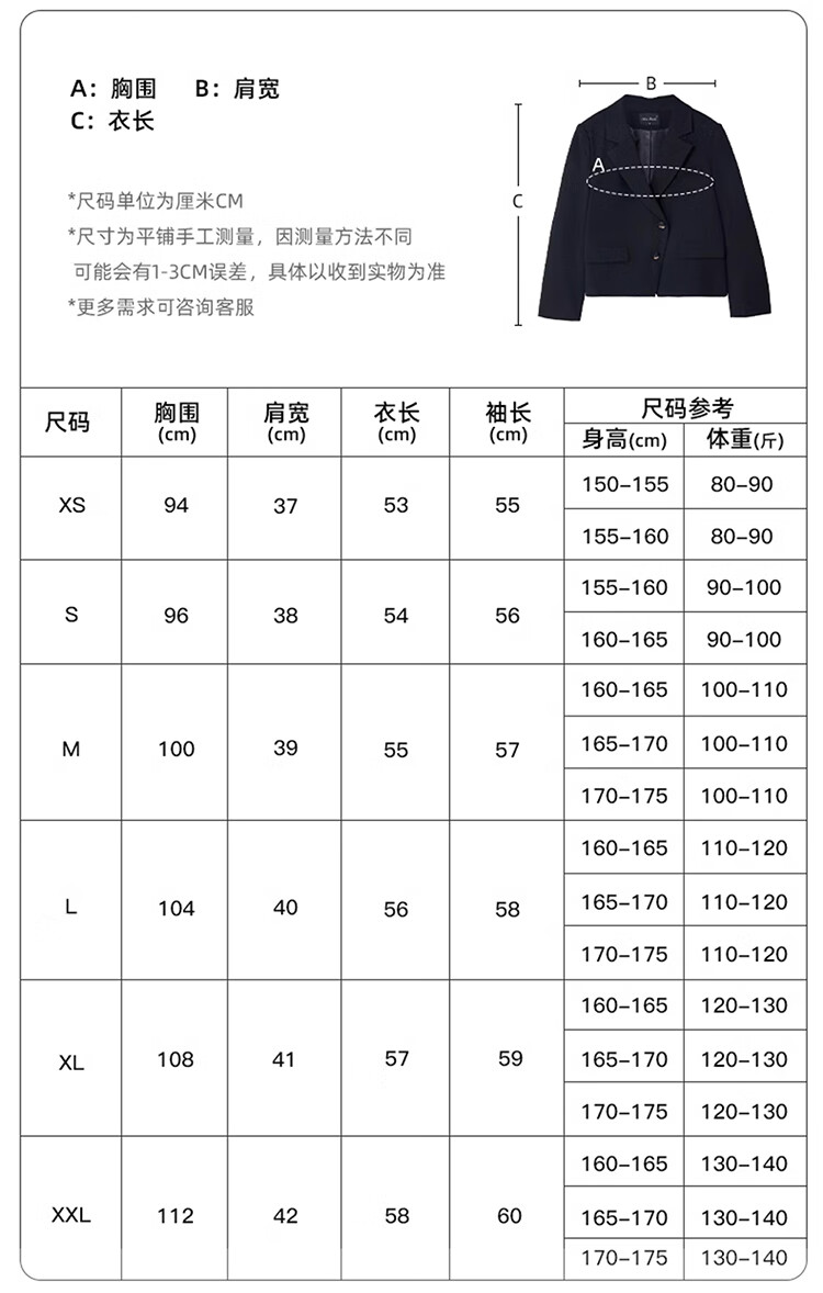 China (cm) 160-165/84-86 165-170 / 88-90 167-172 / 92-96 168-173 / 98-102 170-176 / 106-110