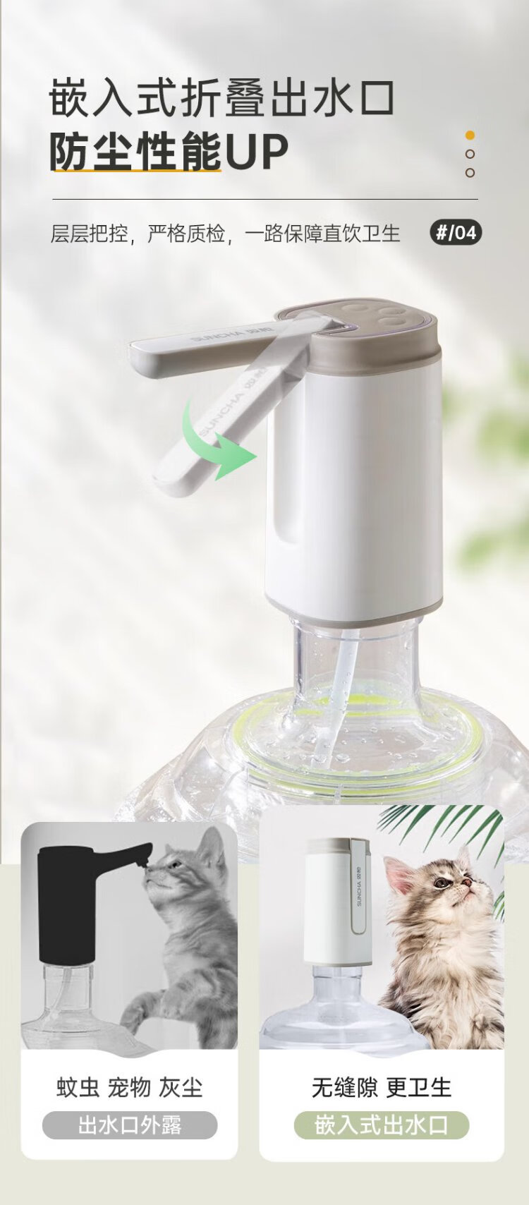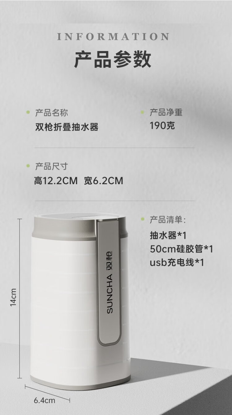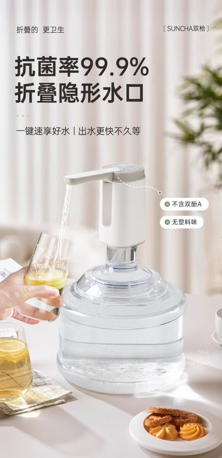Double Gun (Suncha) Bottled Water Pump 99.9% Antibacterial Electric Water Dispenser Silent Water Filler Water Pump Folding Dustproof Single Button