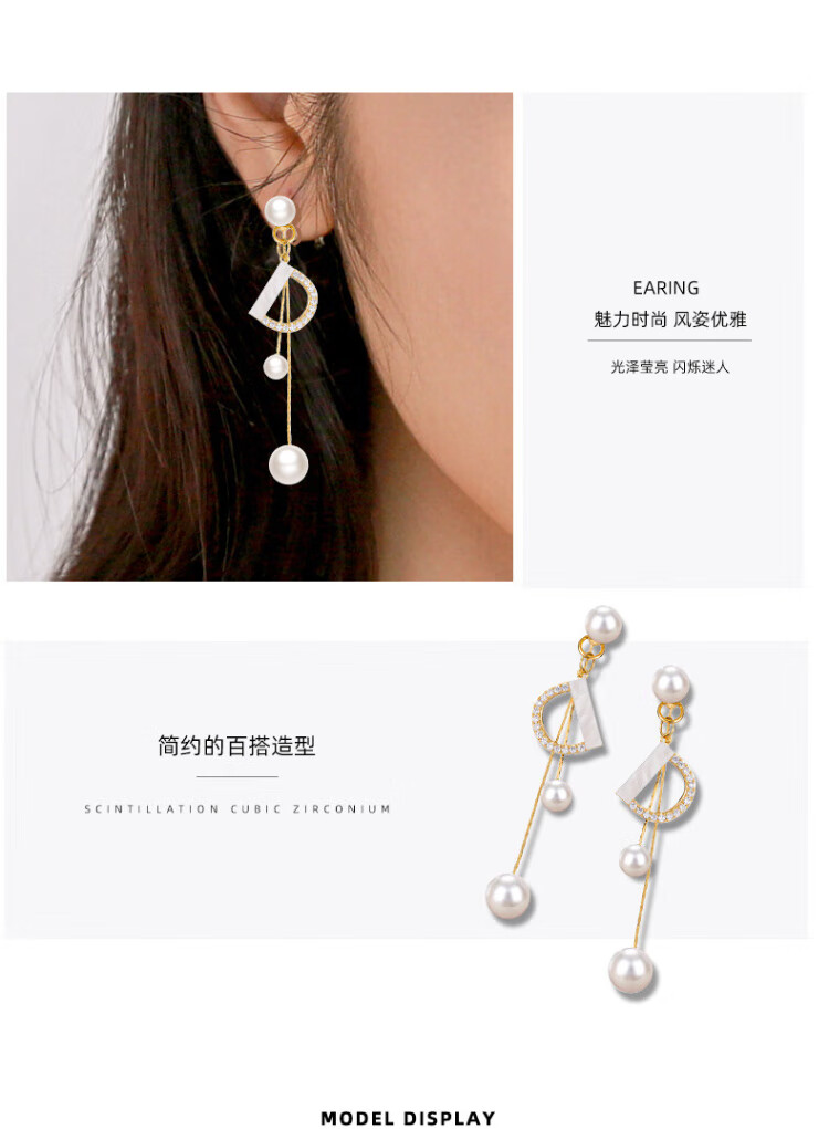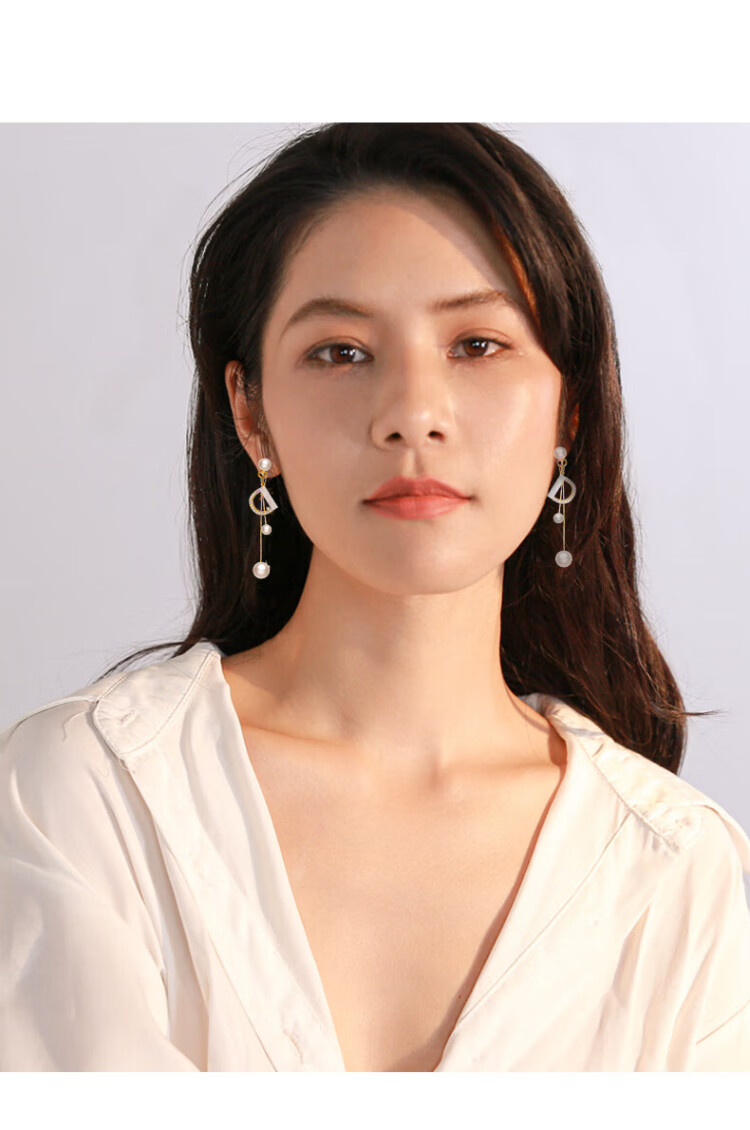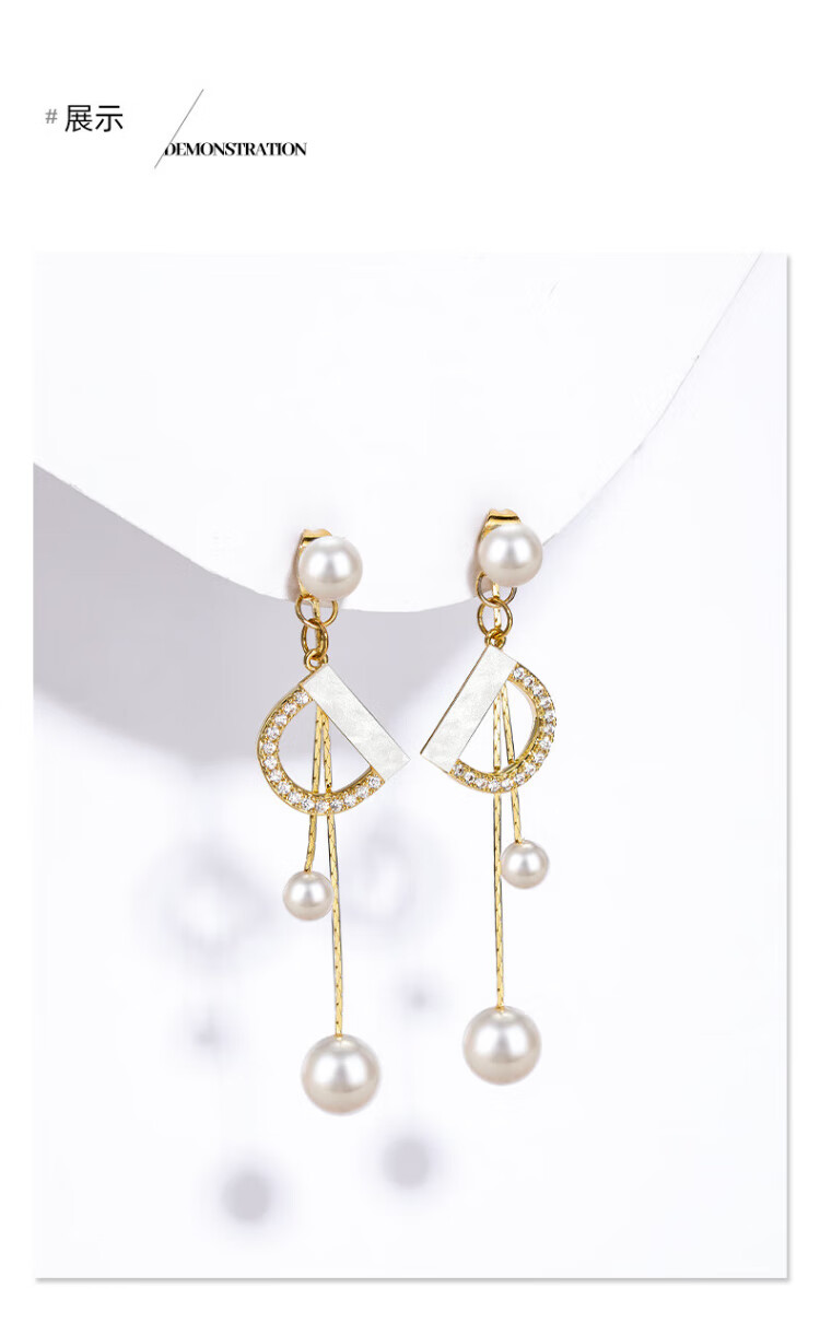 Qlady temperament tassel earrings for women 2024 new temperament high-end imitation pearl earrings light luxury silver needle letter earrings