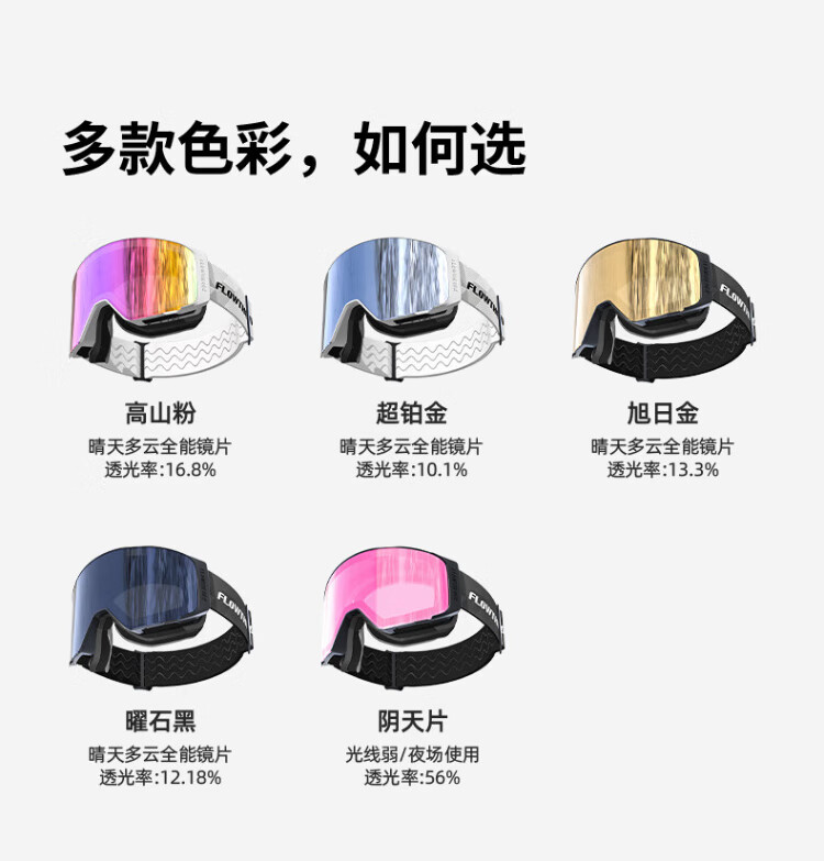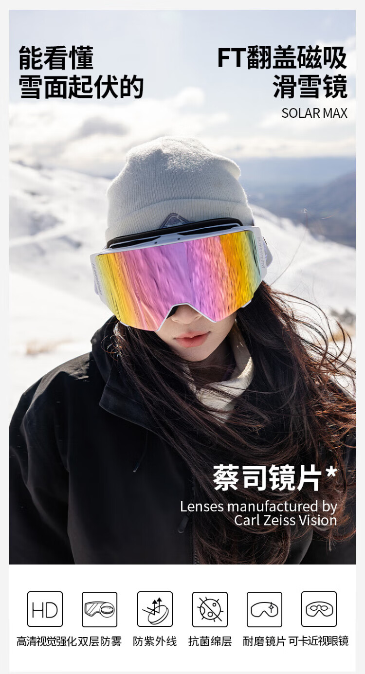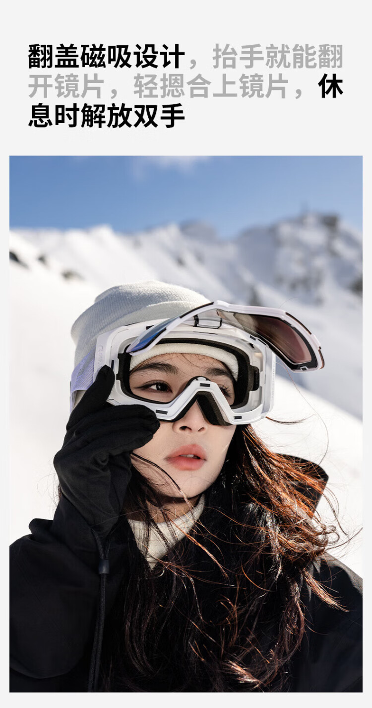 Flow Theory ski goggles magnetic flip anti-fog ski goggles for men and women with single and double plates, clip-on myopia goggles, super platinum