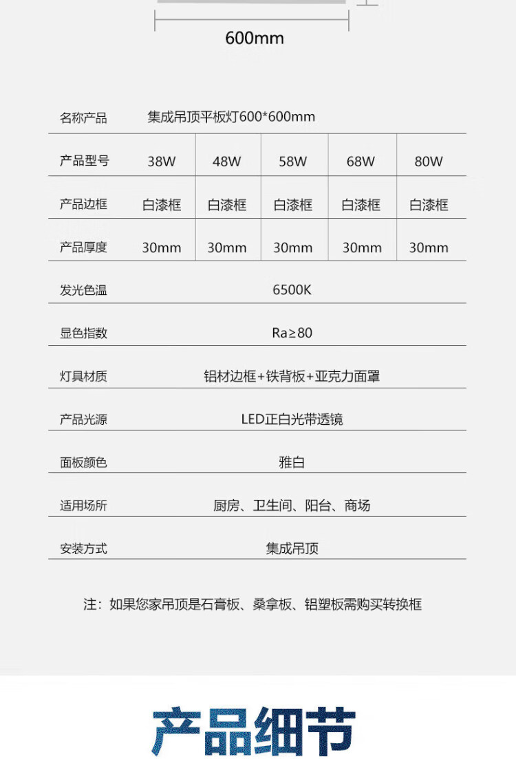 Deyan flat panel lamp 600x600 integrated ceiling lamp gusset lamp grille ceiling panel lamp engineering office lighting white light 68-W 600*600 4 pieces