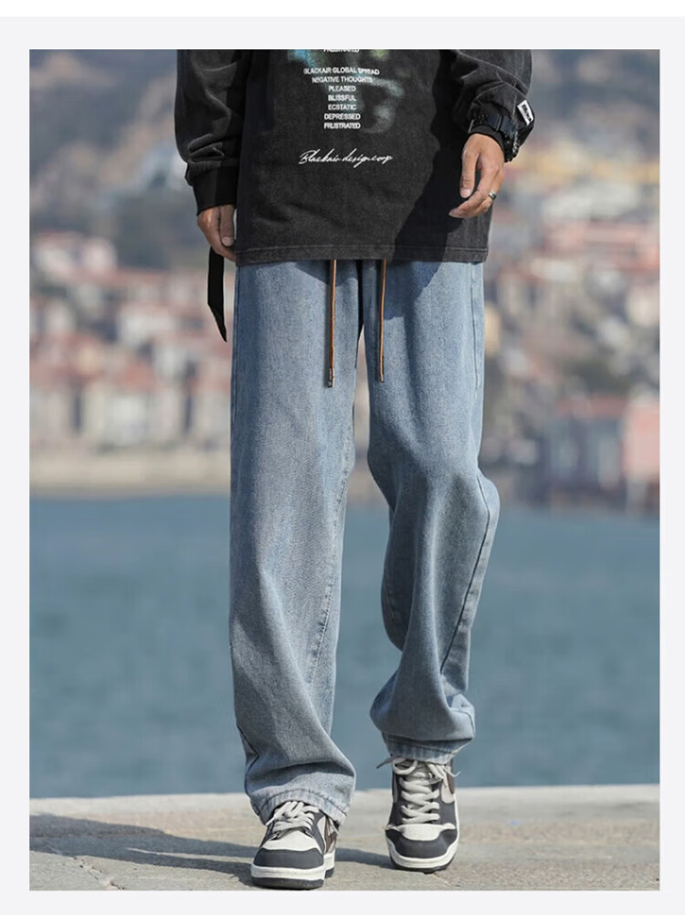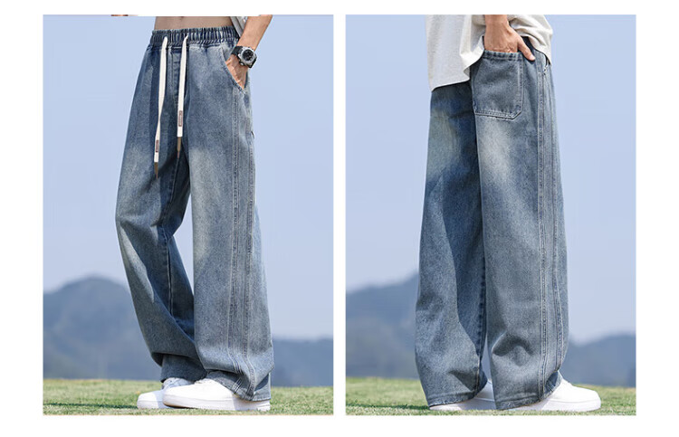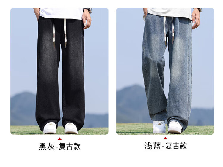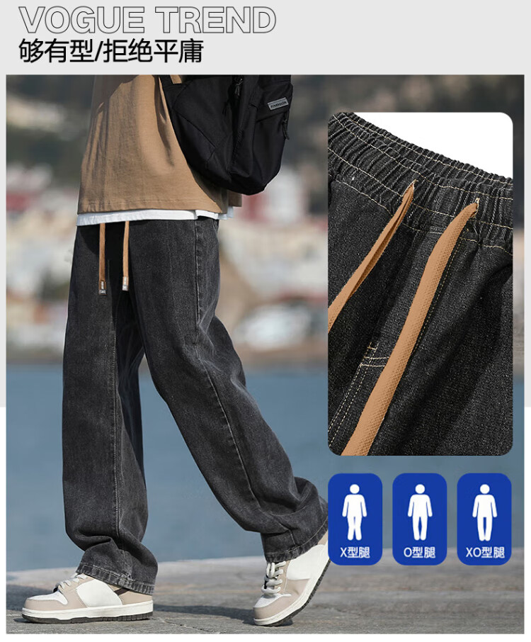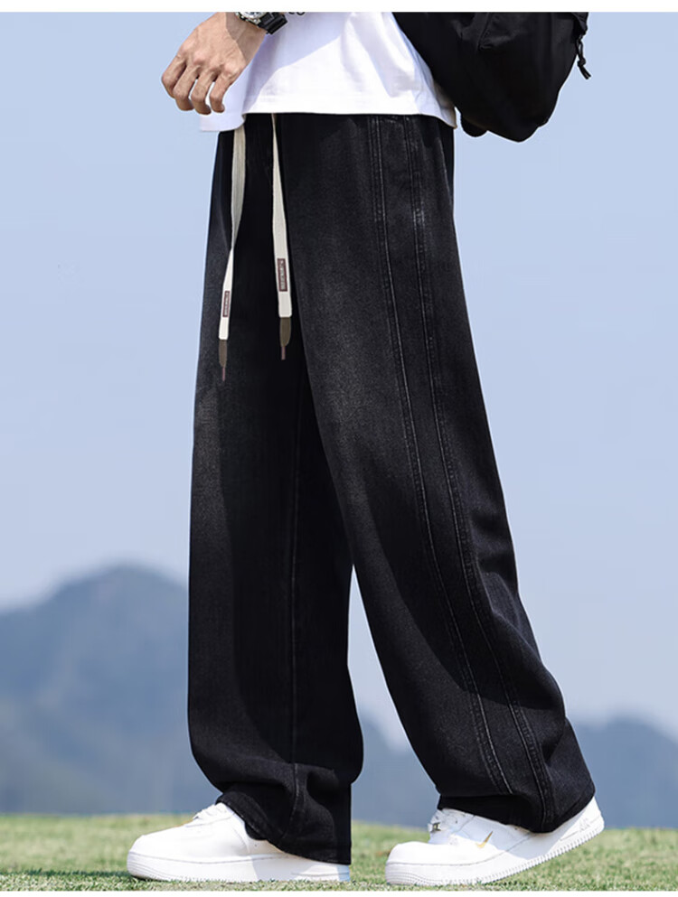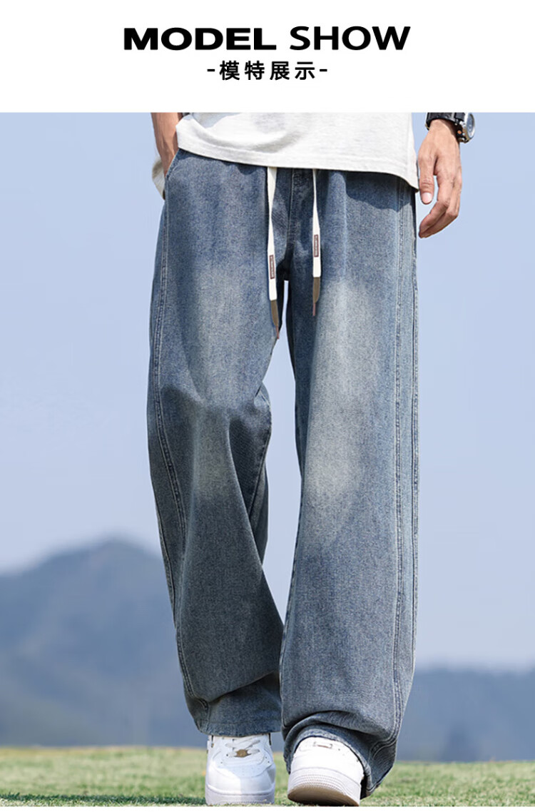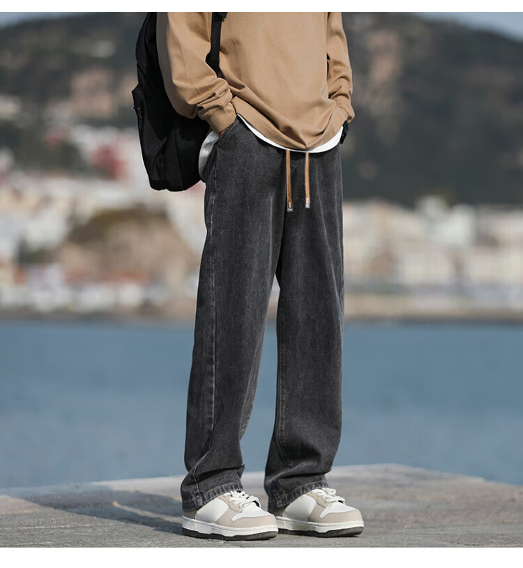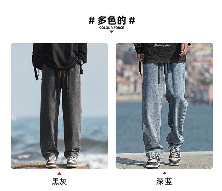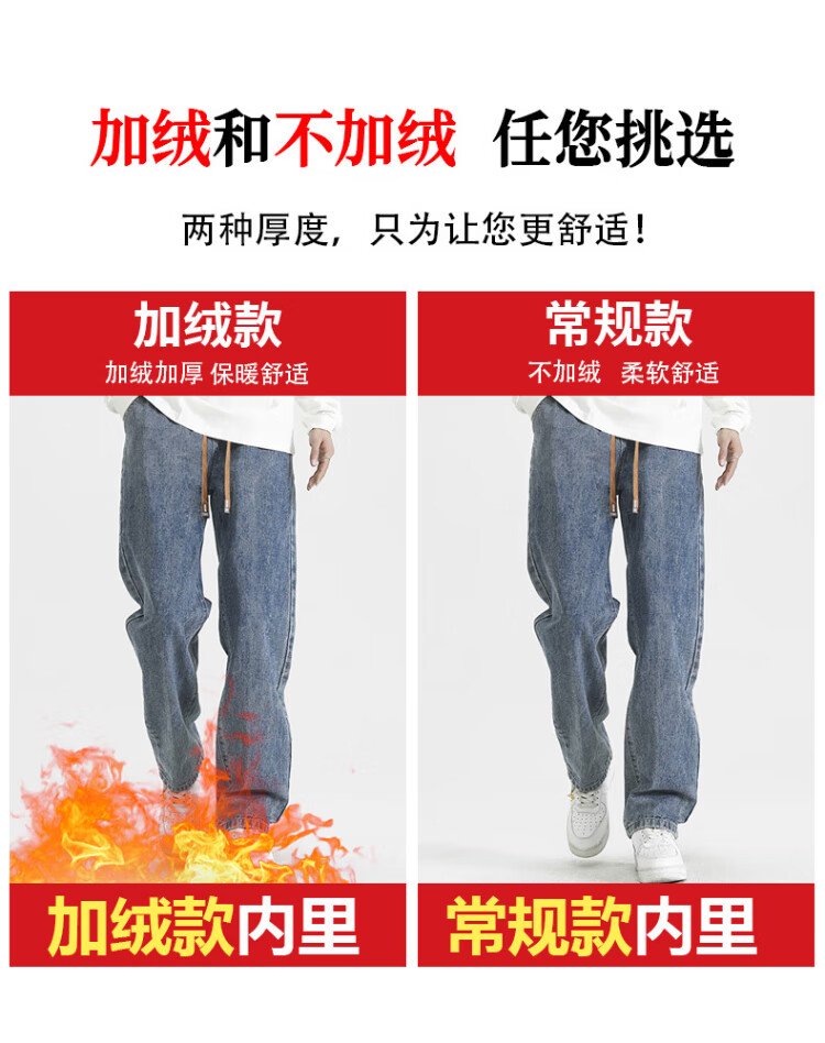 Pull-back jeans for men in winter plus velvet to keep warm American straight pants for men loose wide-leg casual trousers