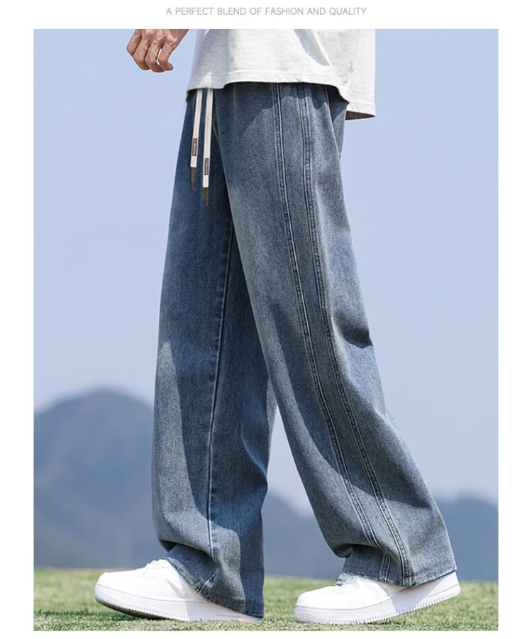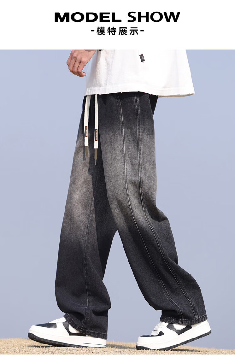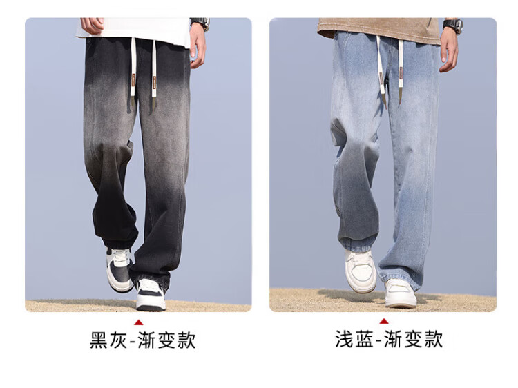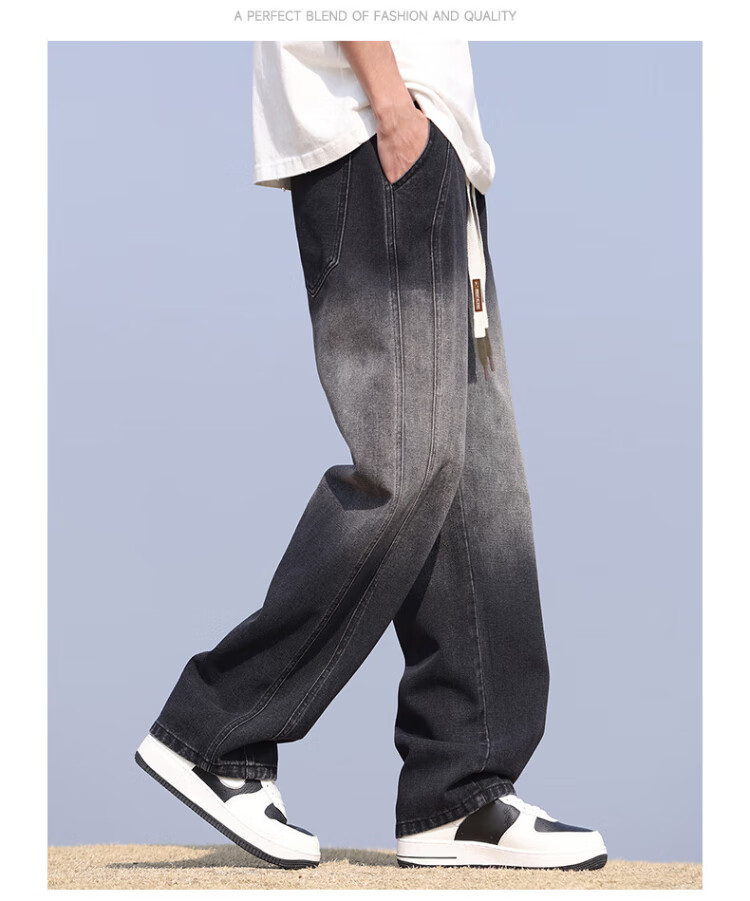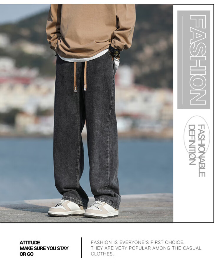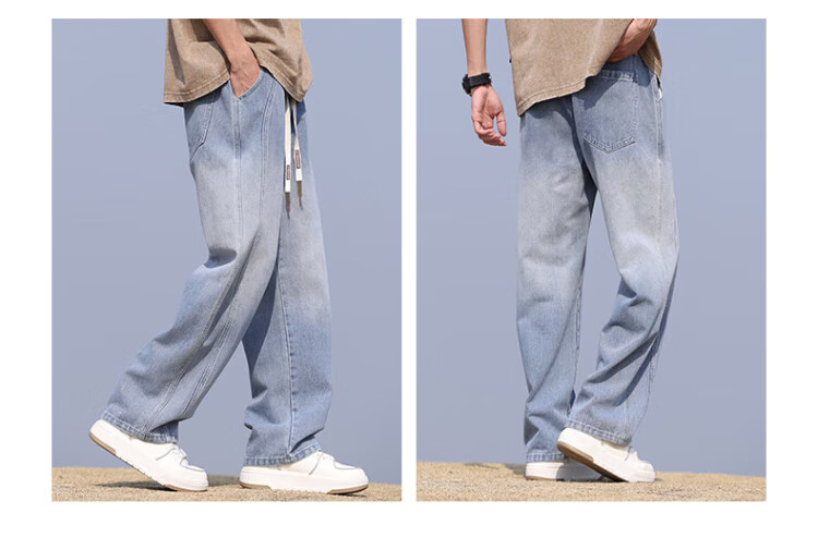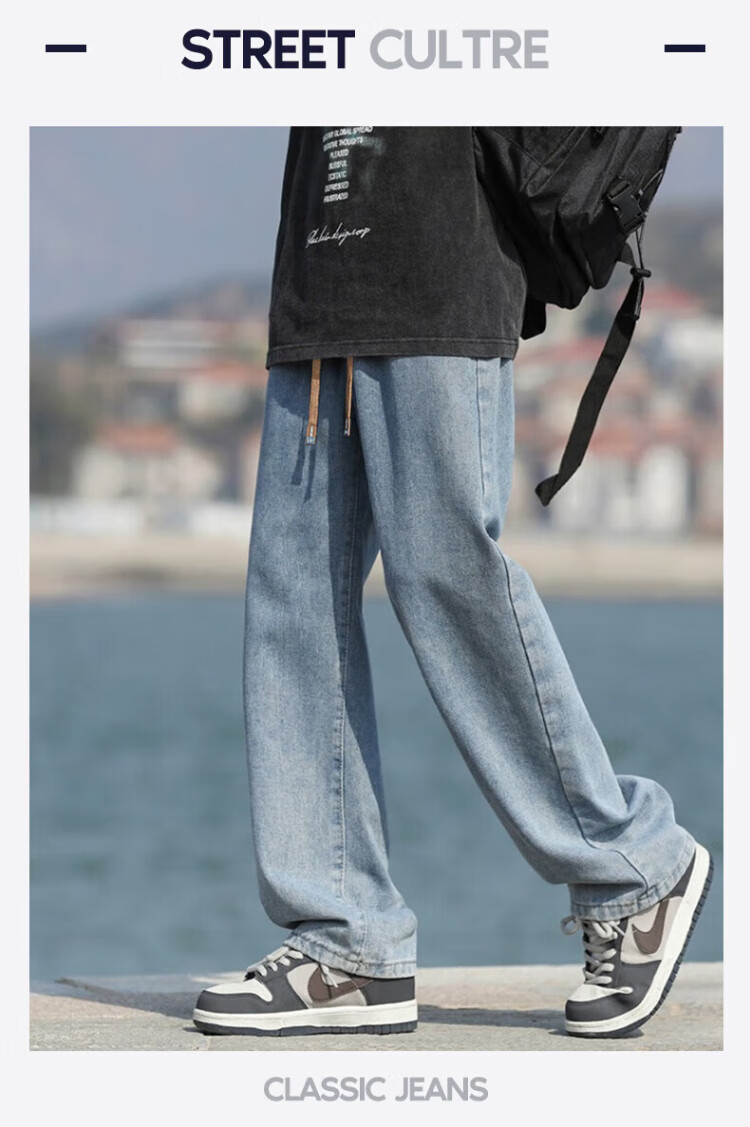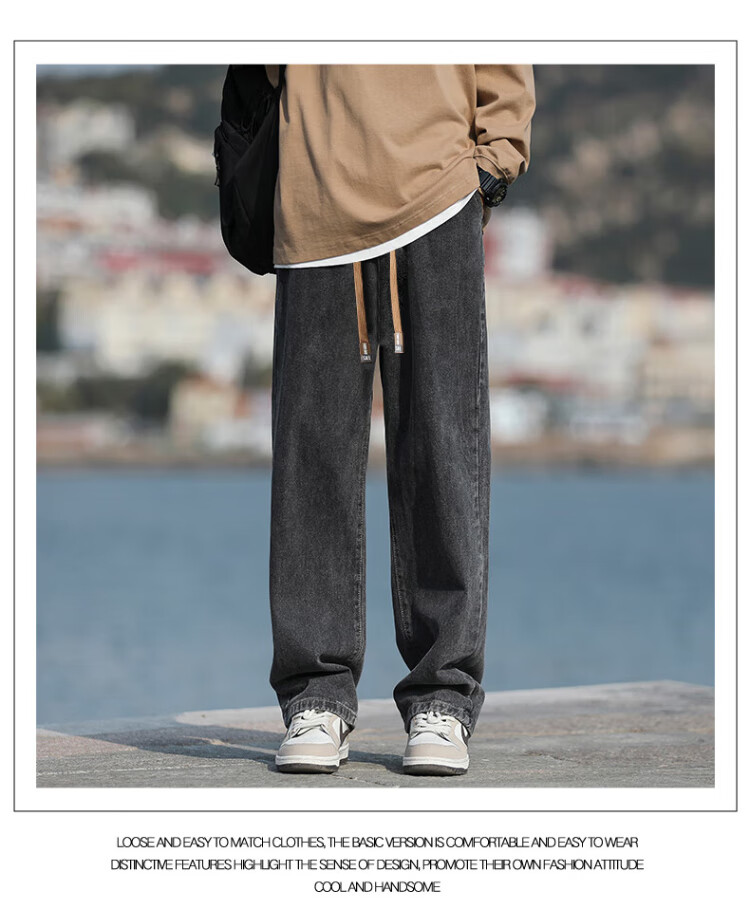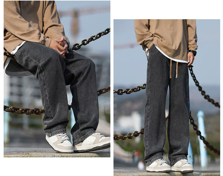 Pull-back jeans for men in winter plus velvet to keep warm American straight pants for men loose wide-leg casual trousers