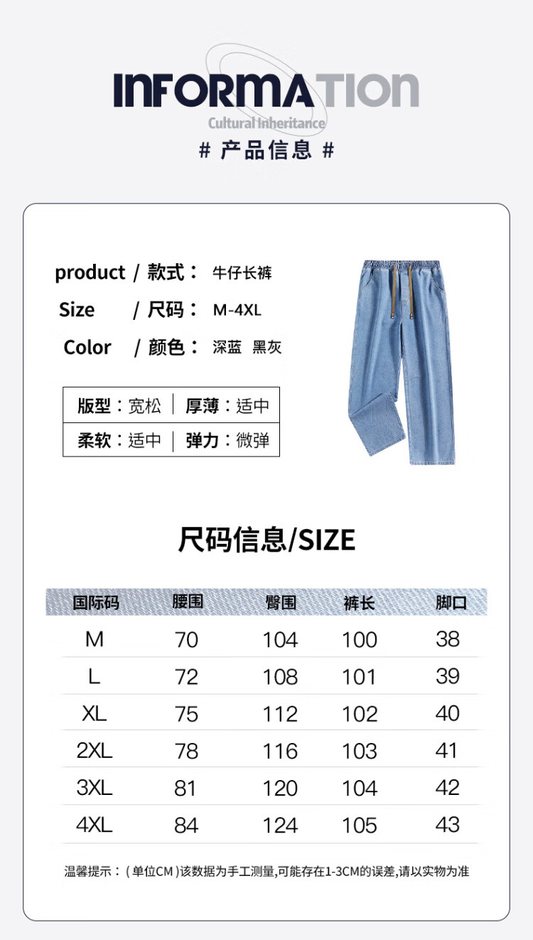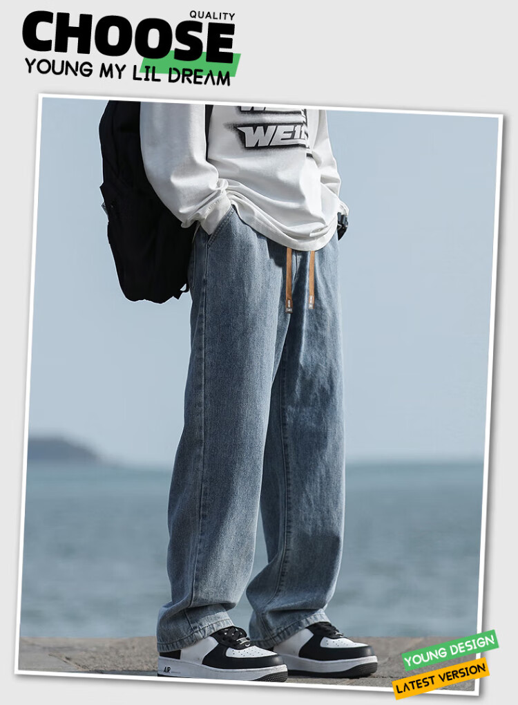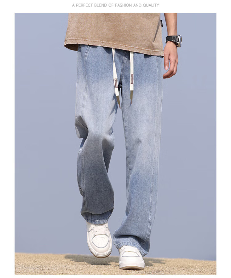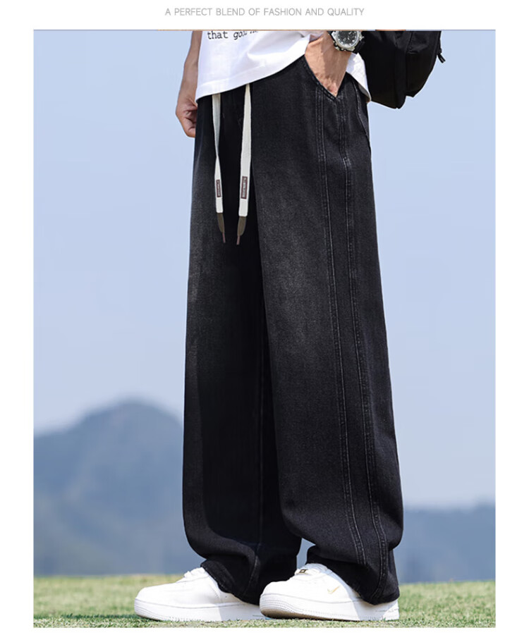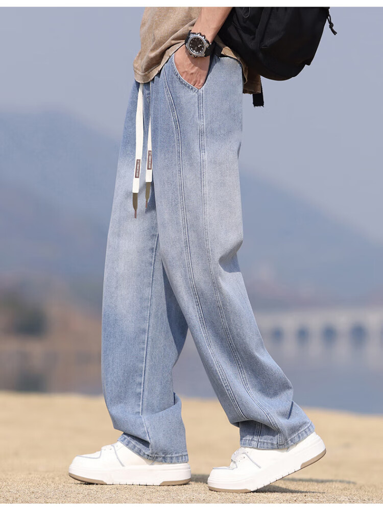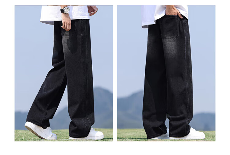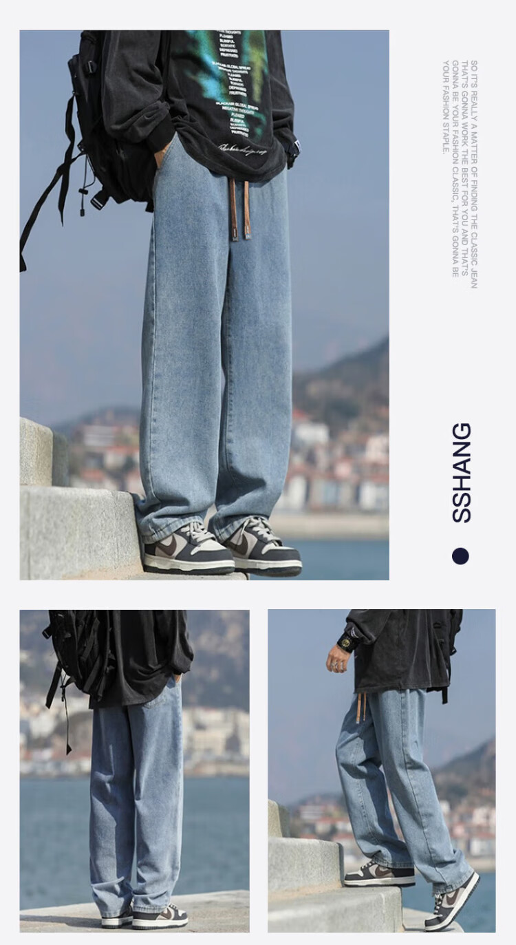 Pull-back jeans for men in winter plus velvet to keep warm American straight pants for men loose wide-leg casual trousers