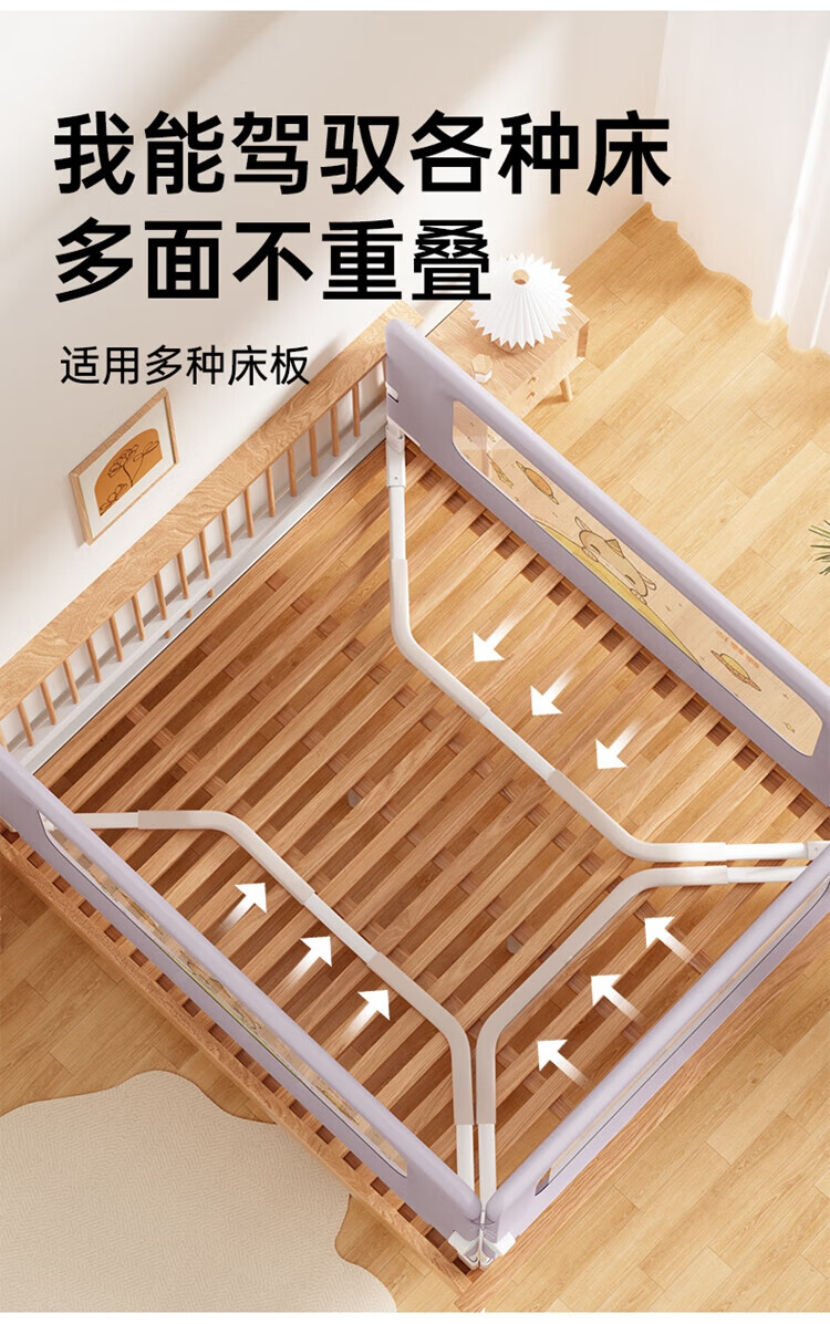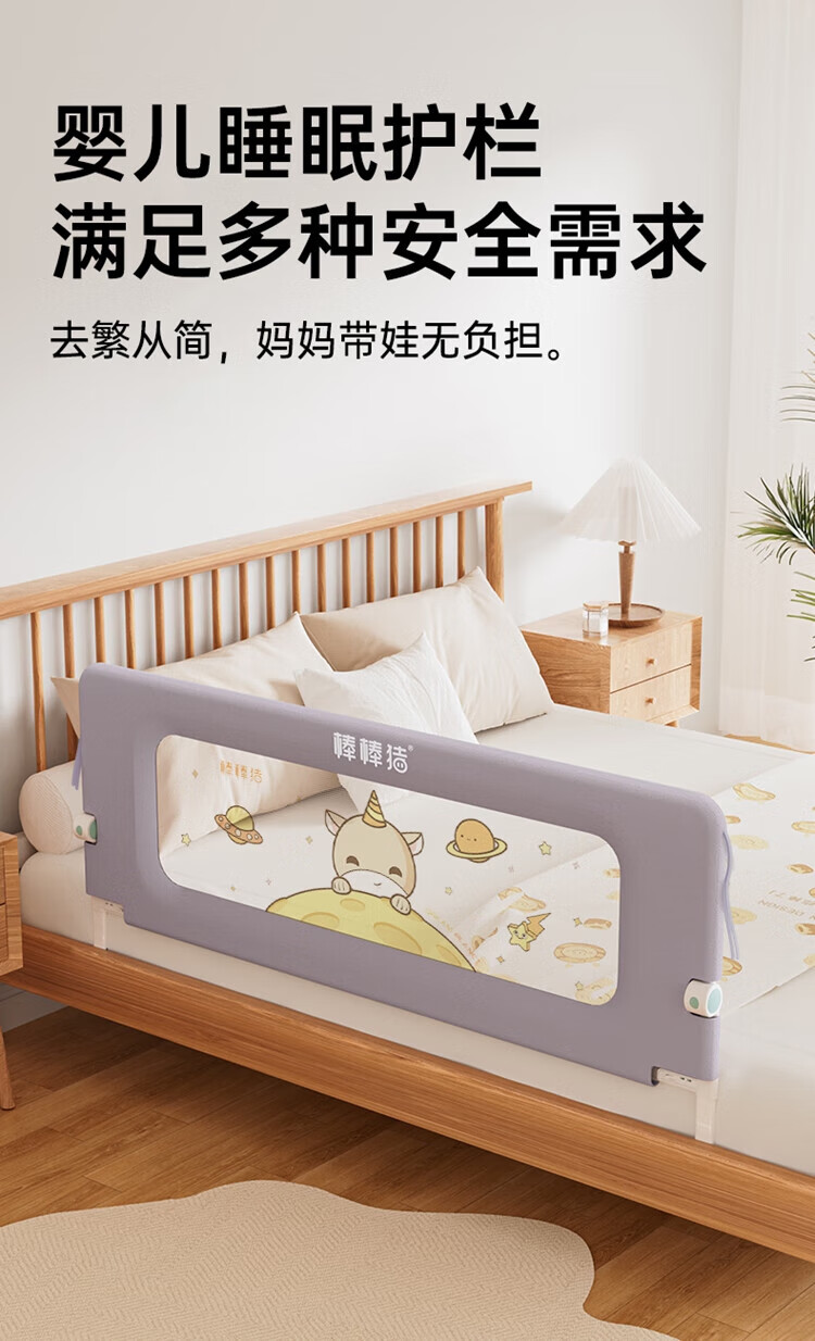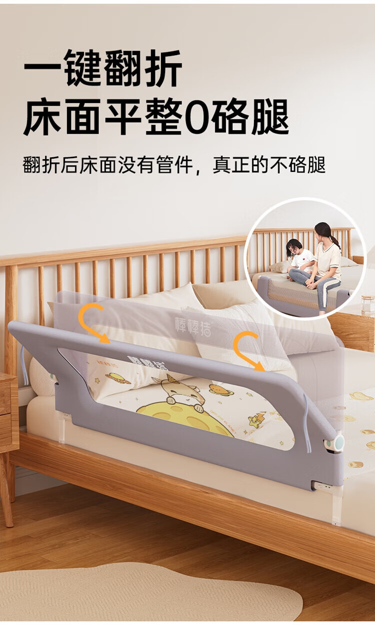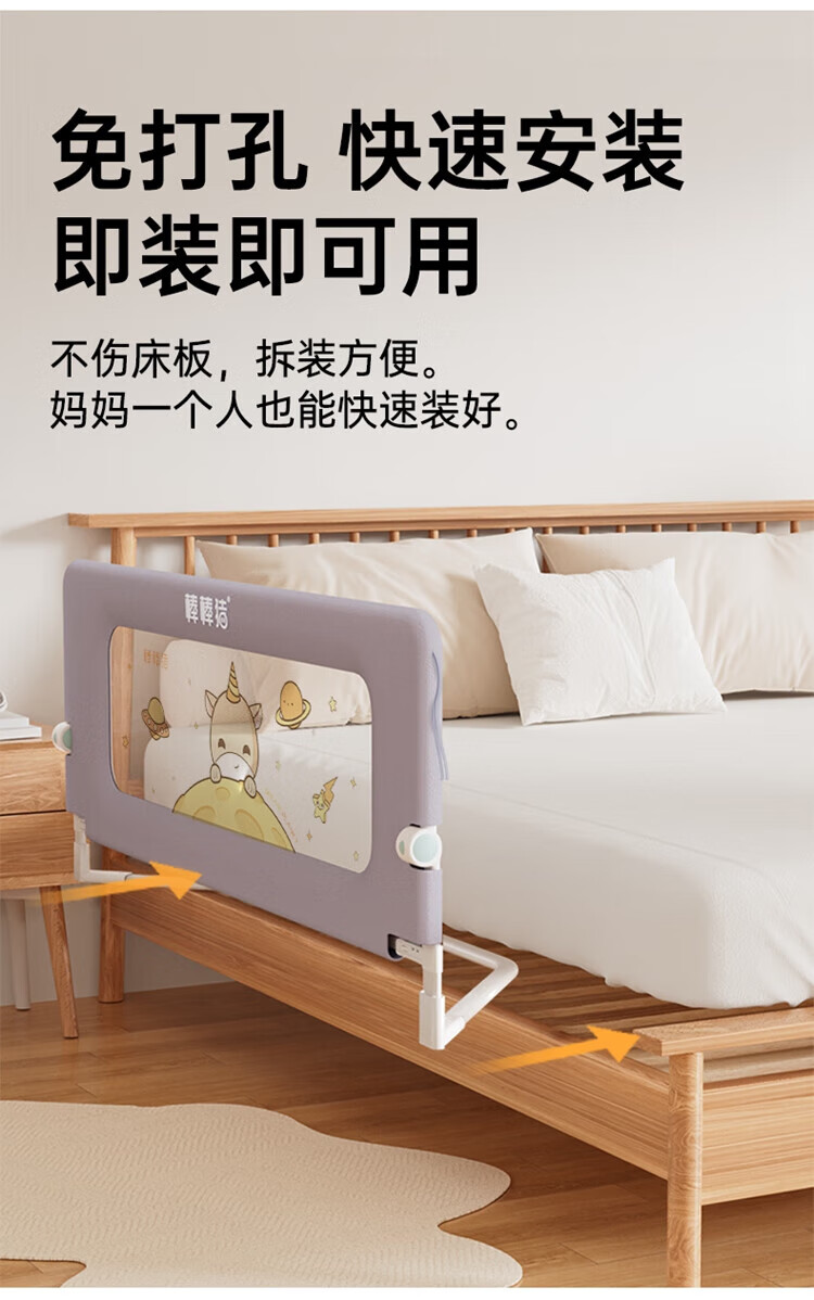 Bangbangzhu 2-sided bed fence for babies and children to prevent them from falling off the bed, nail-free folding and convenient guardrail