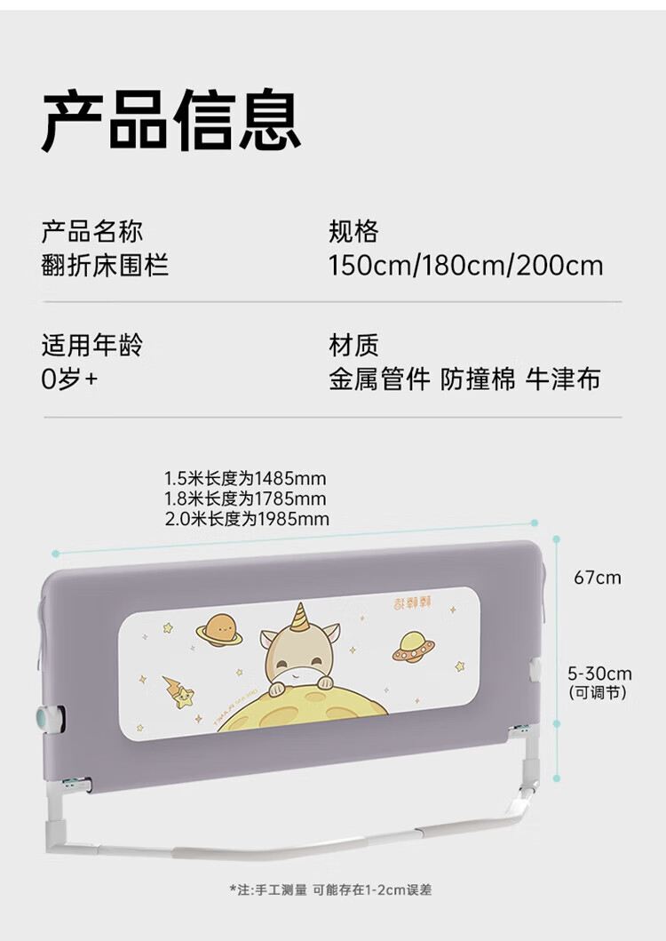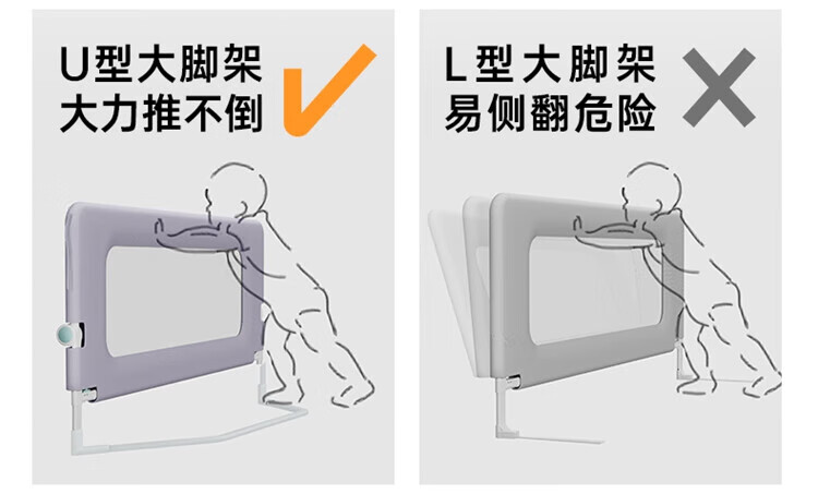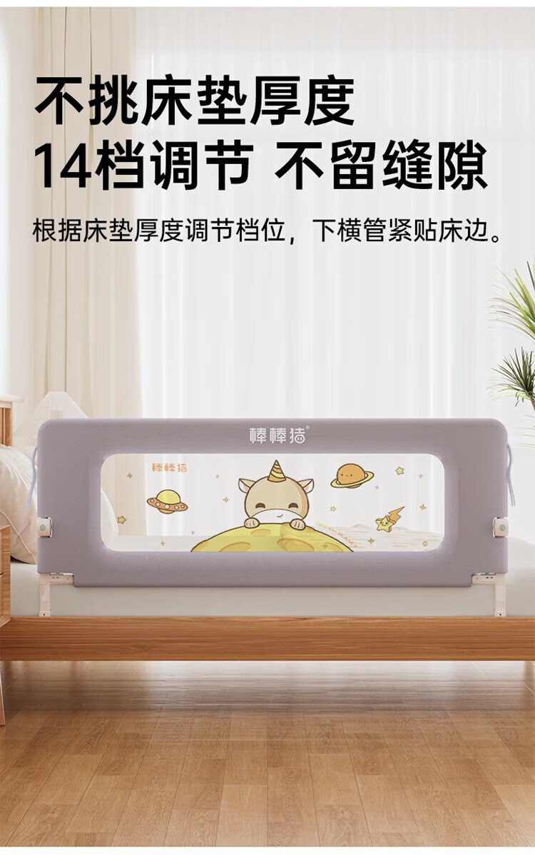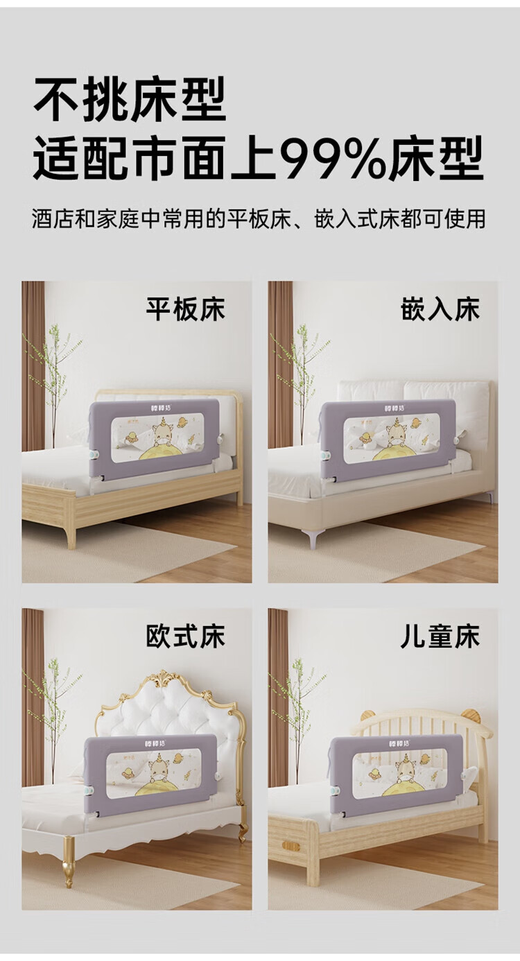Bangbangzhu 2-sided bed fence for babies and children to prevent them from falling off the bed, nail-free folding and convenient guardrail