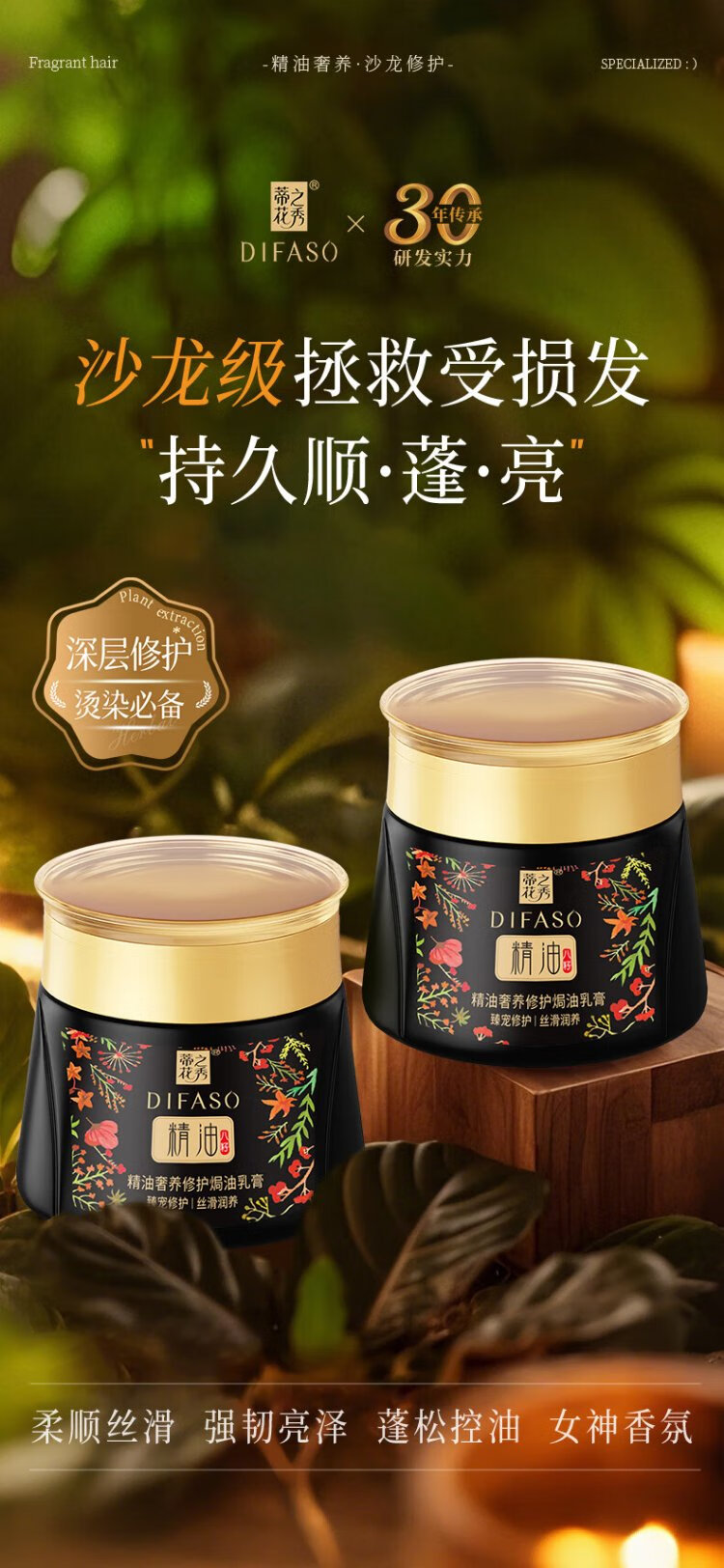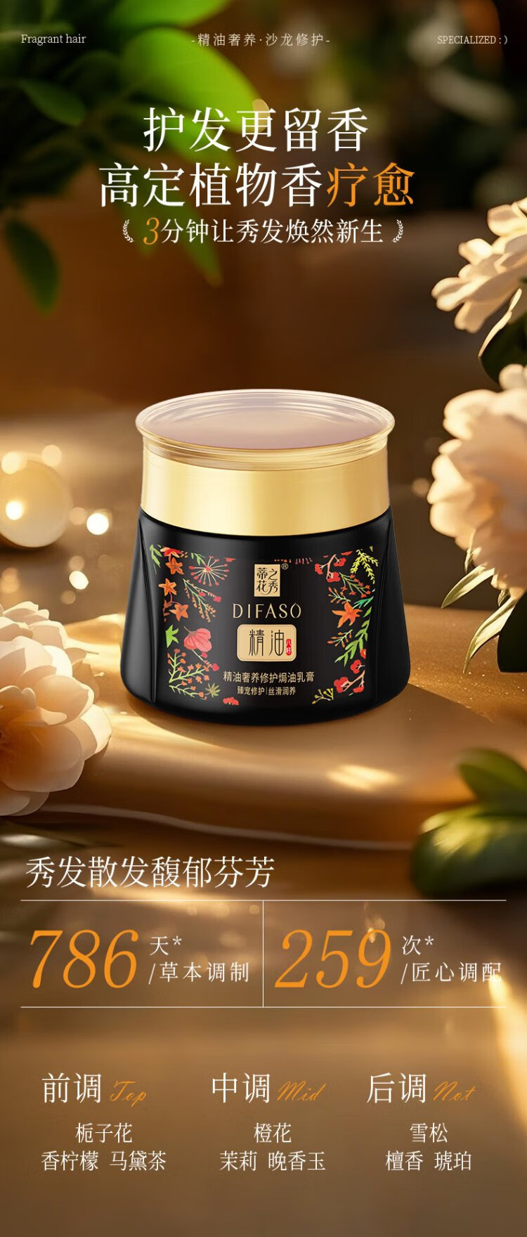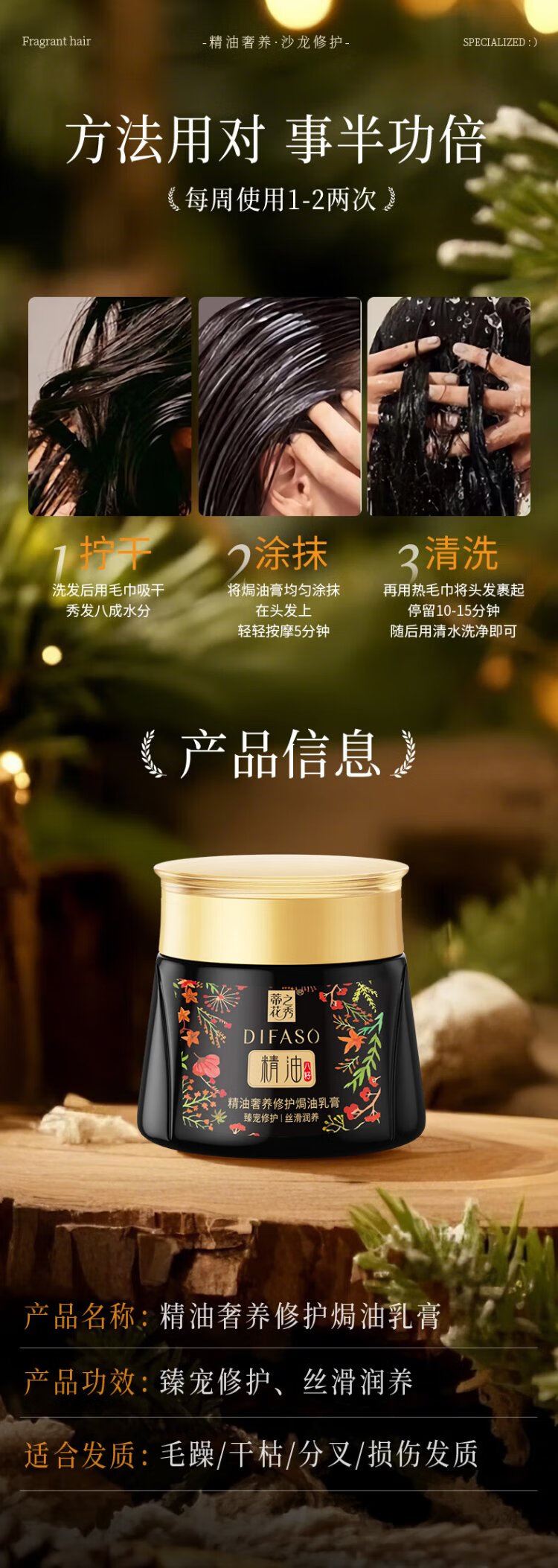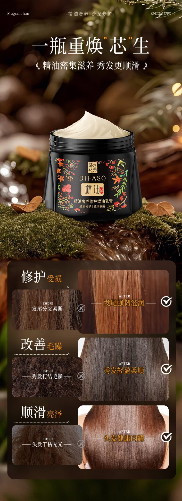 Dihuazhixiu DIFASO Hair Mask Essential Oil Luxurious Repairing Baking Cream 300ml Improves Frizz, Dryness, Softening and Nutritional Inverted Mask