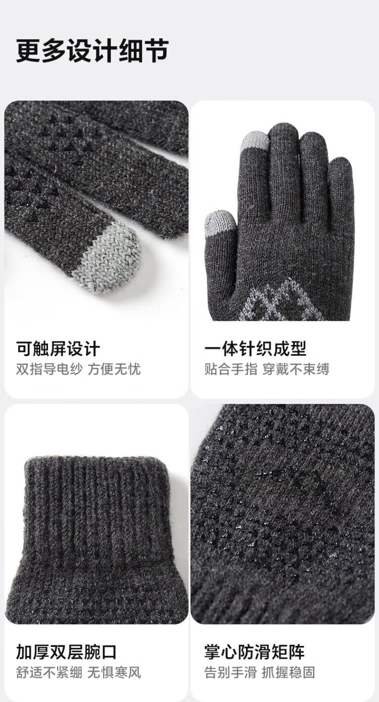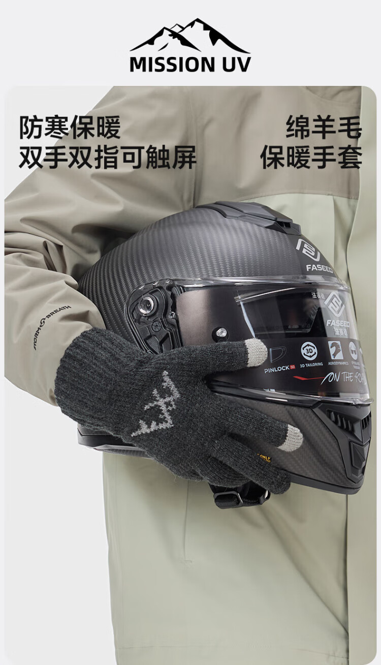 MISSION UV wool warm gloves men's autumn and winter knitted thickened outdoor driving and riding electric bicycle cold-proof touch screen gloves