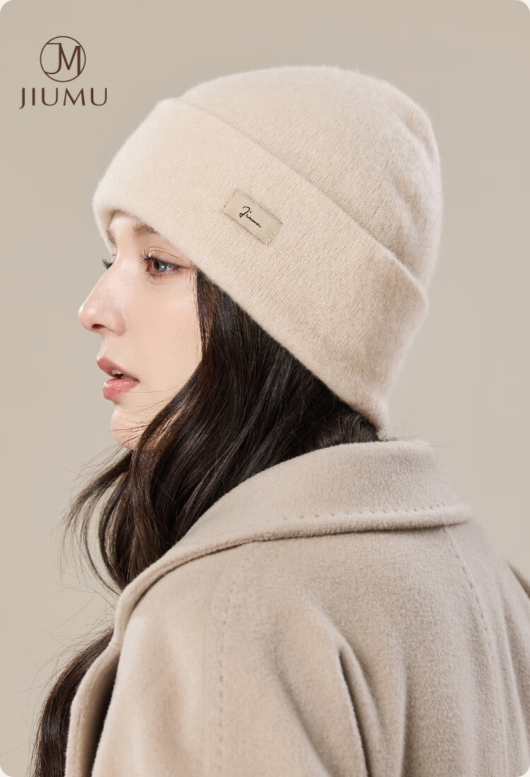 JIUMU pure cashmere warm woolen hat autumn and winter knitted hat cold hat winter hat winter outdoor ear protection cold hat women winter