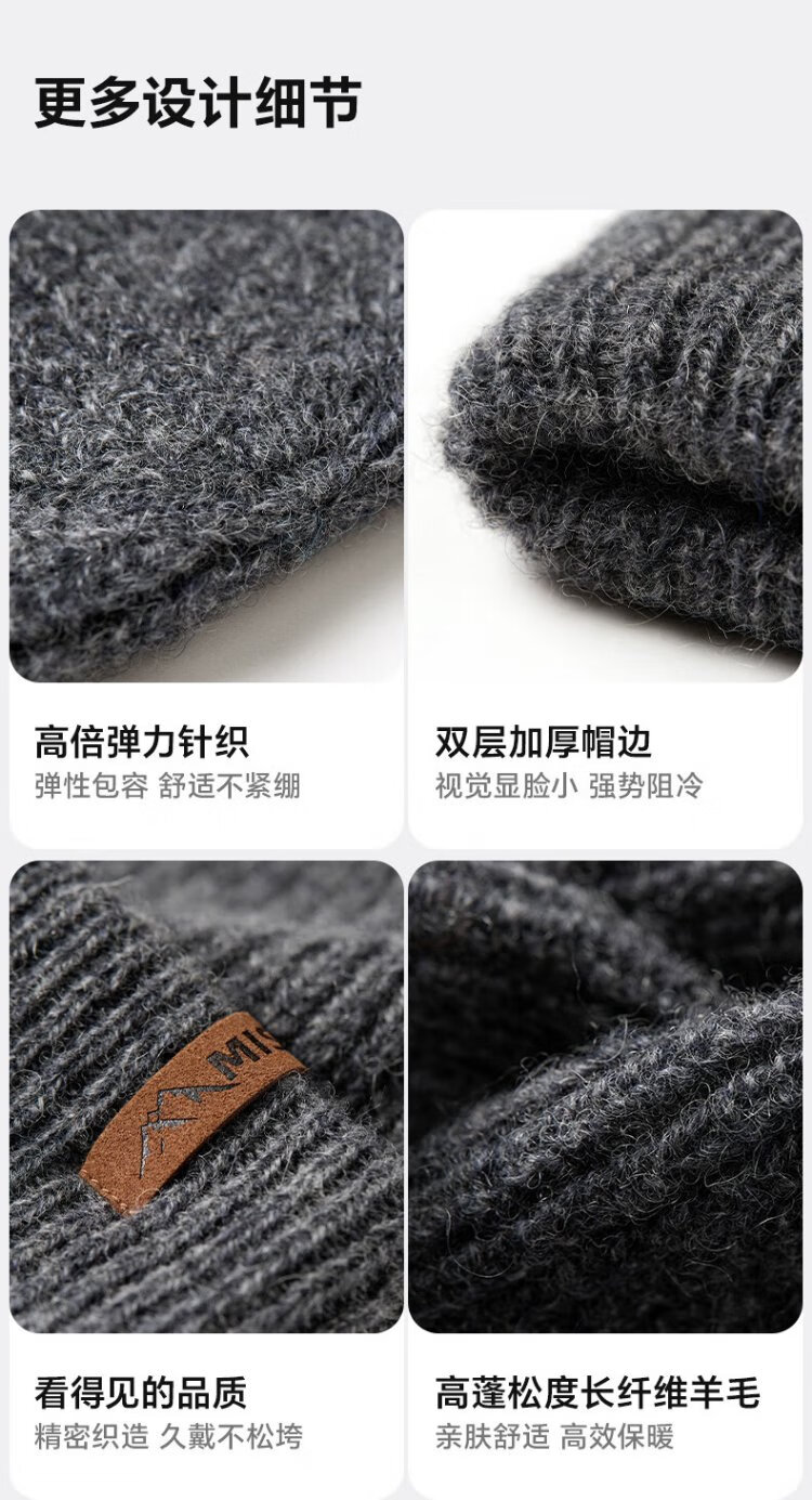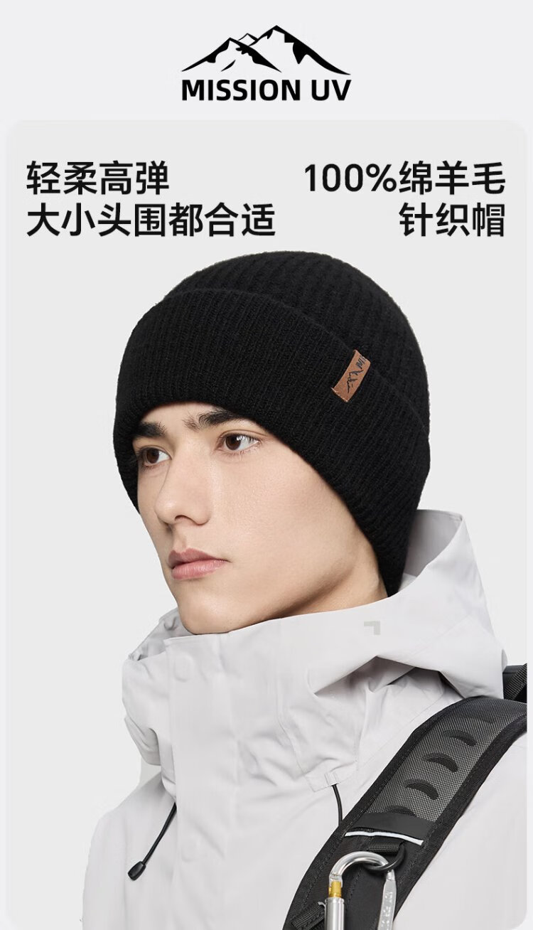 MISSION UV pure wool warm woolen hat autumn and winter thickened knitted hat cold hat winter hat outdoor ear protection cold hat men winter