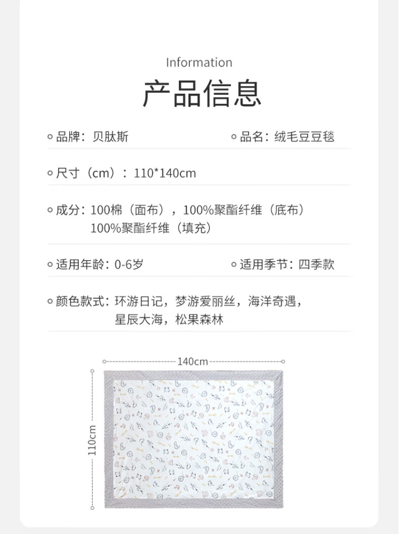 Betis baby quilt autumn and winter beanie blanket constant temperature soothing children kindergarten nap blanket thick quilted 110*140cm