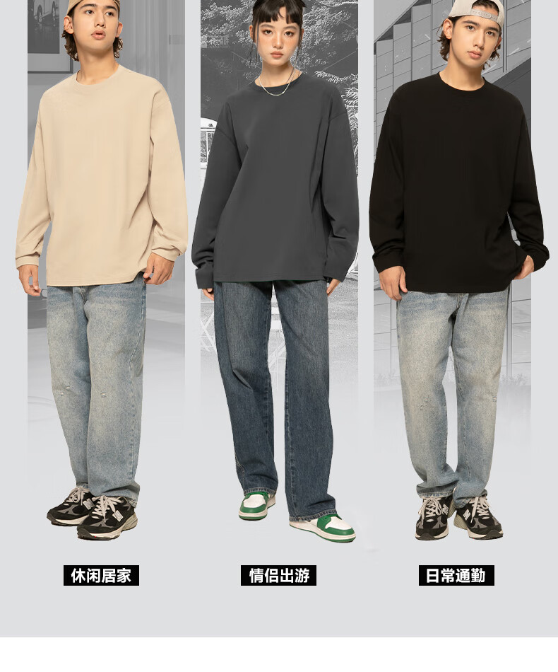 Miniso pure cotton long-sleeved T-shirt men's spring and autumn solid color round neck inner wear loose casual bottoming shirt white XL