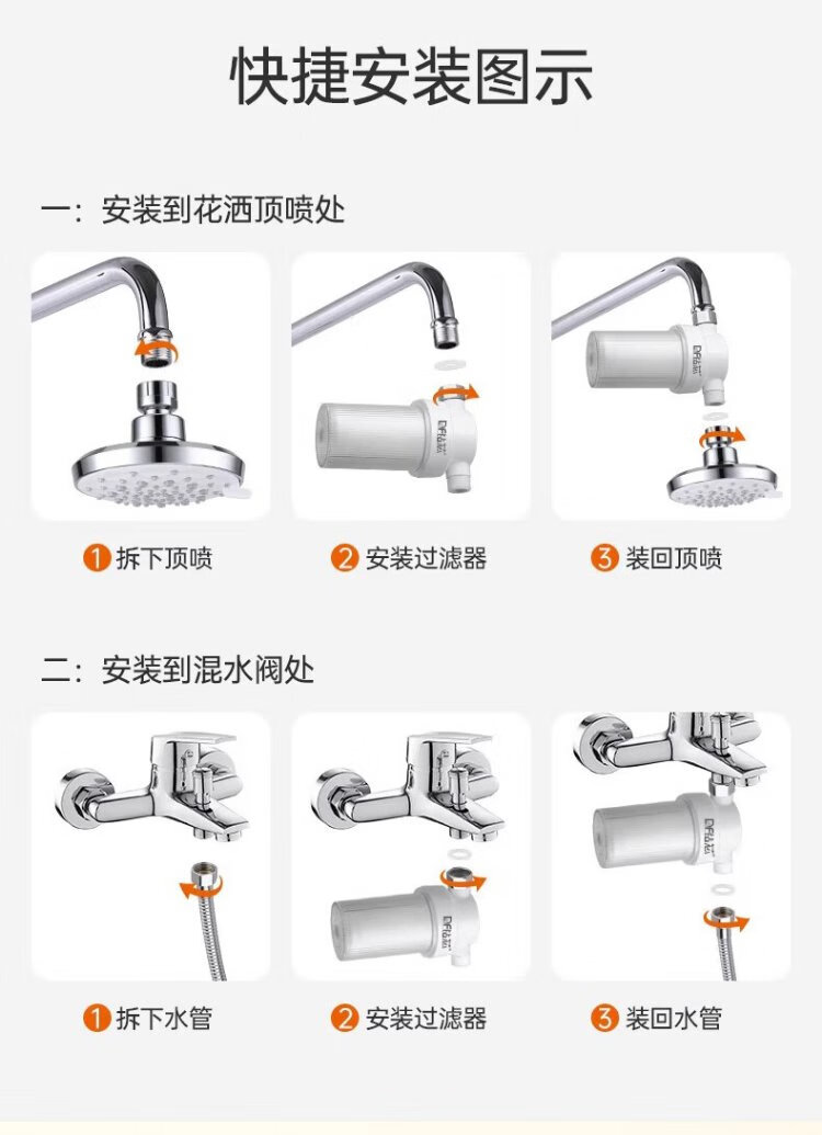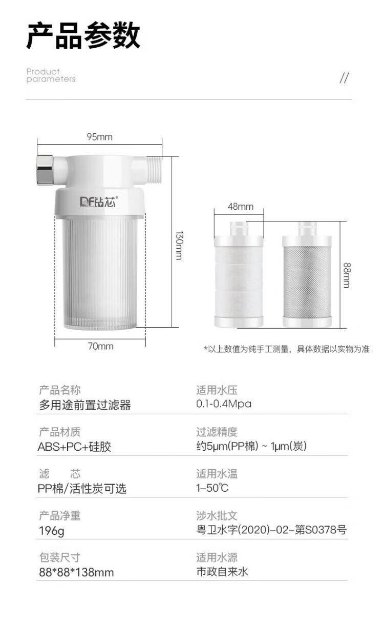 Drill core electric water heater pre-filter shower shower water purifier household purifier washing machine faucet beauty shower shower water filter