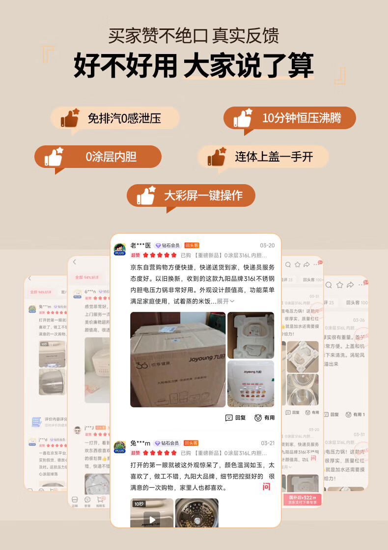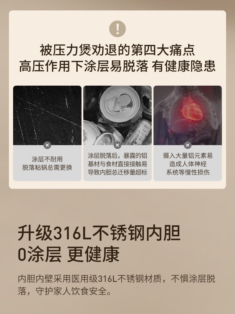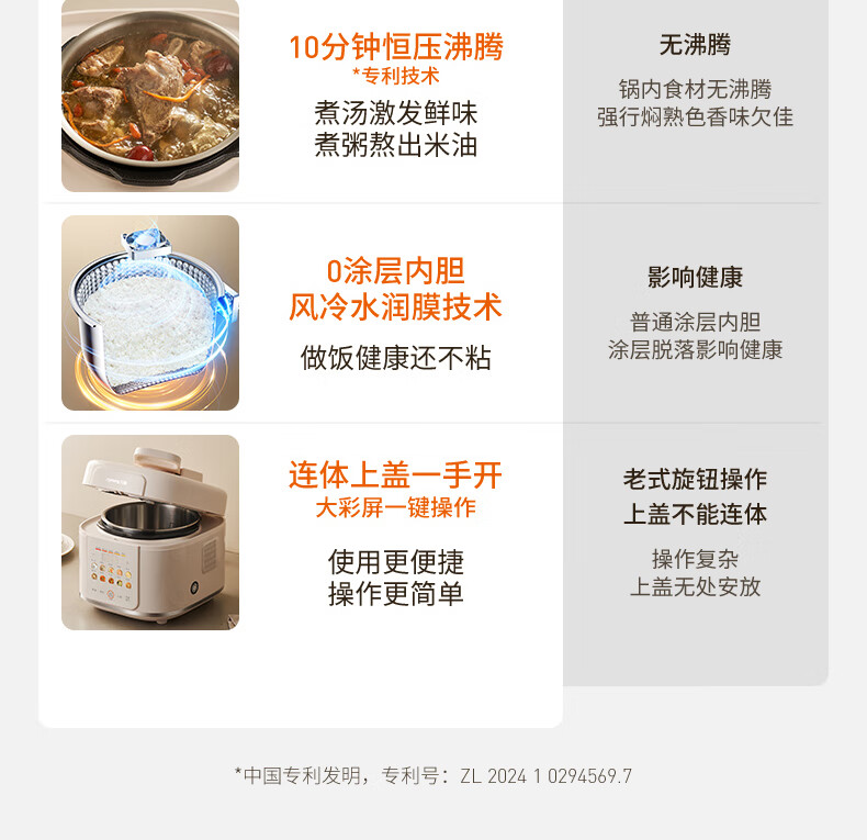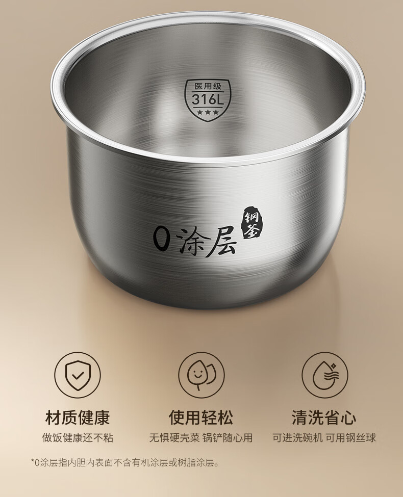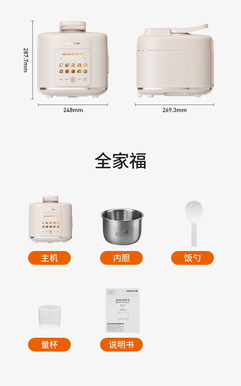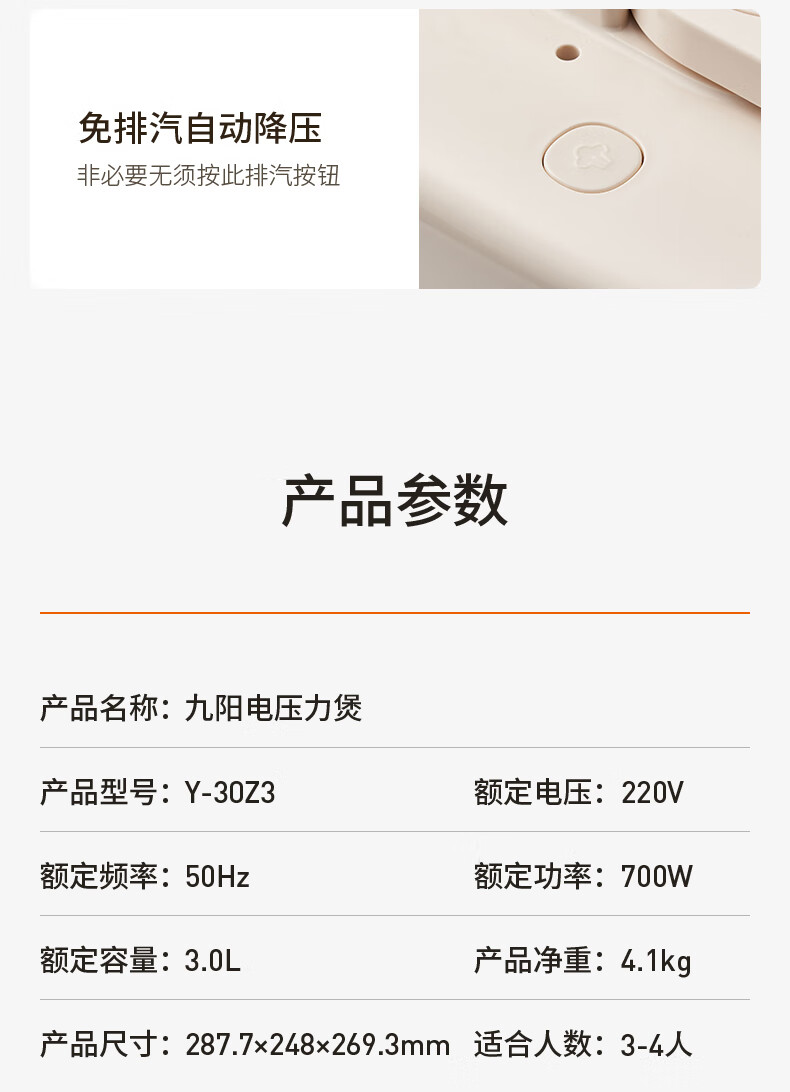 Joyoung 3L exhaust-free series electric pressure cooker small mini 1-3 people household smart reservation 0 coating 316 stainless steel inner pot rice cooker pressure cooker 30Z3