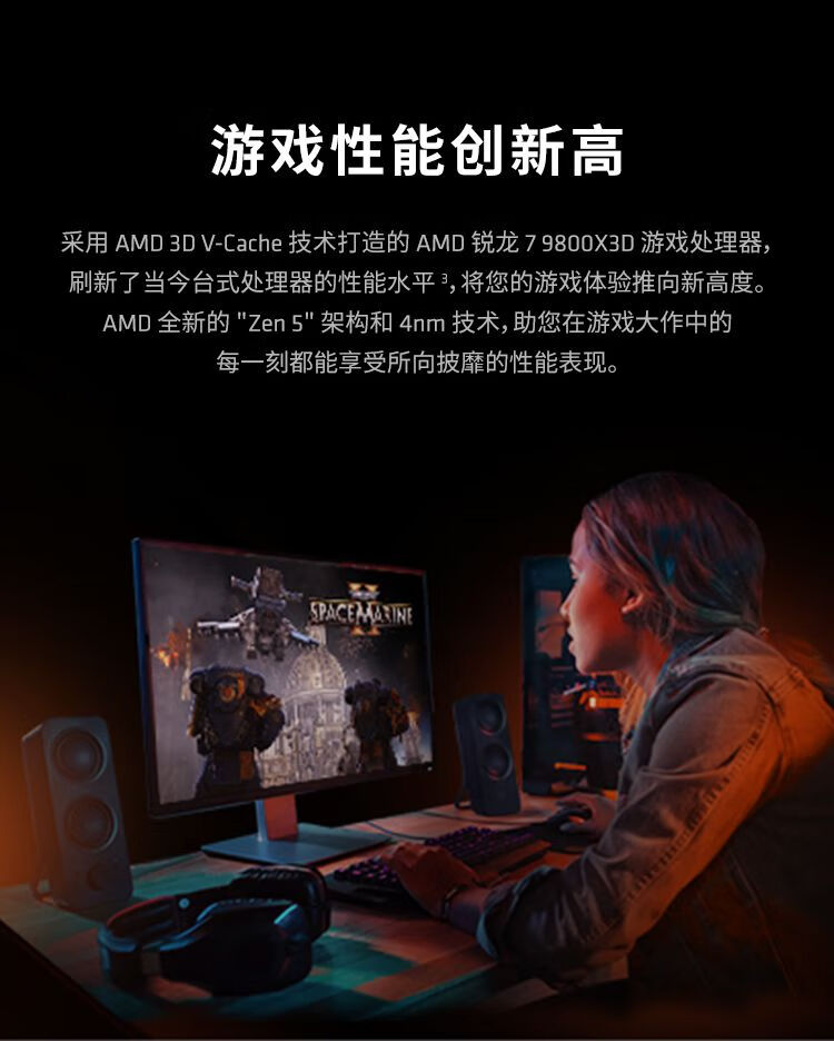 AMD Ryzen 7 9800X3D game processor 8 cores 16 threads 104MB game cache acceleration frequency up to 5.2GHz boxed CPU to play CSGO thousands of frames e-sports