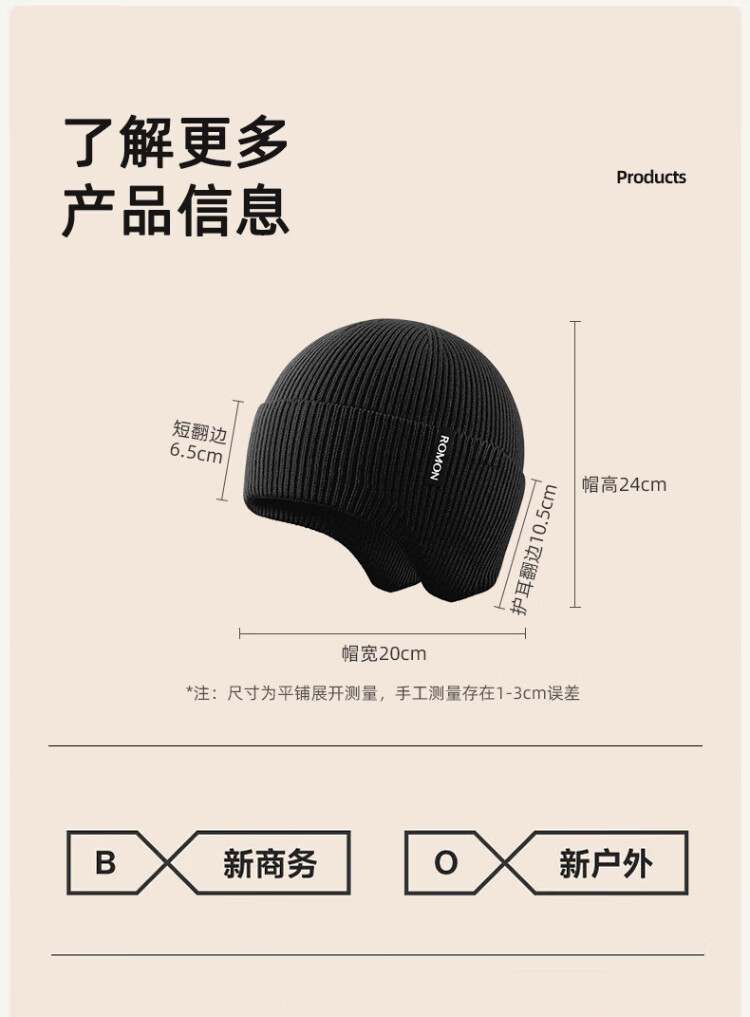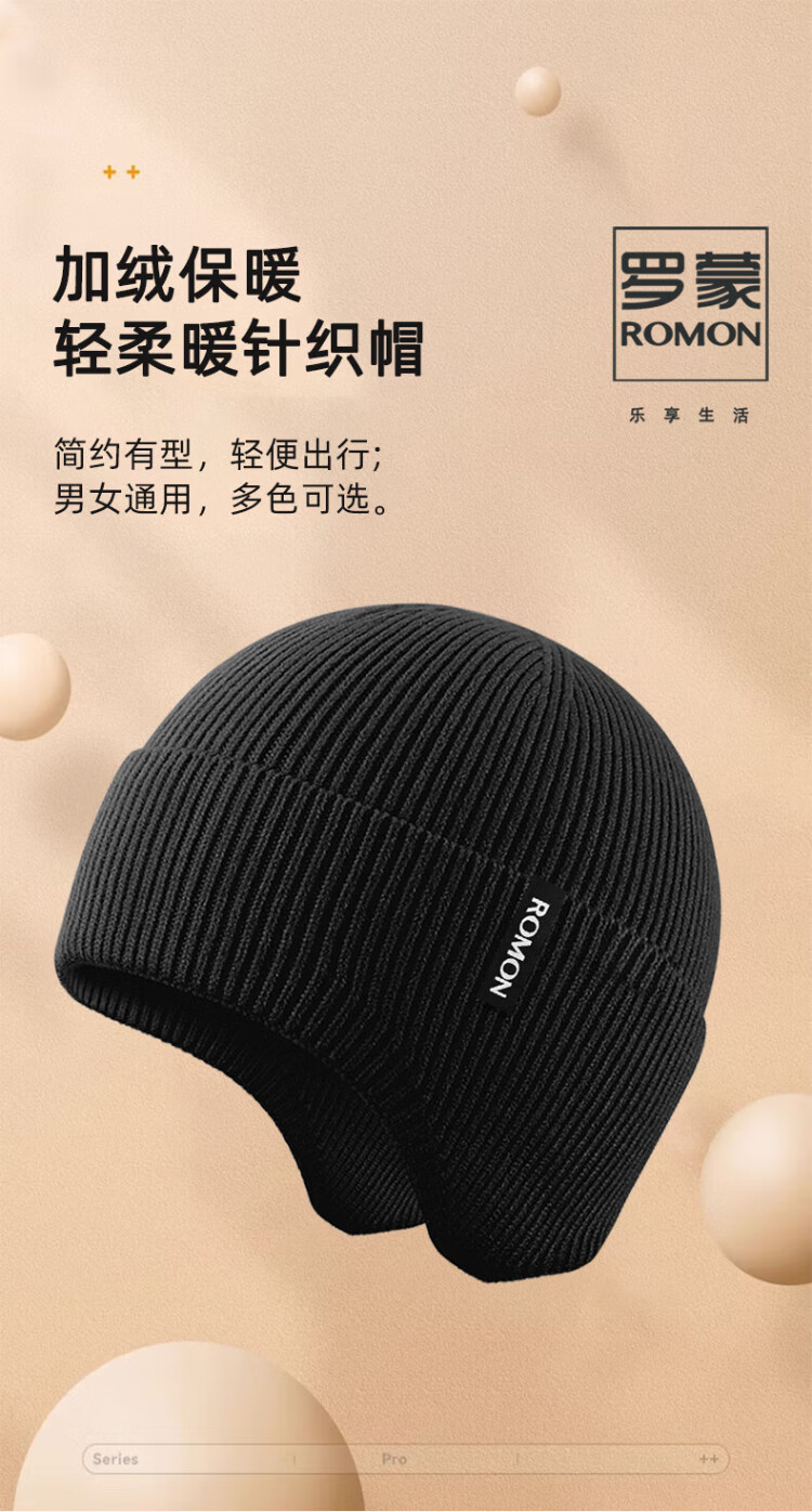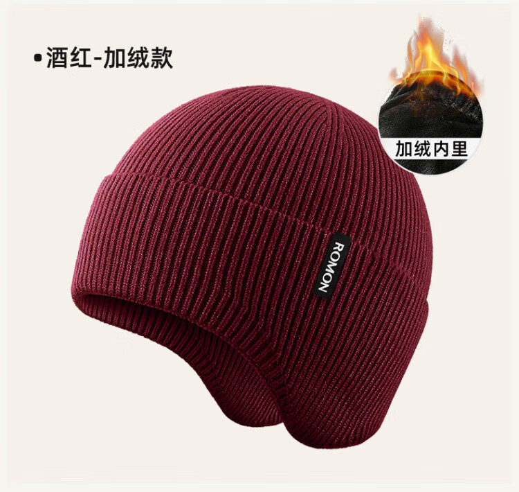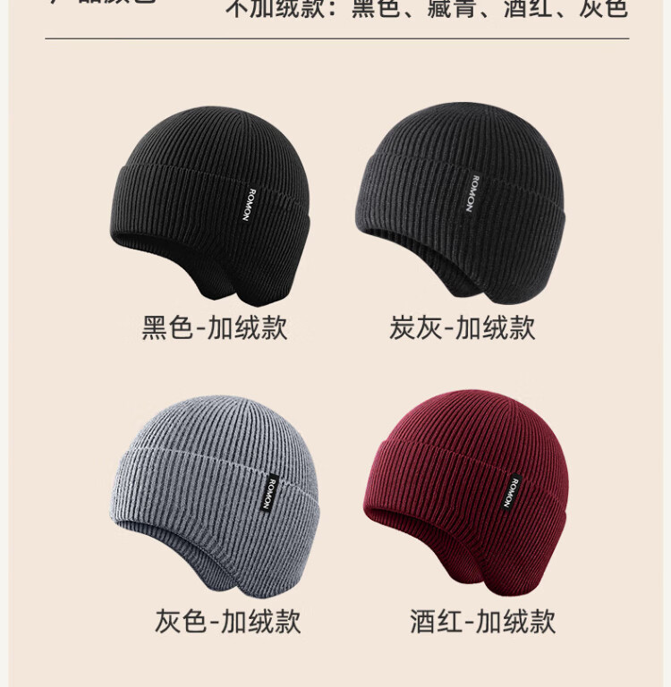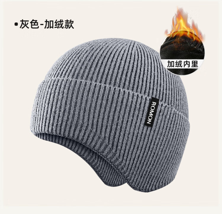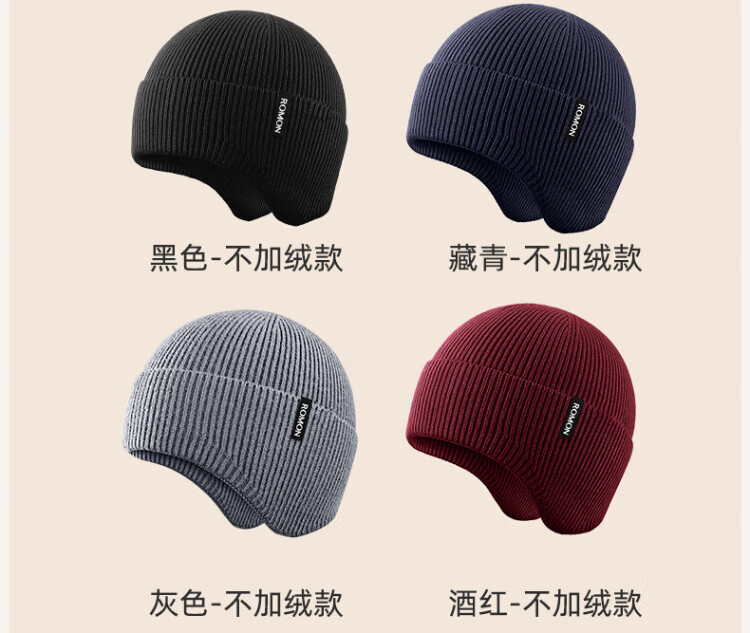 Romon knitted hat for men and women, autumn and winter woolen hat, outdoor cycling windproof and coldproof ear protection cold hat, versatile warm hat