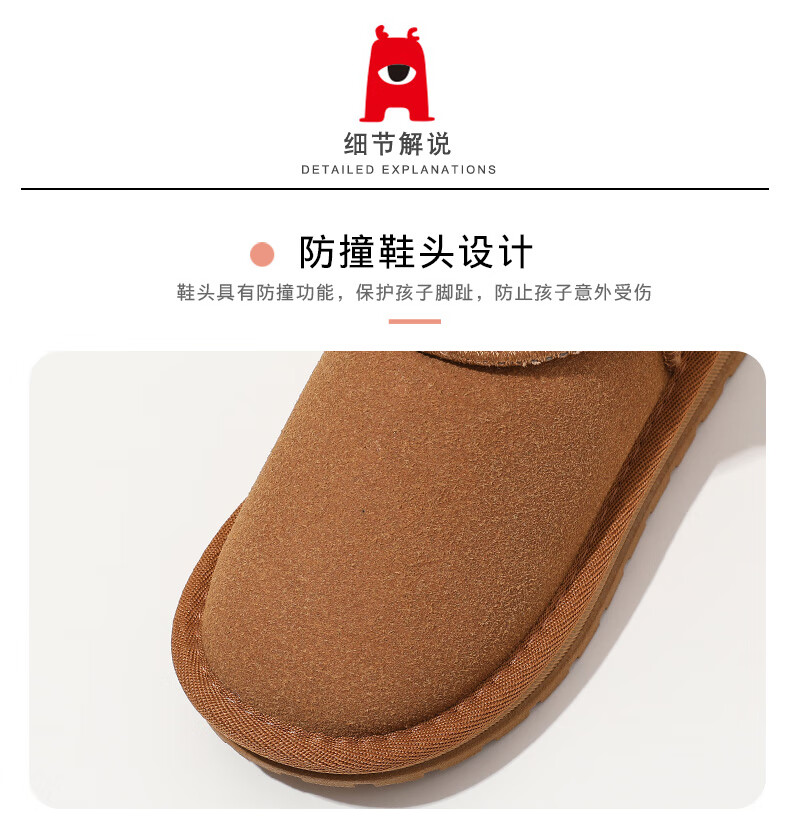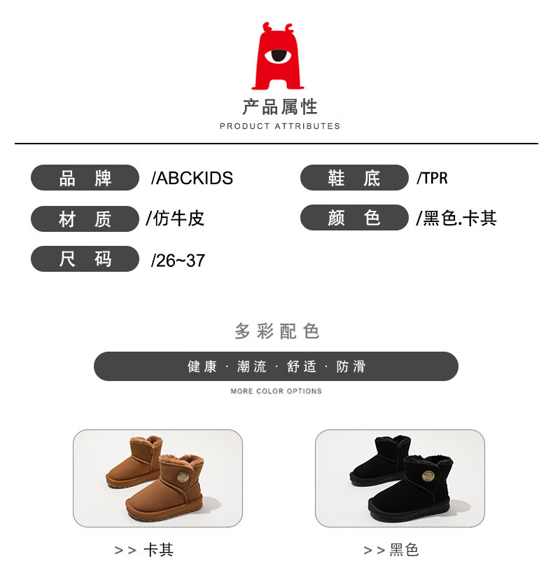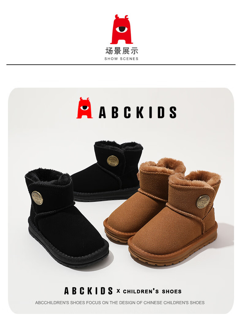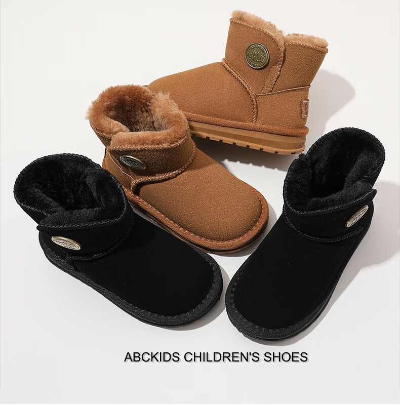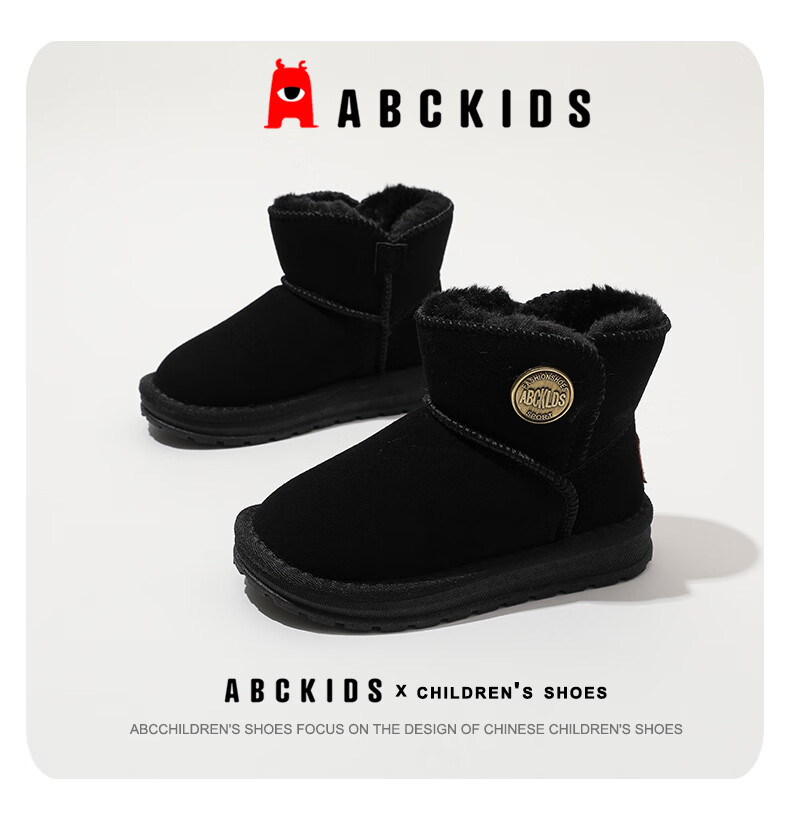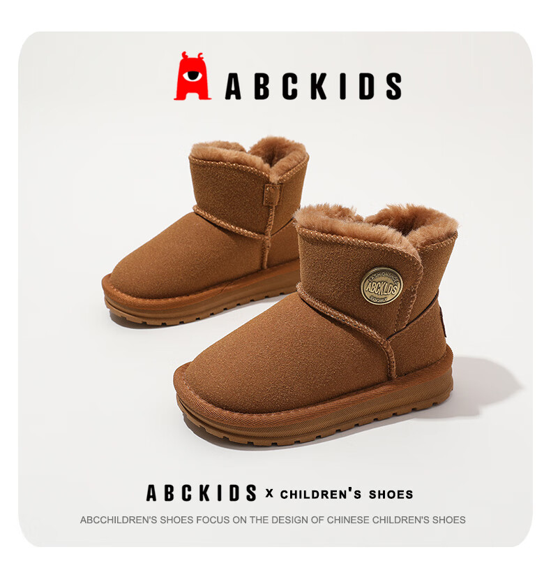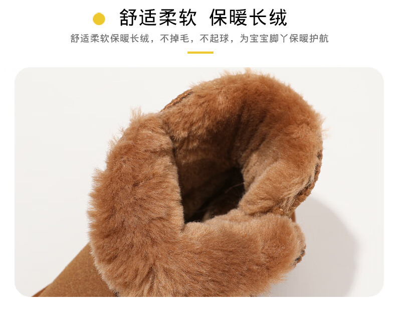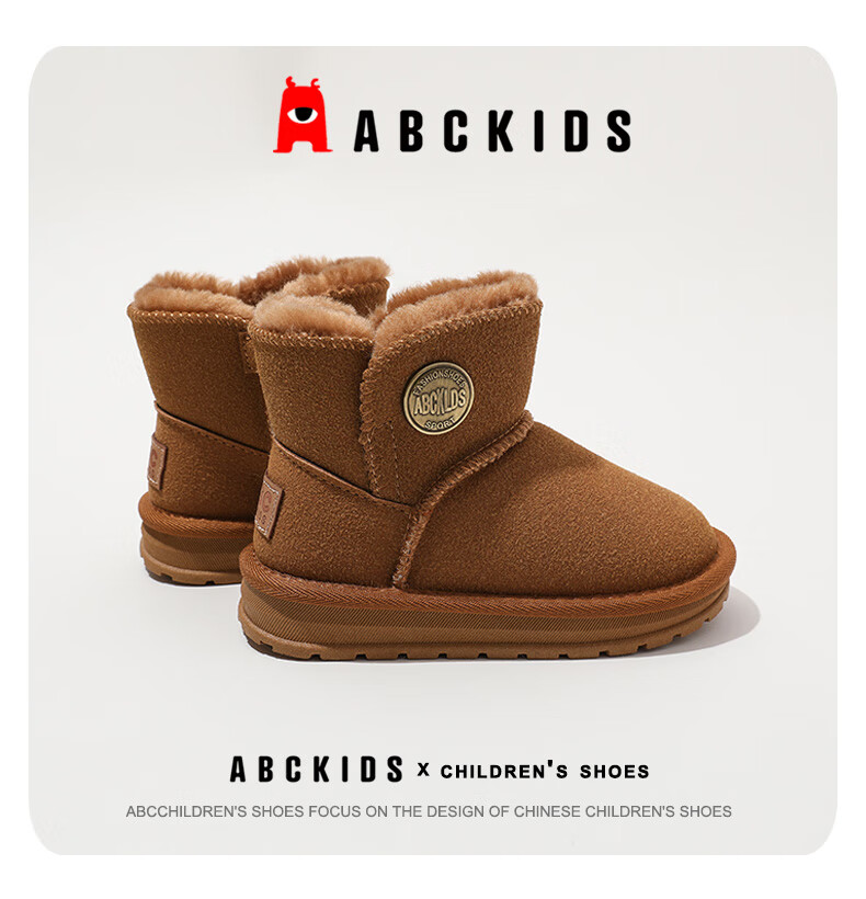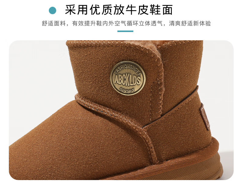 ABC KIDS children's snow boots winter velvet thickened girls' cotton boots boys' cotton shoes 3876PY khaki 29