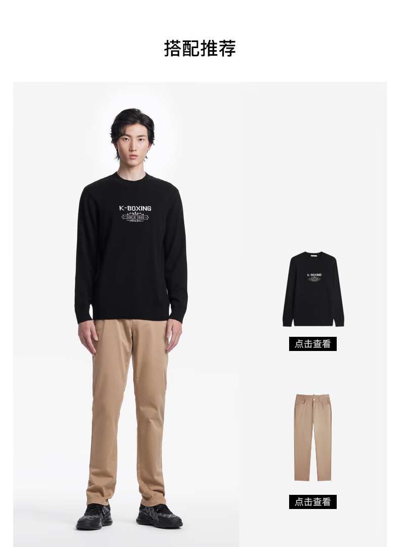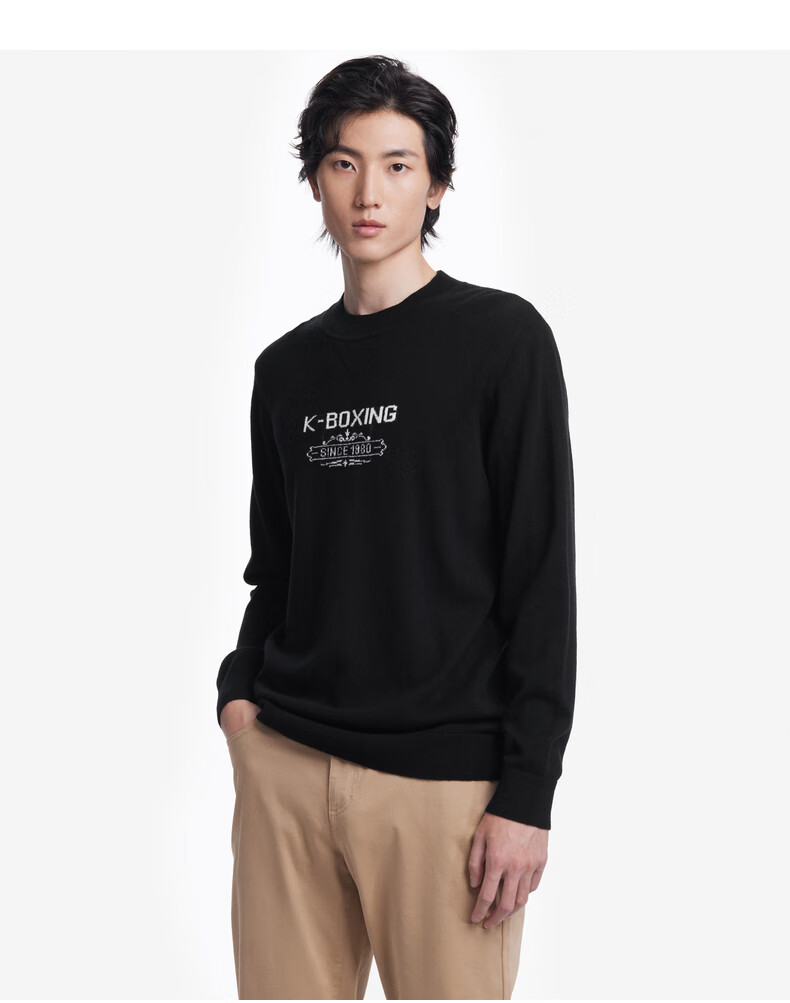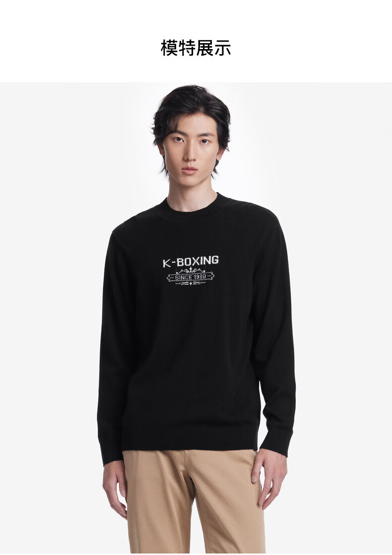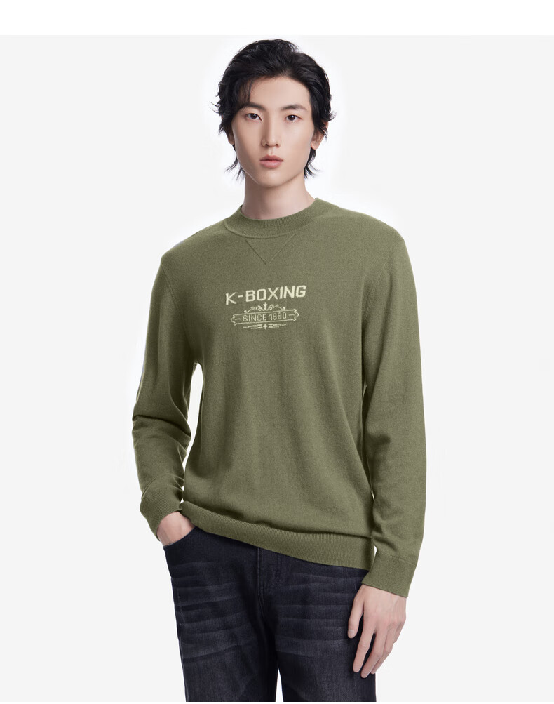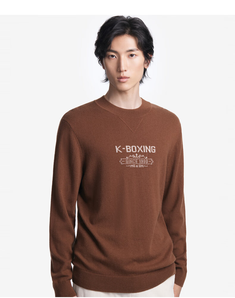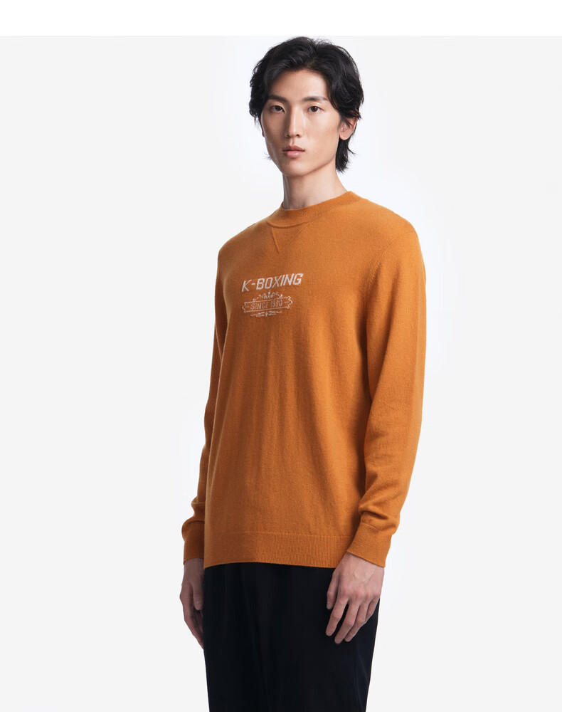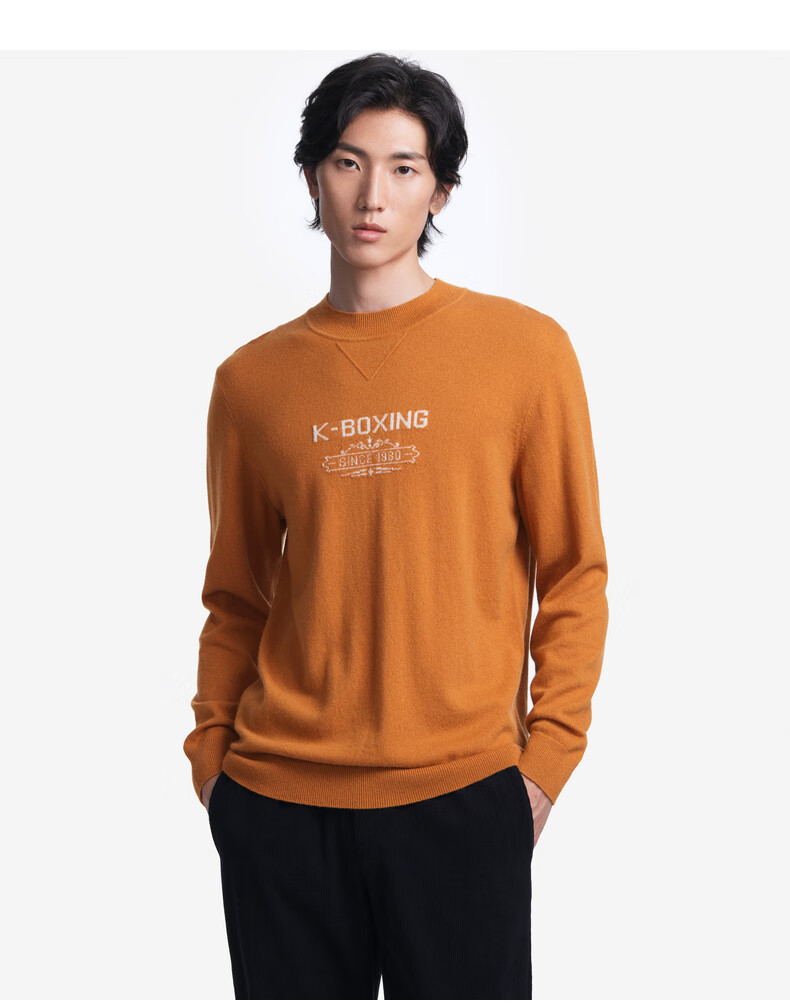 K-Boxing Men's Sheep Wool Men's Sweater Skin Friendly Breathable Bottoming Shirt for Men|FYET3346 Sunset Orange 175/L
