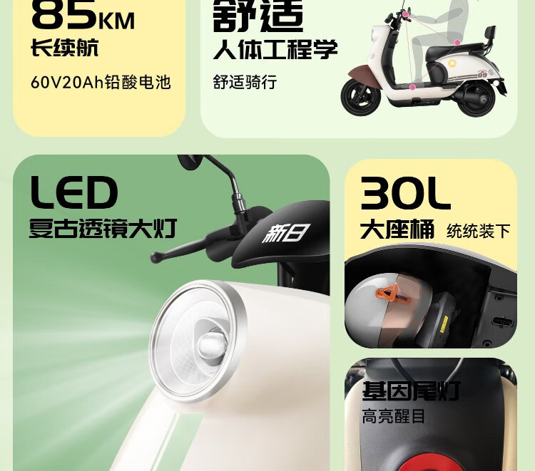 Sunra electric motorcycle Liman self-operated motorcycle 60v 5 lead-acid batteries 76km range large pedal electric car unisex battery car electric motorcycle brown