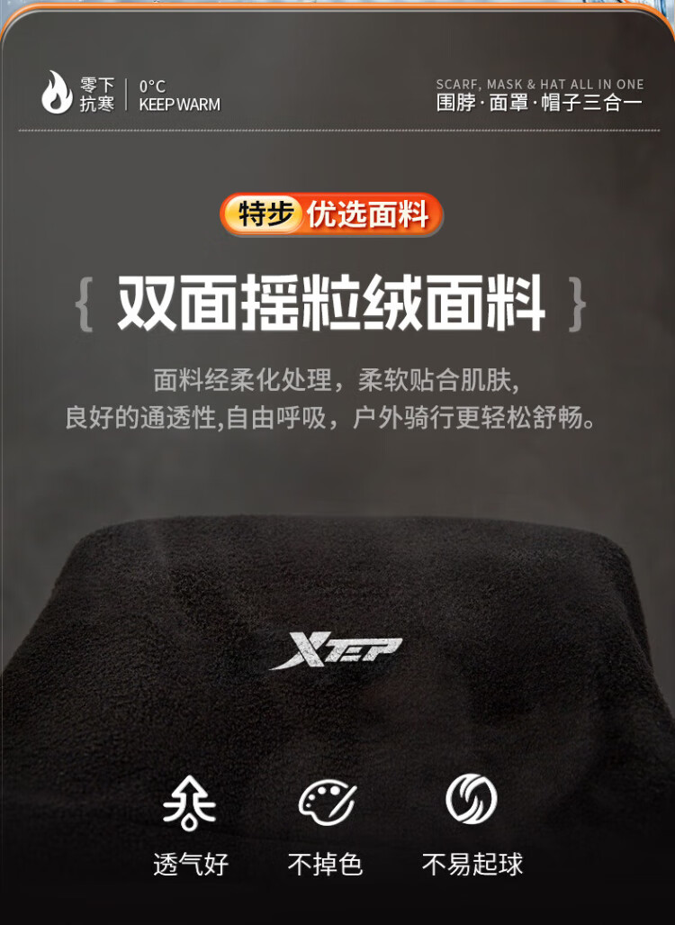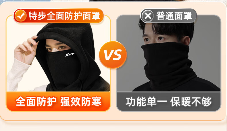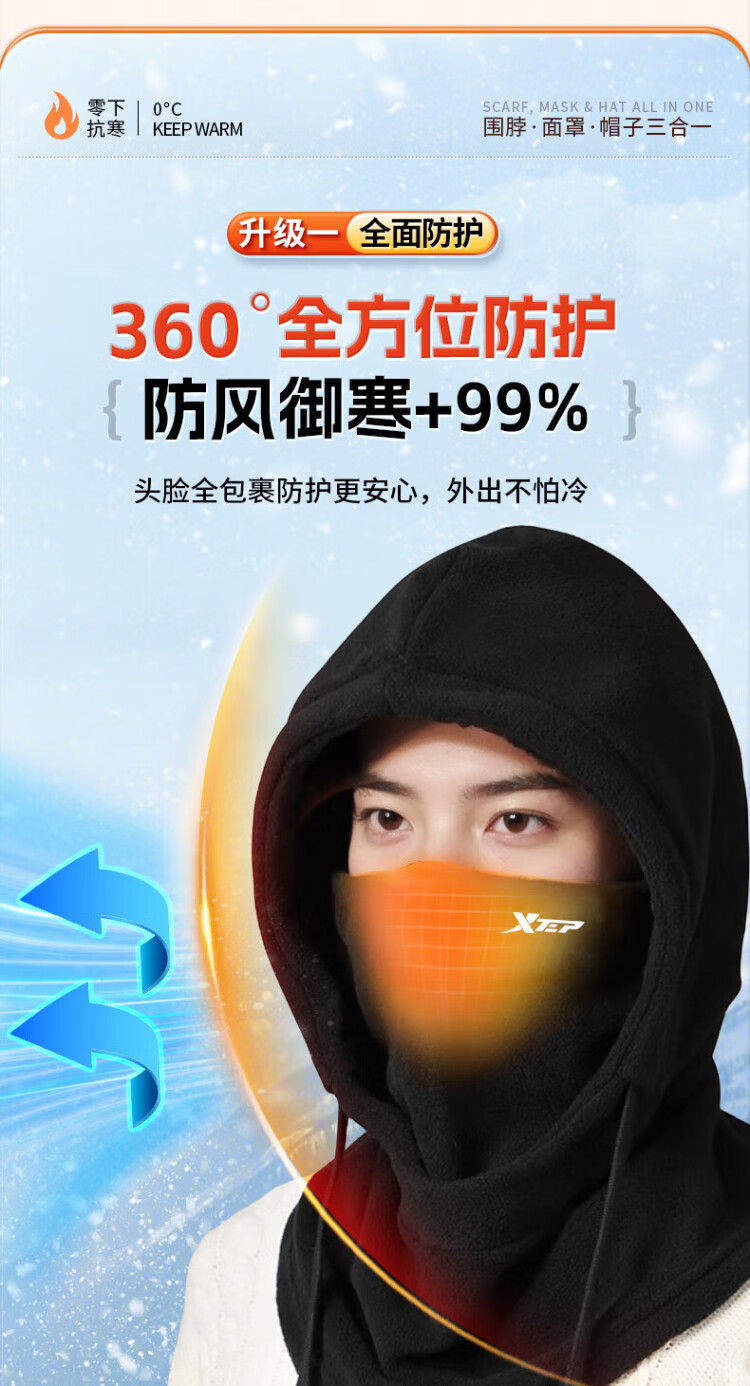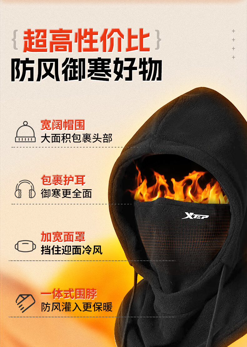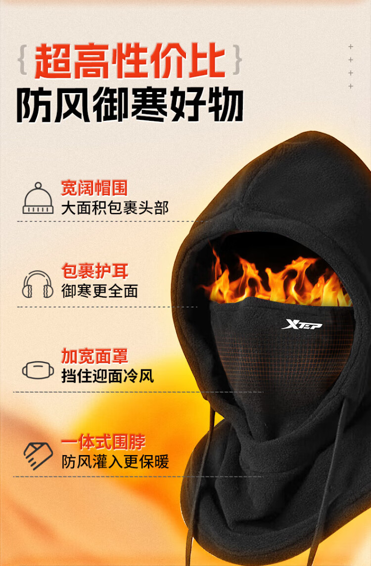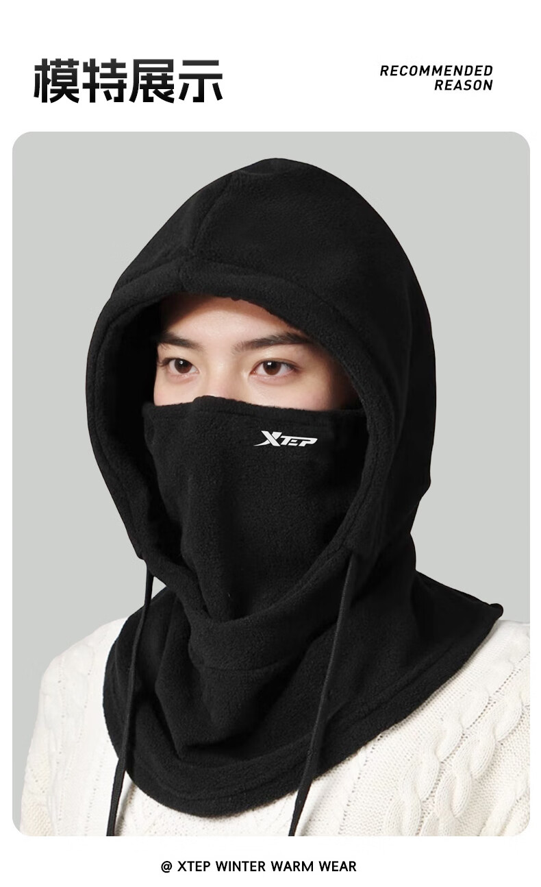 XTEP (XTEP) cycling windproof mask, cold-proof and warm headgear, winter hat, skiing and cycling, windshield, face protection, neck scarf for men and women