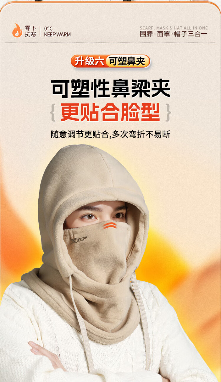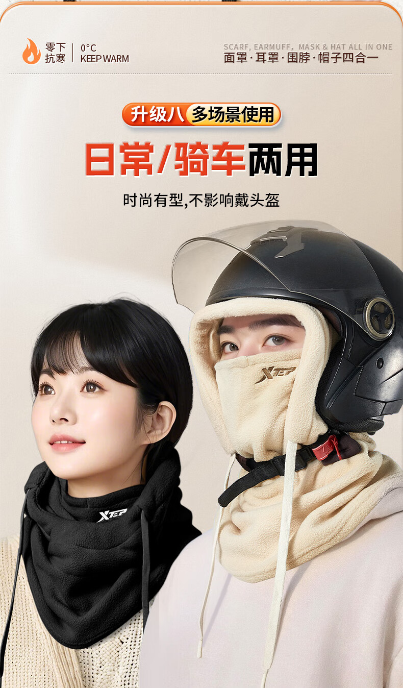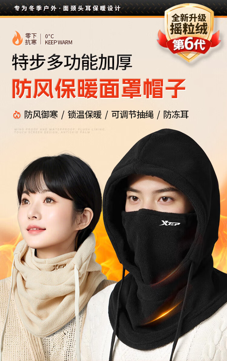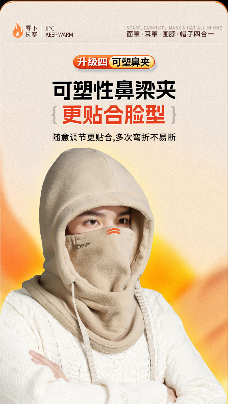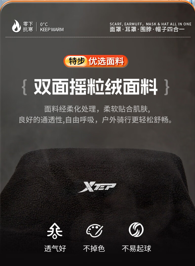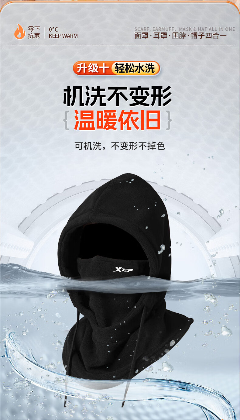 XTEP (XTEP) cycling windproof mask, cold-proof and warm headgear, winter hat, skiing and cycling, windshield, face protection, neck scarf for men and women