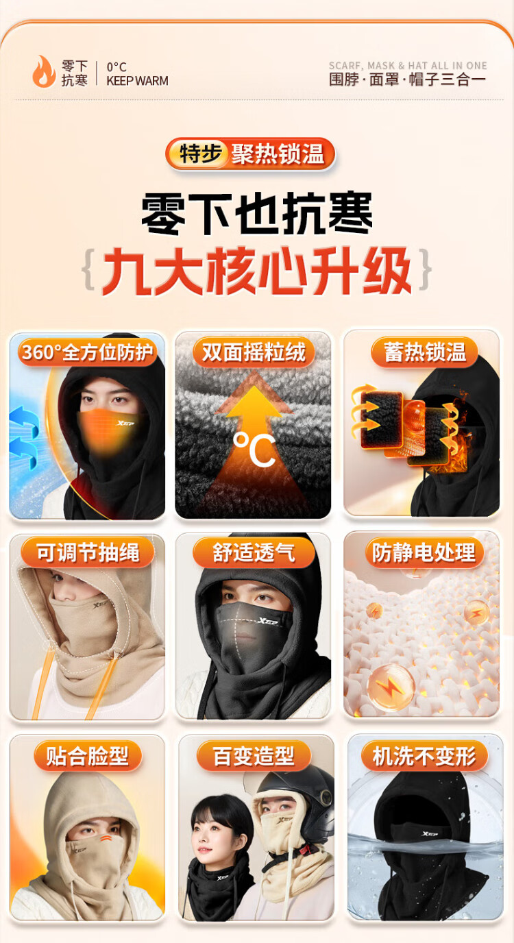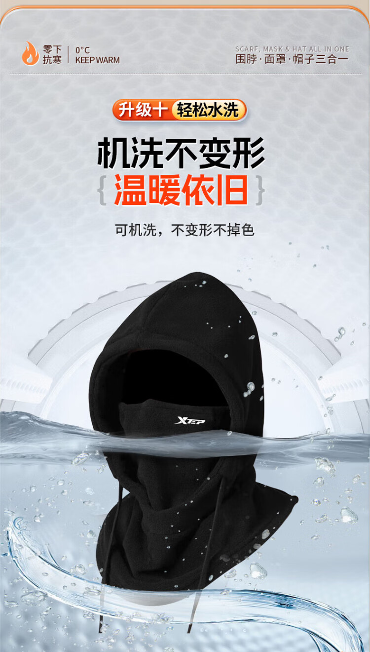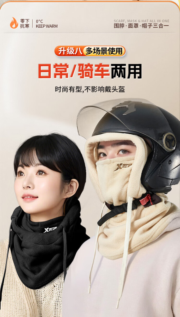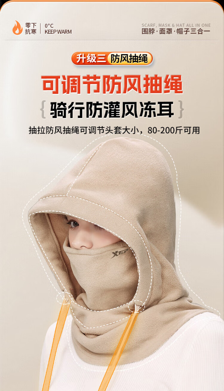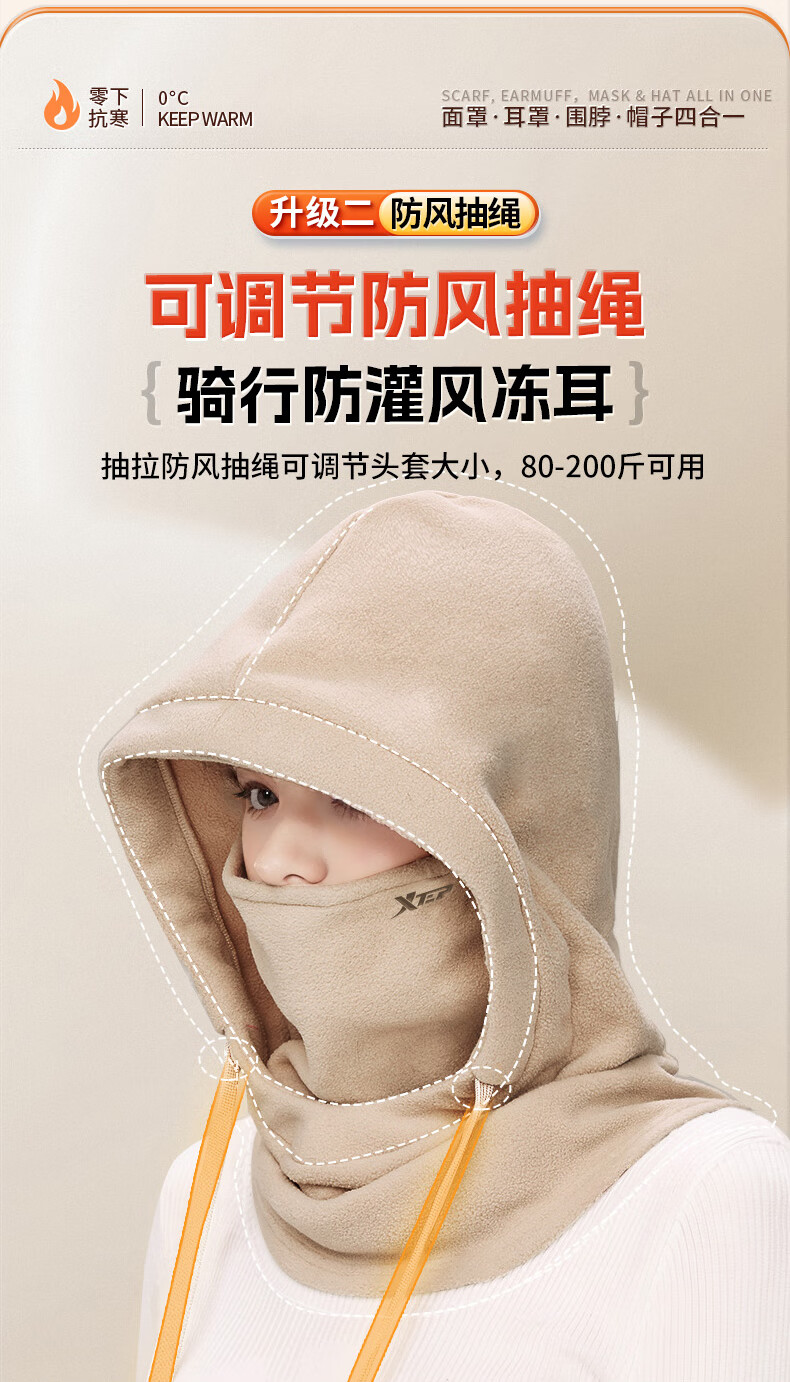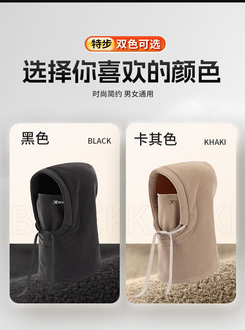 XTEP (XTEP) cycling windproof mask, cold-proof and warm headgear, winter hat, skiing and cycling, windshield, face protection, neck scarf for men and women