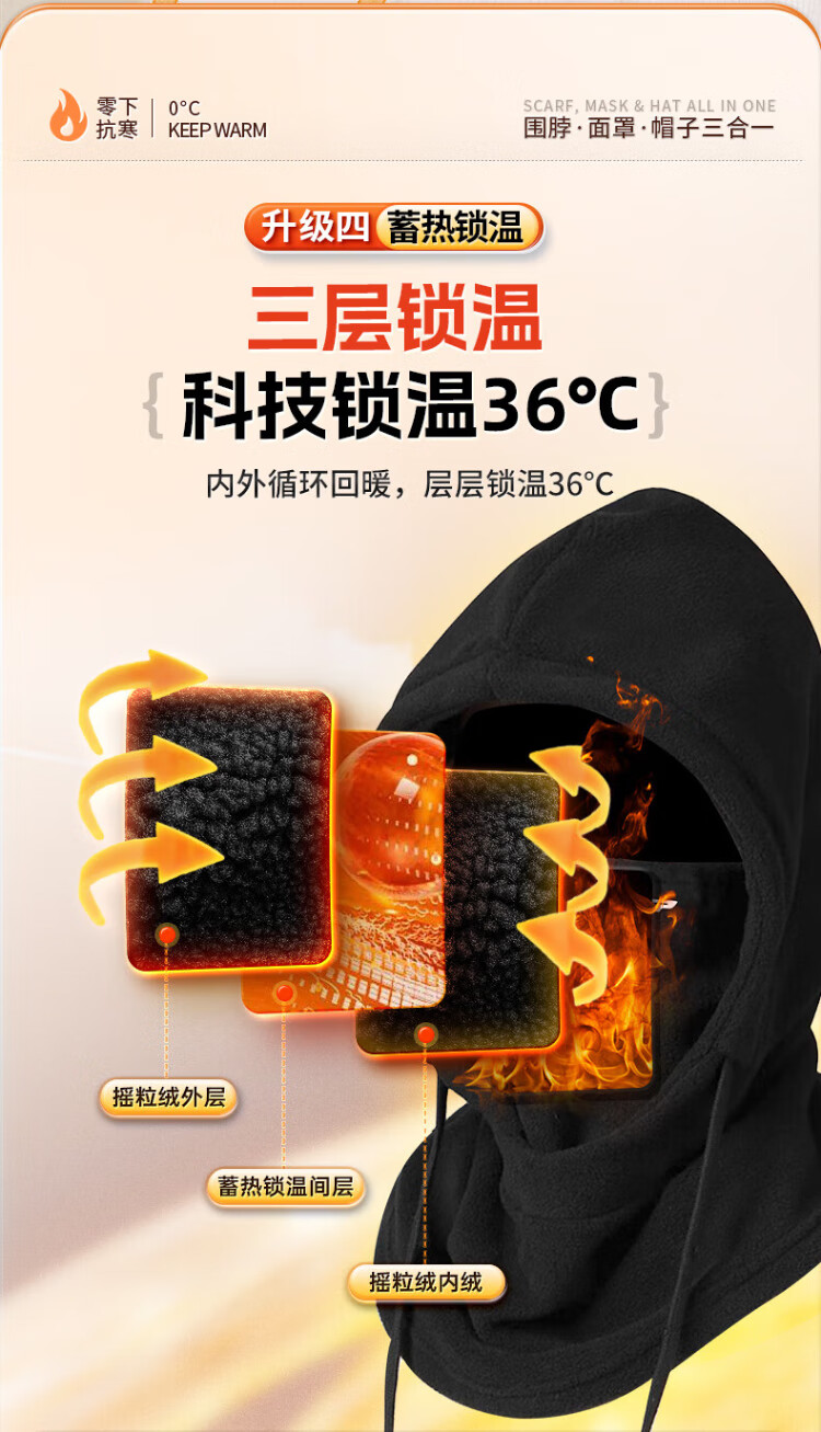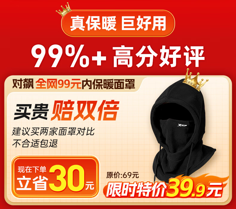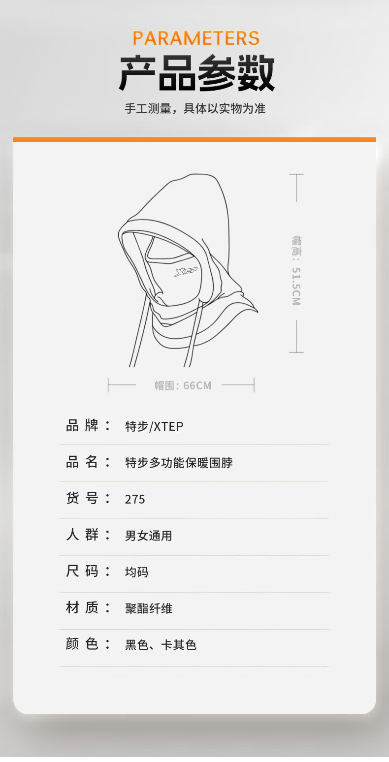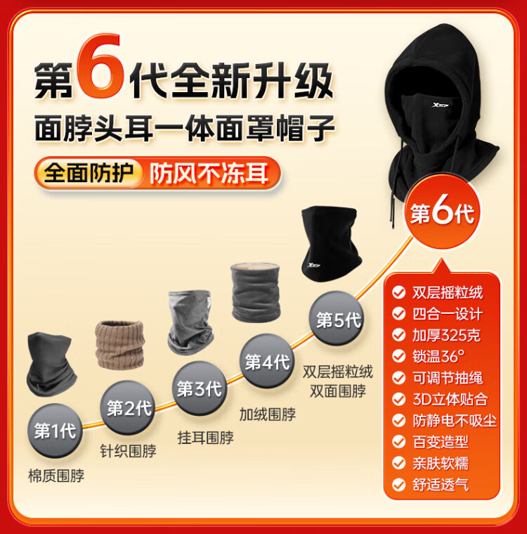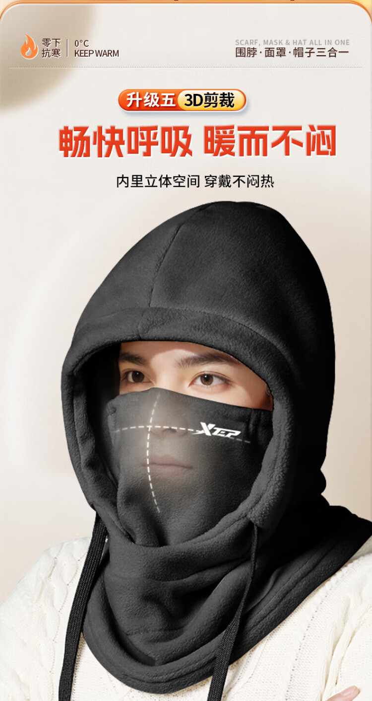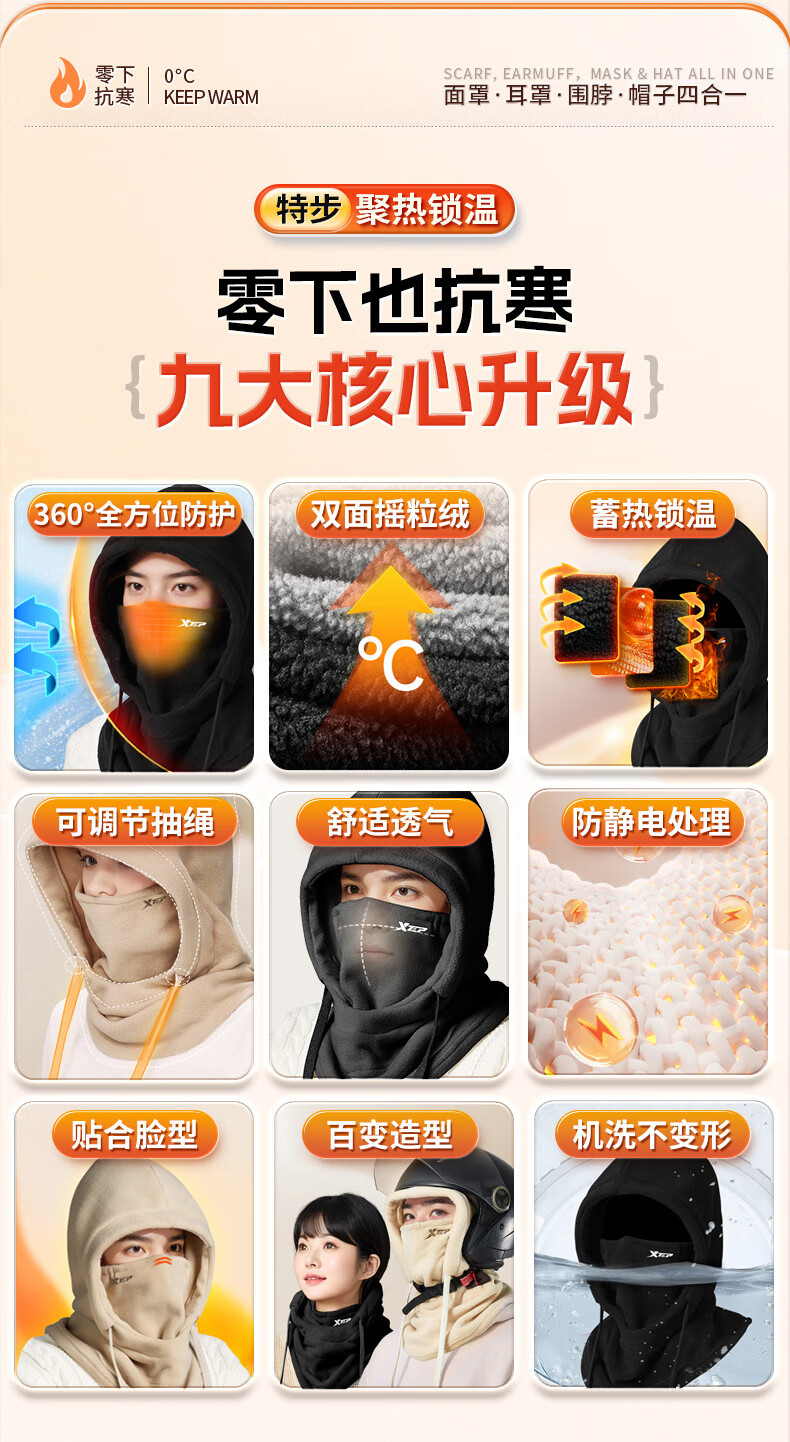 XTEP (XTEP) cycling windproof mask, cold-proof and warm headgear, winter hat, skiing and cycling, windshield, face protection, neck scarf for men and women