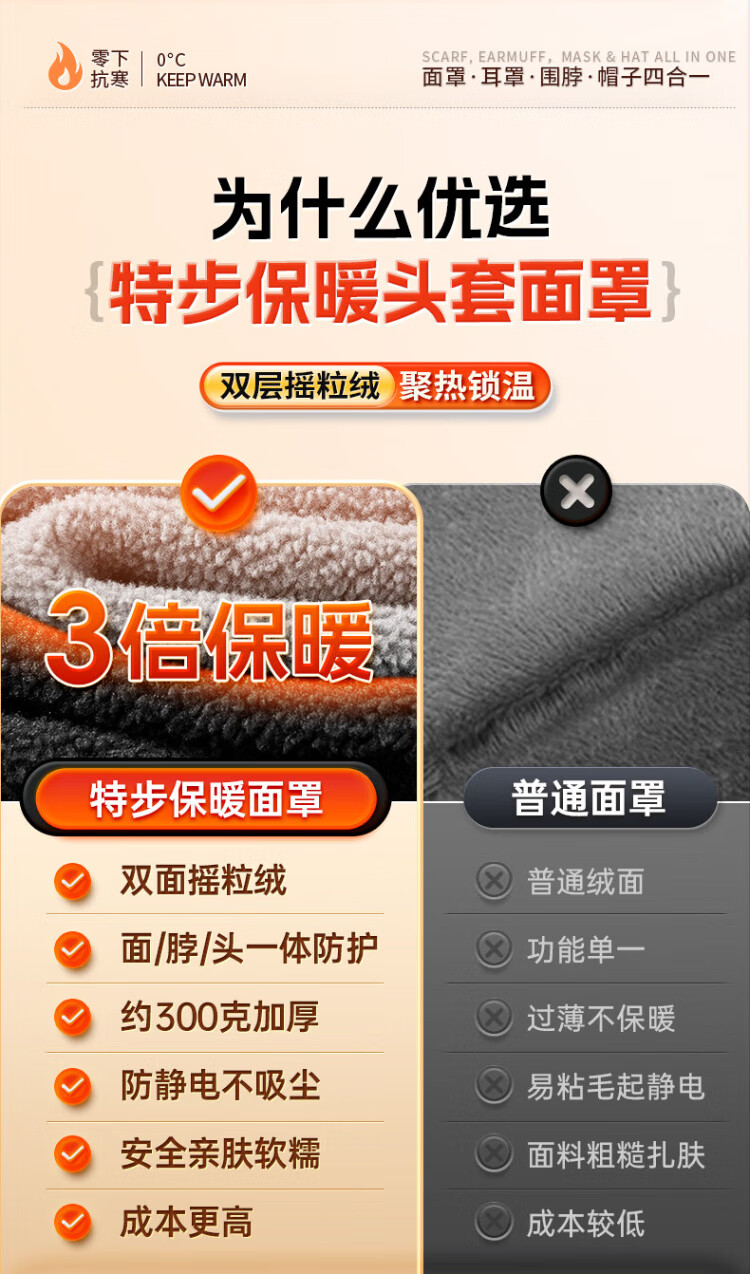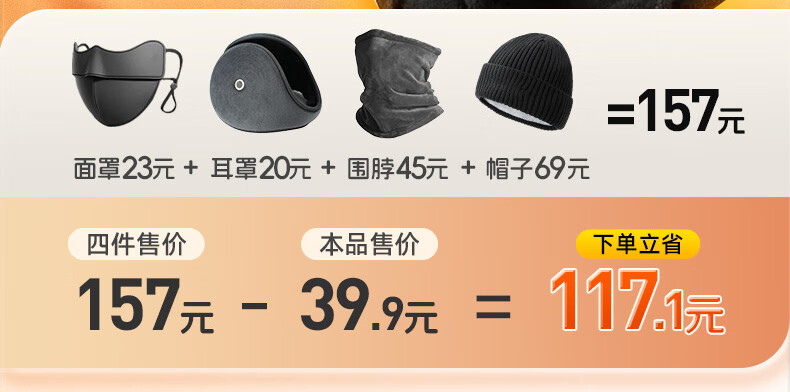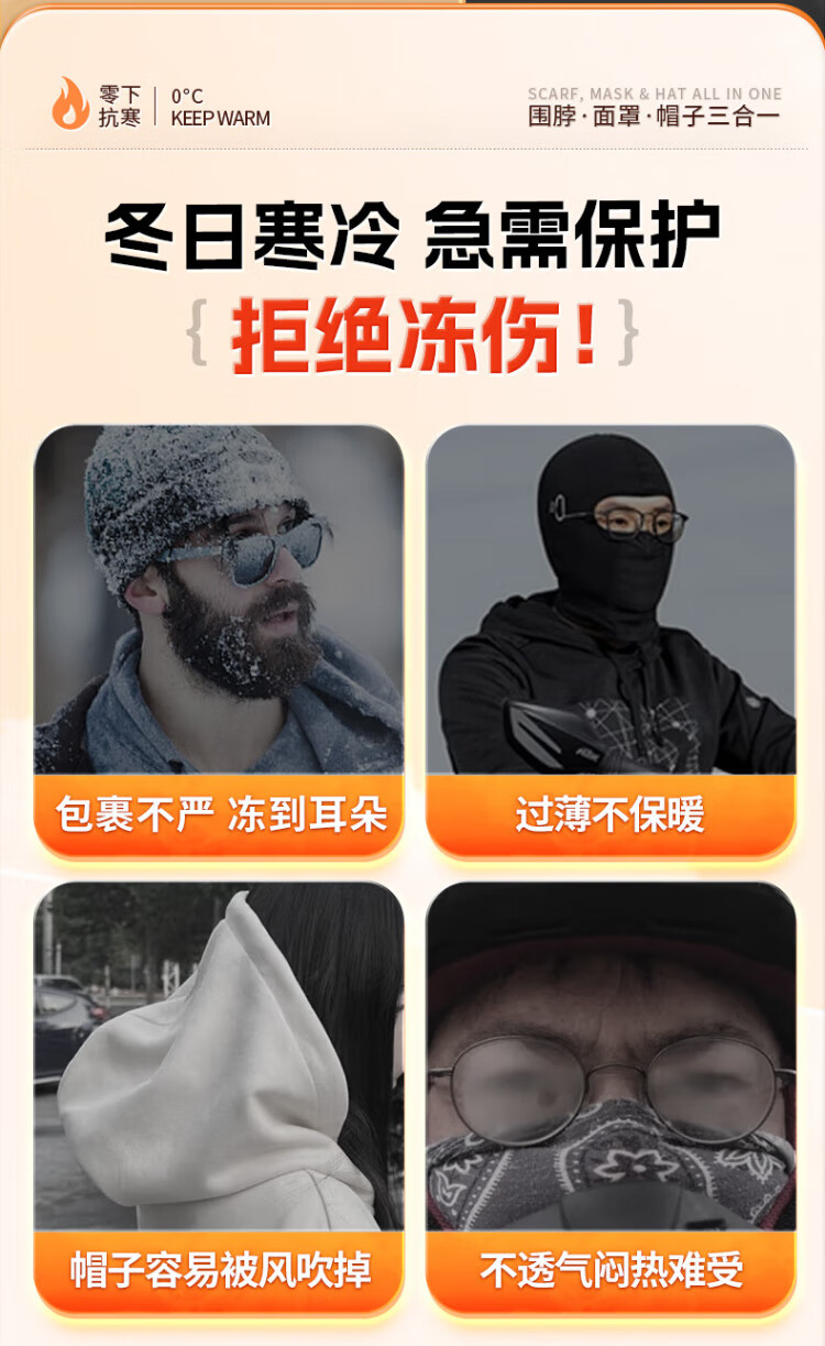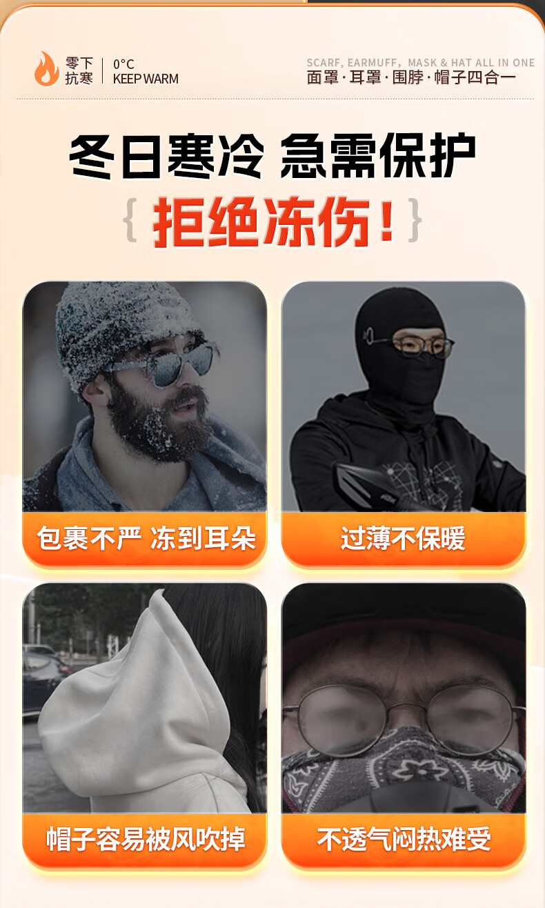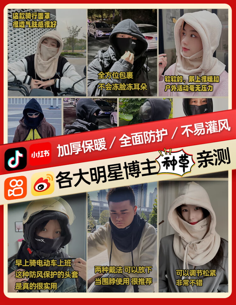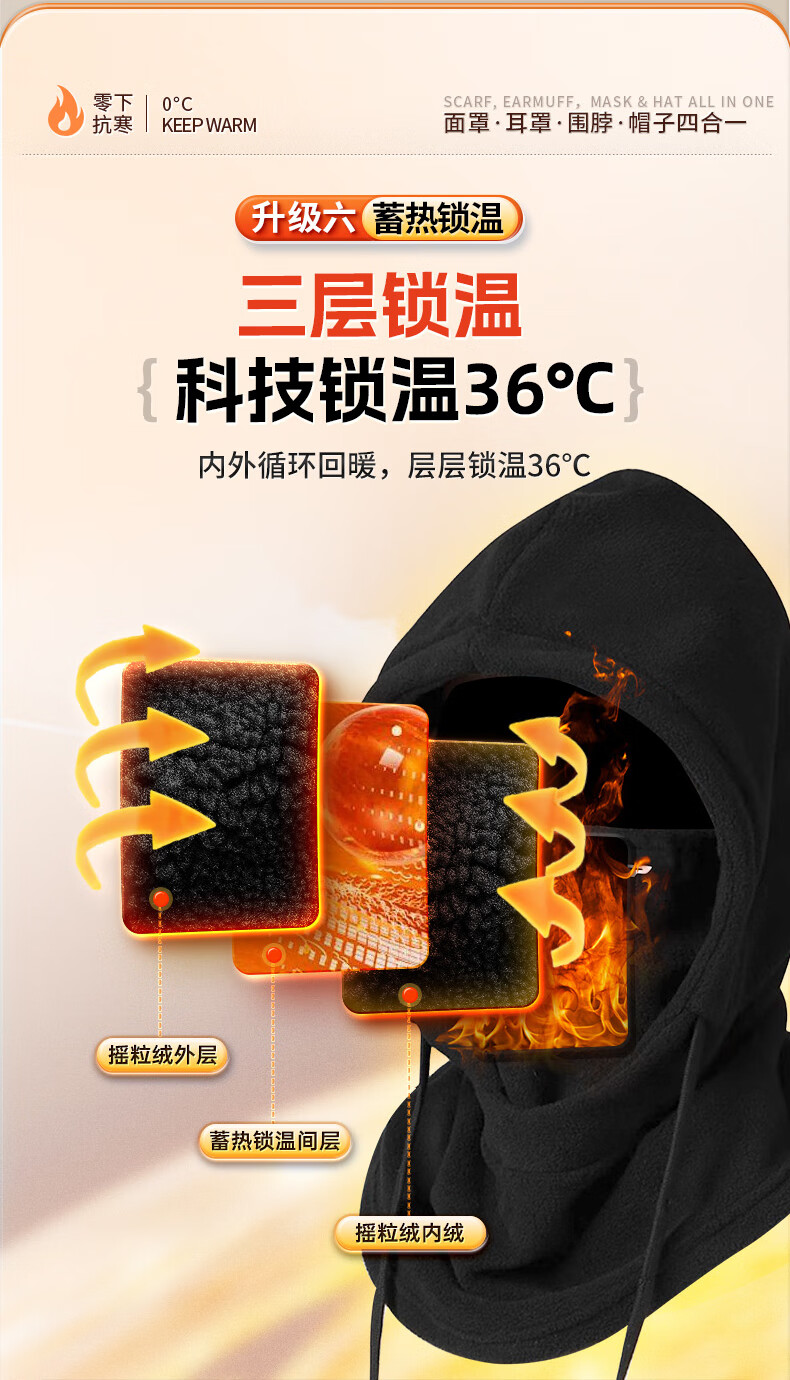 XTEP (XTEP) cycling windproof mask, cold-proof and warm headgear, winter hat, skiing and cycling, windshield, face protection, neck scarf for men and women