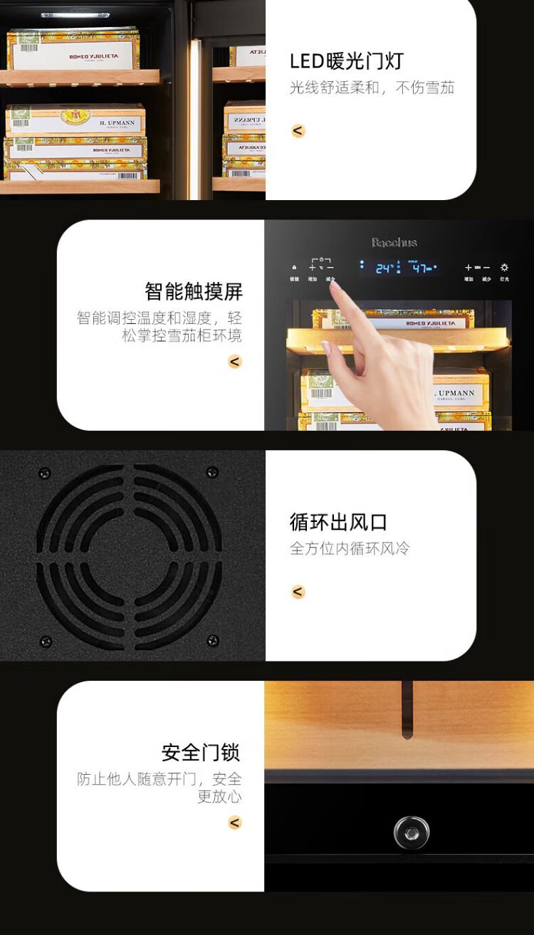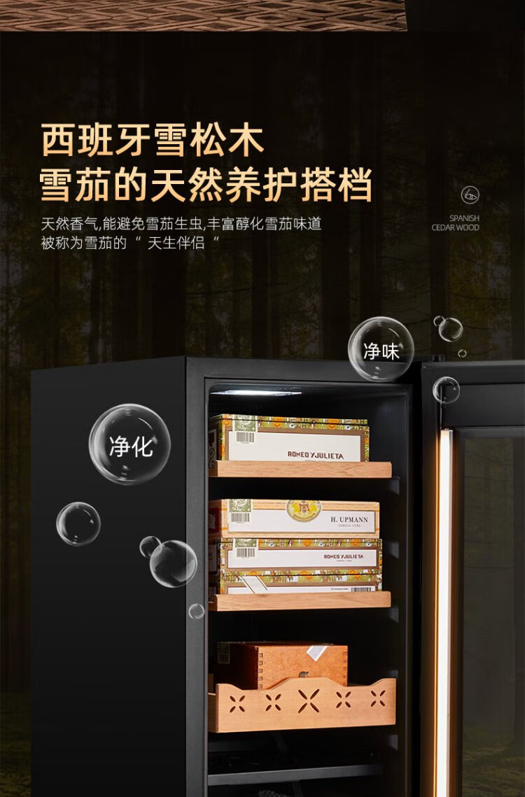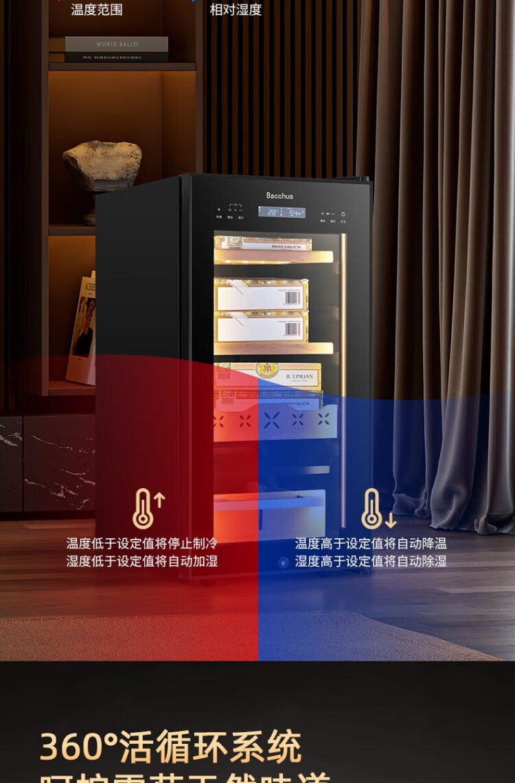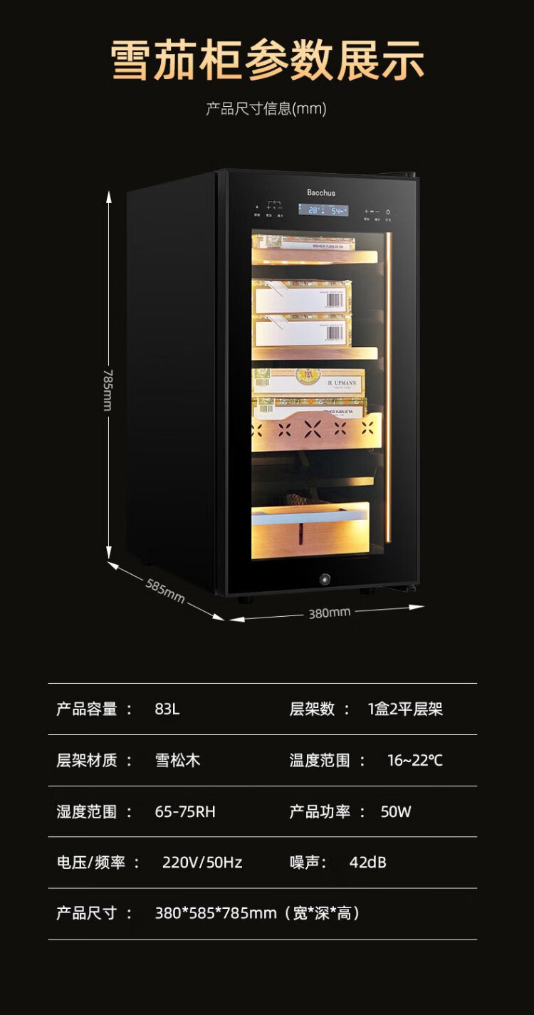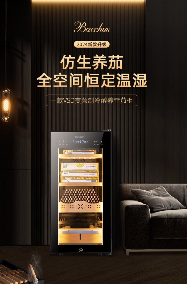 Bacchus cigar cabinet, inverter compressor, independent humidity control, constant temperature and humidity, naked air-cooled cedar wood shelf YH-24WIFI model 300-400 pieces 65L