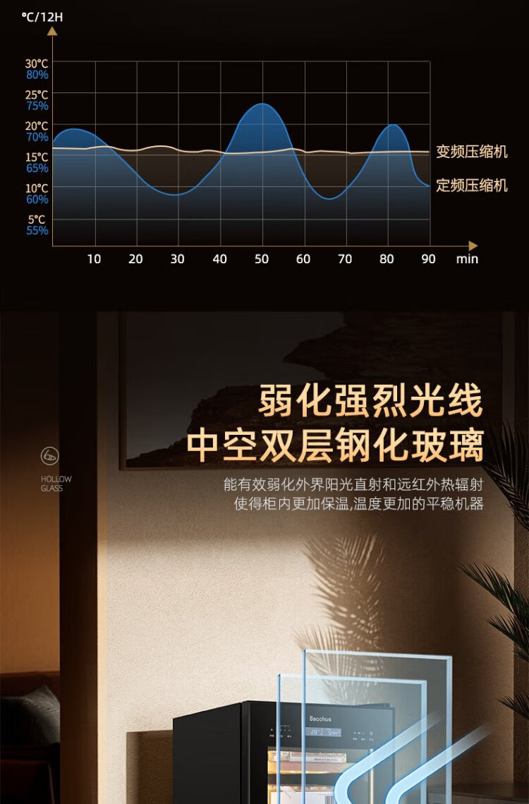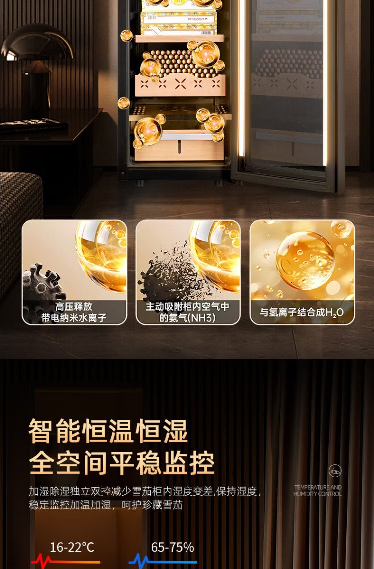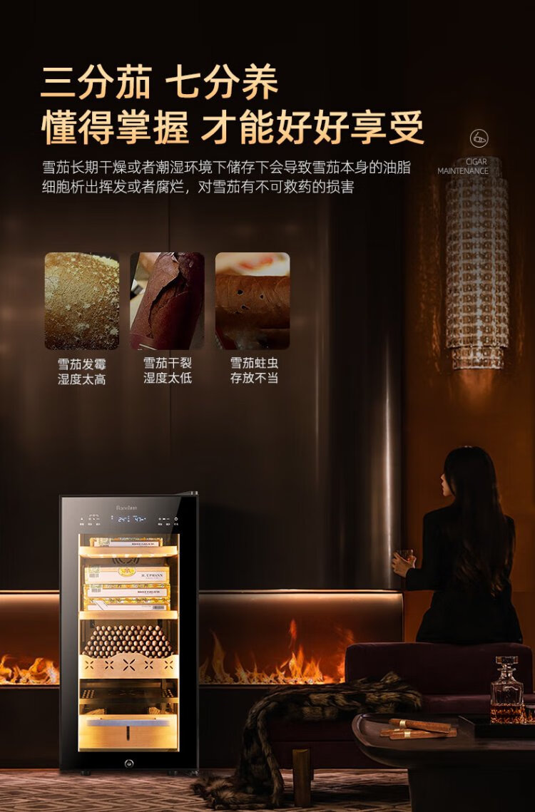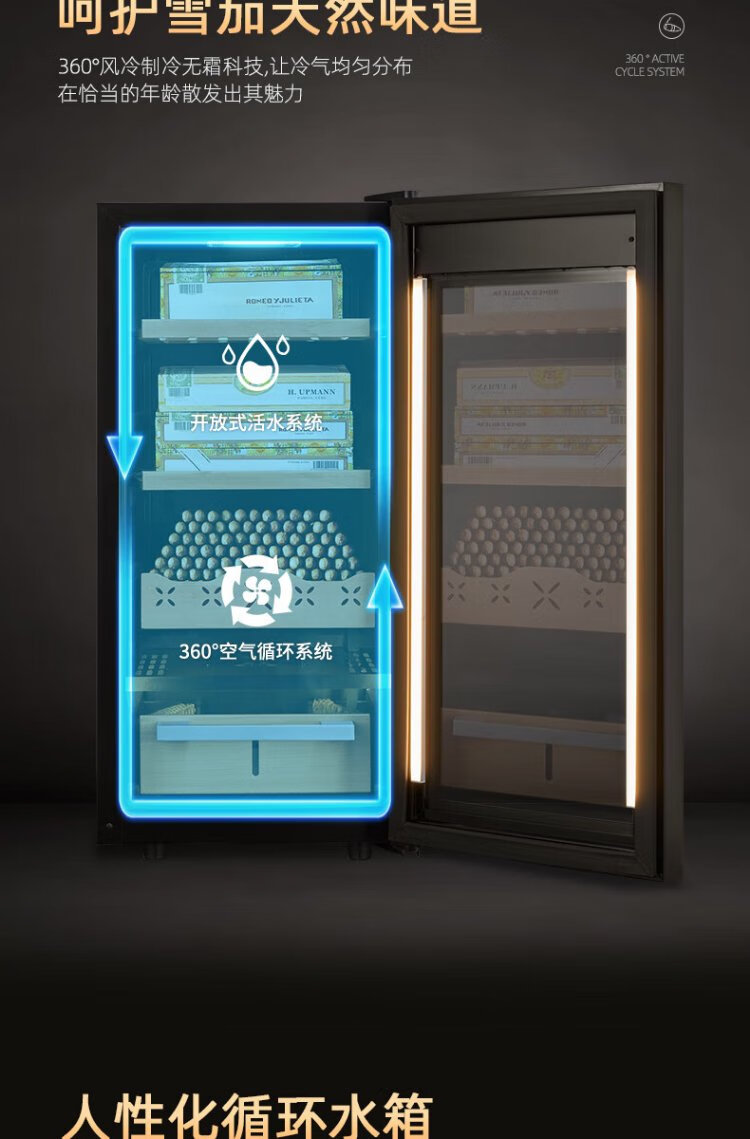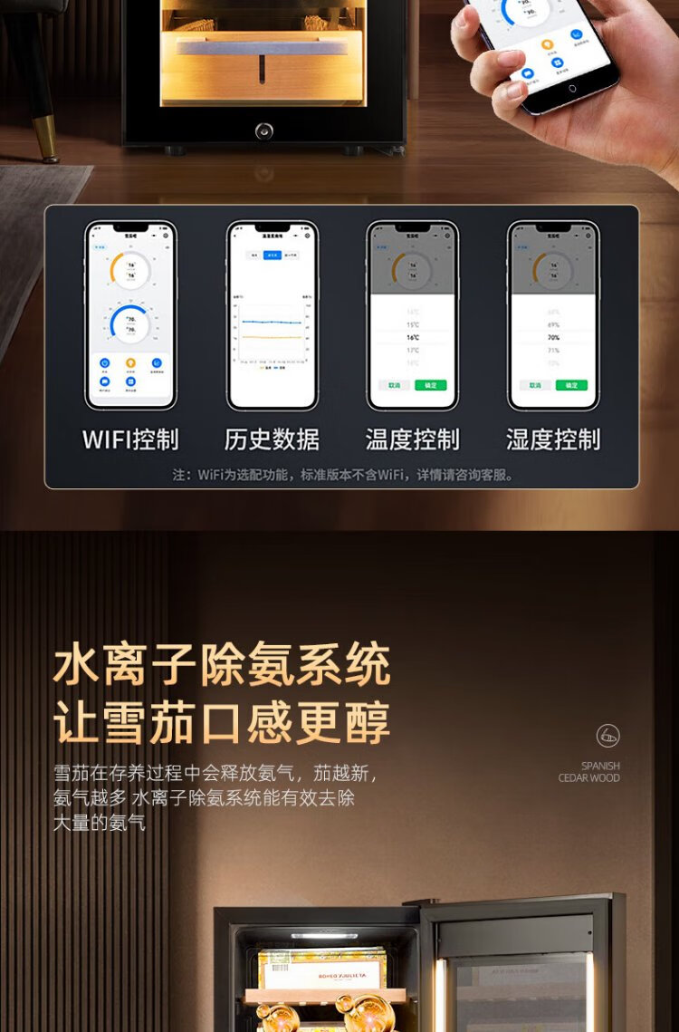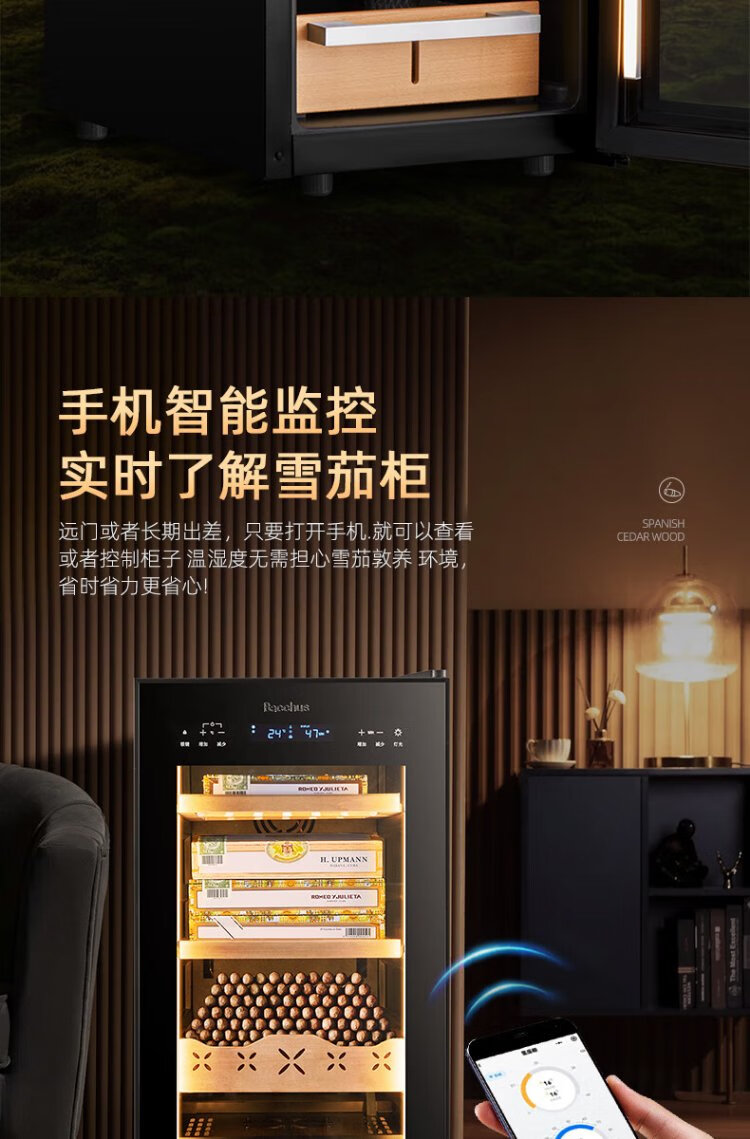 Bacchus cigar cabinet, inverter compressor, independent humidity control, constant temperature and humidity, naked air-cooled cedar wood shelf YH-24WIFI model 300-400 pieces 65L