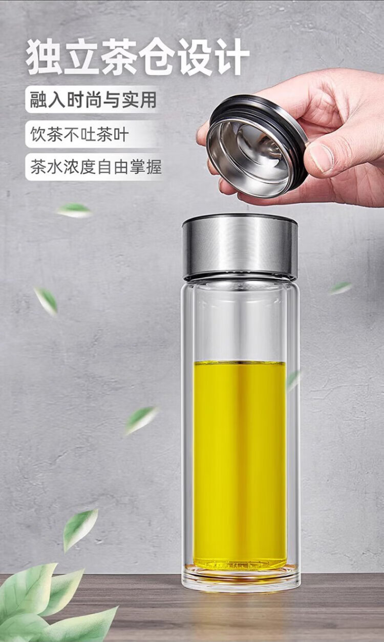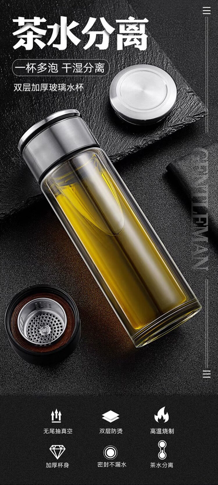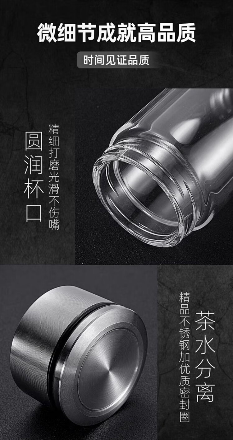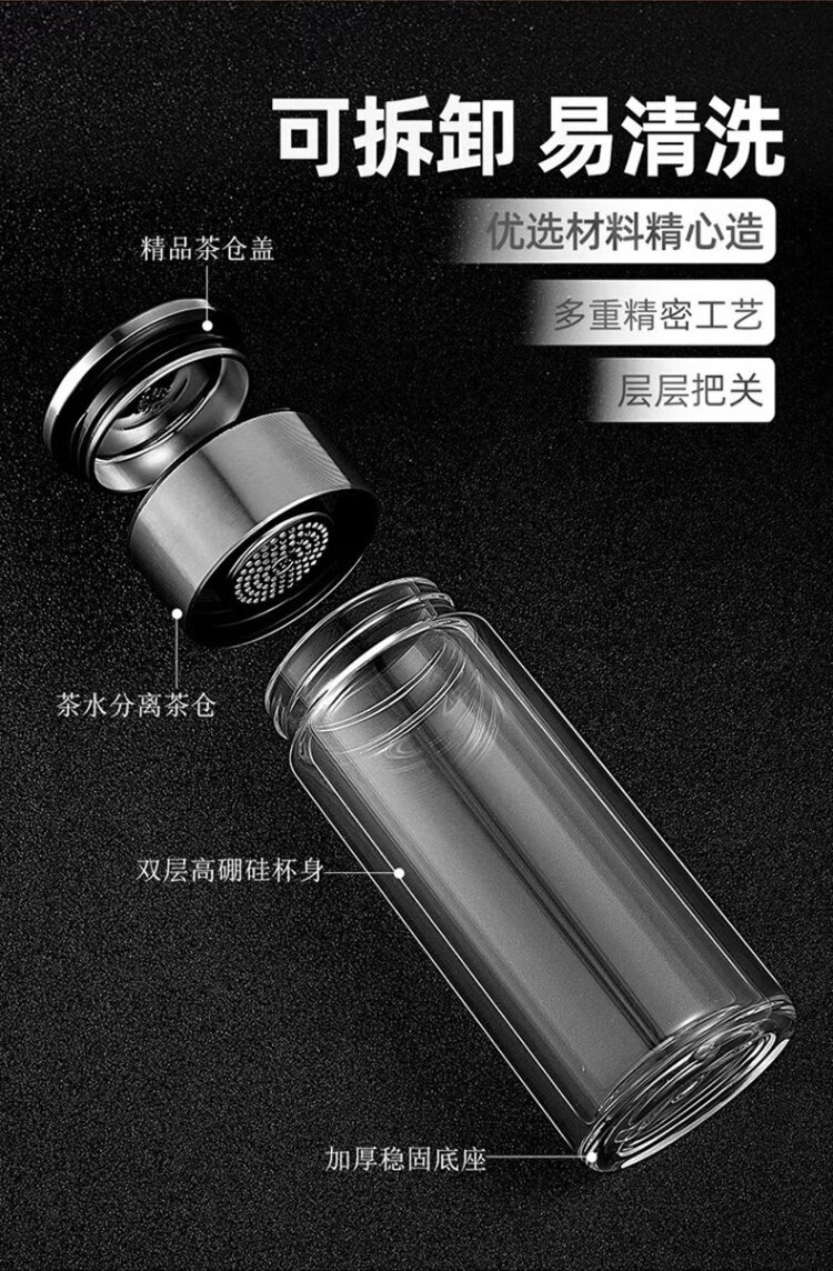 Home easy tea and water separation tea cup double-layer high borosilicate glass large capacity water cup 304 tea separation business hot water cup