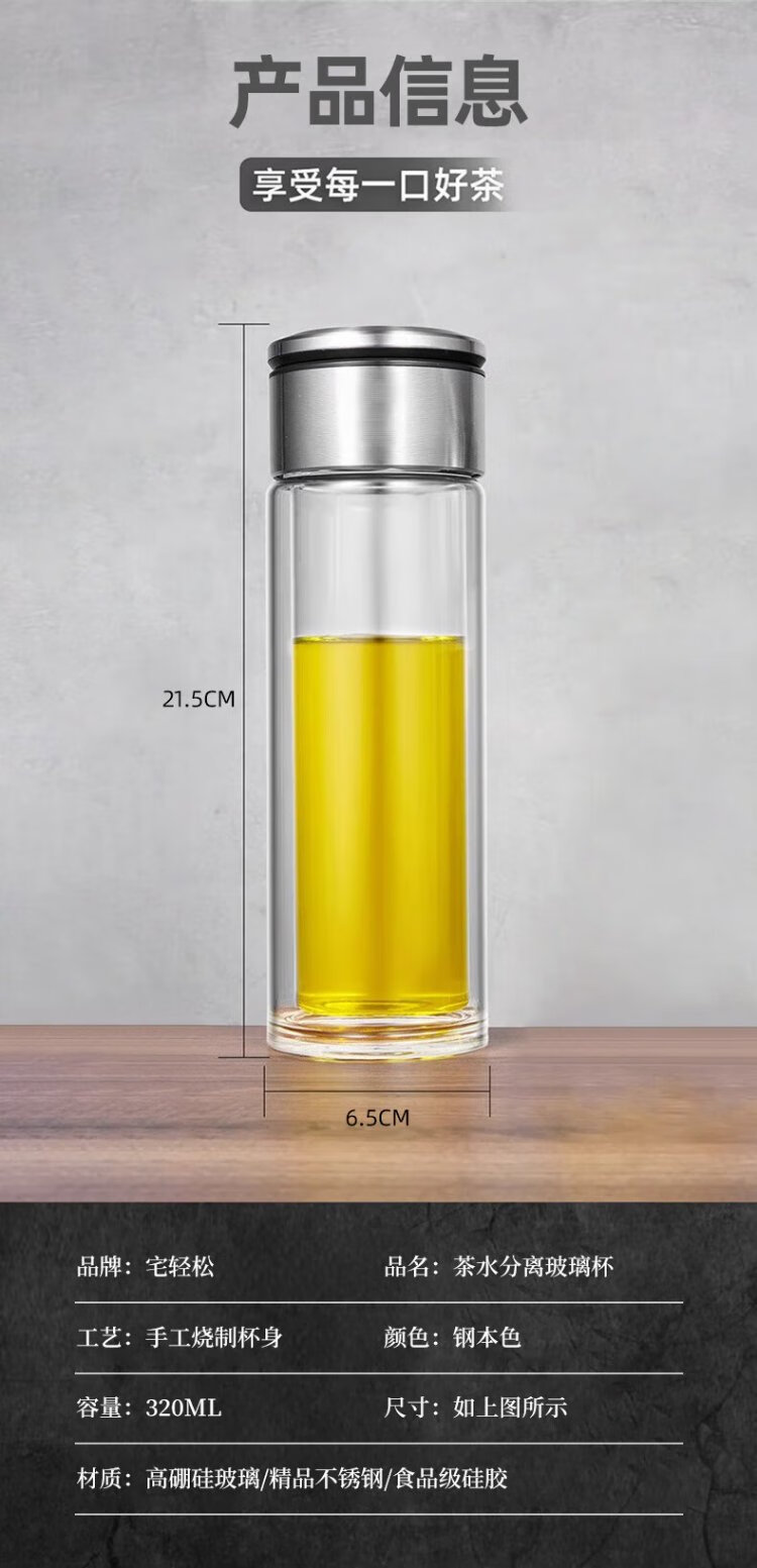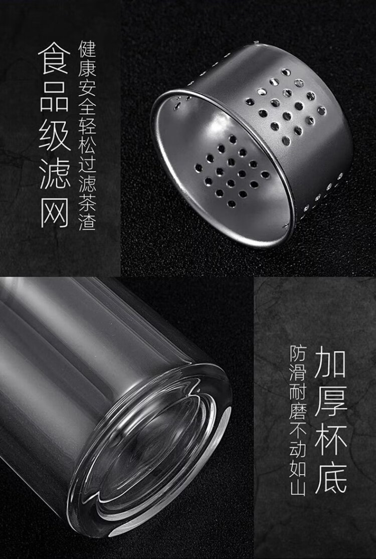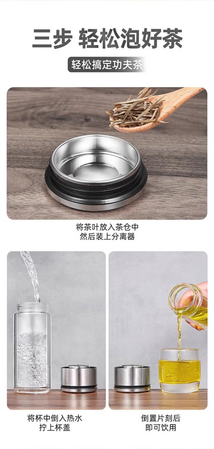 Home easy tea and water separation tea cup double-layer high borosilicate glass large capacity water cup 304 tea separation business hot water cup
