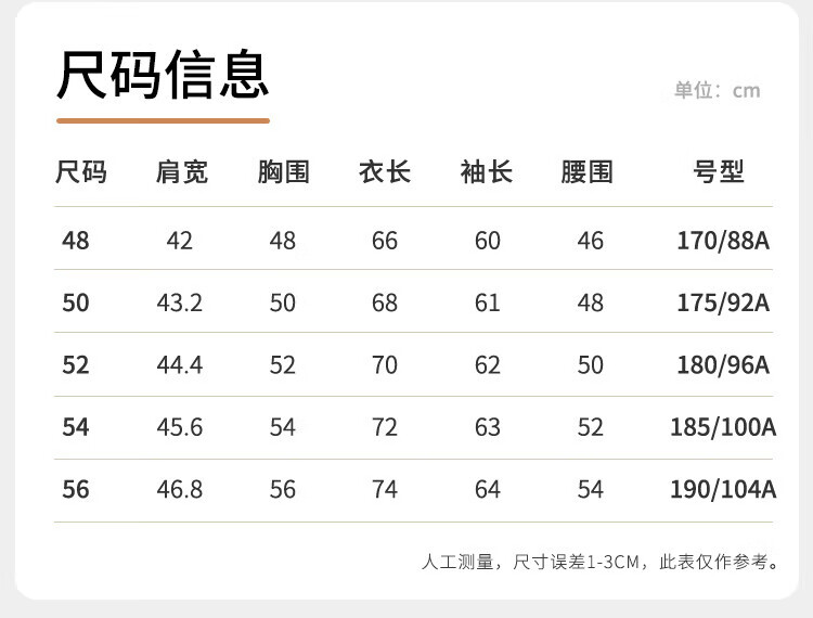 China (cm) 165 / 88-90 170 / 96-98 175 / 108-110 180 / 118-122 185 / 126-130