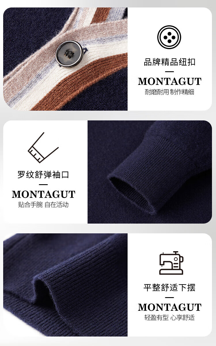 MONTAGUT autumn and winter men's cashmere cardigan fashionable wool jacket thickened warm versatile sweater Ou Shangqing 50