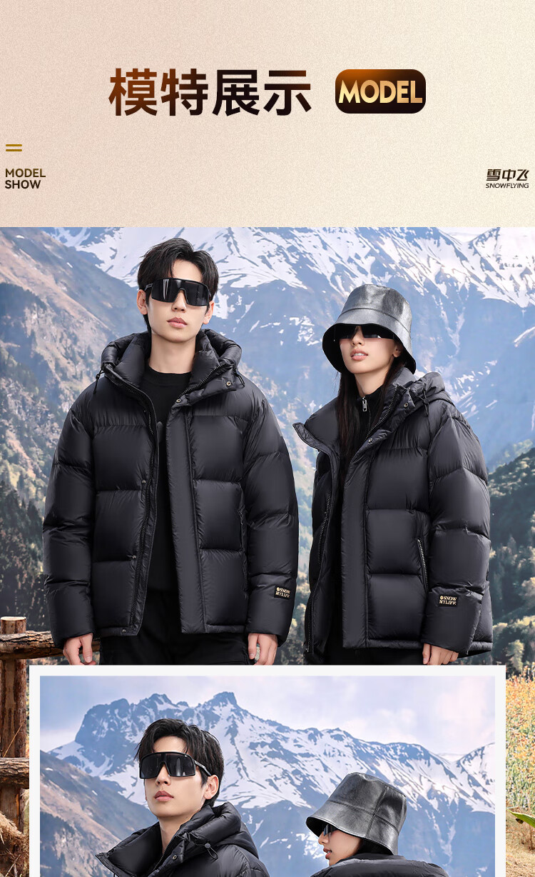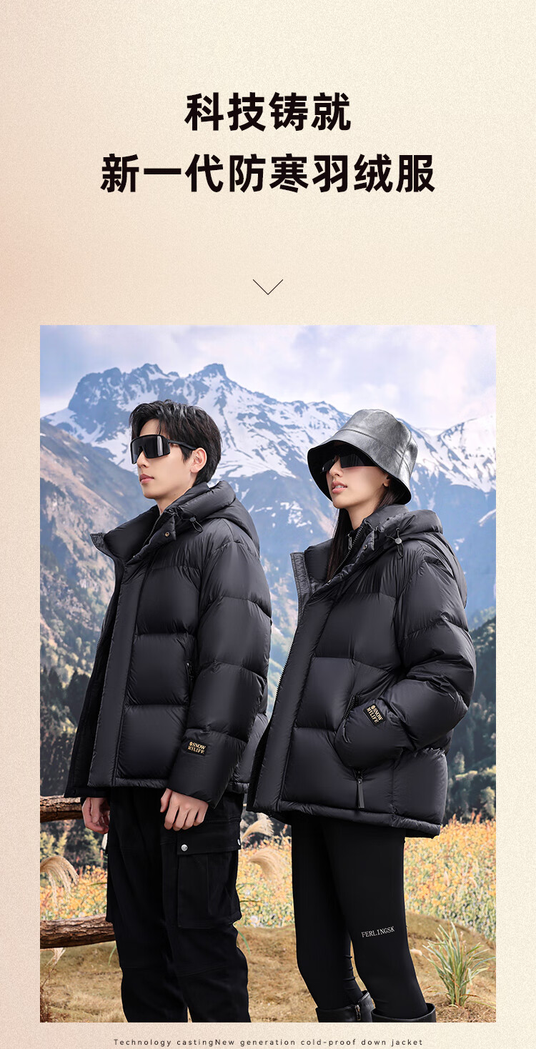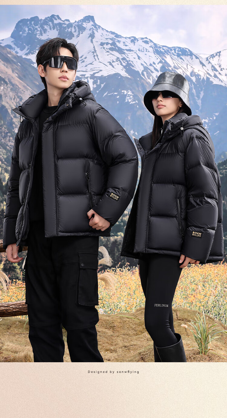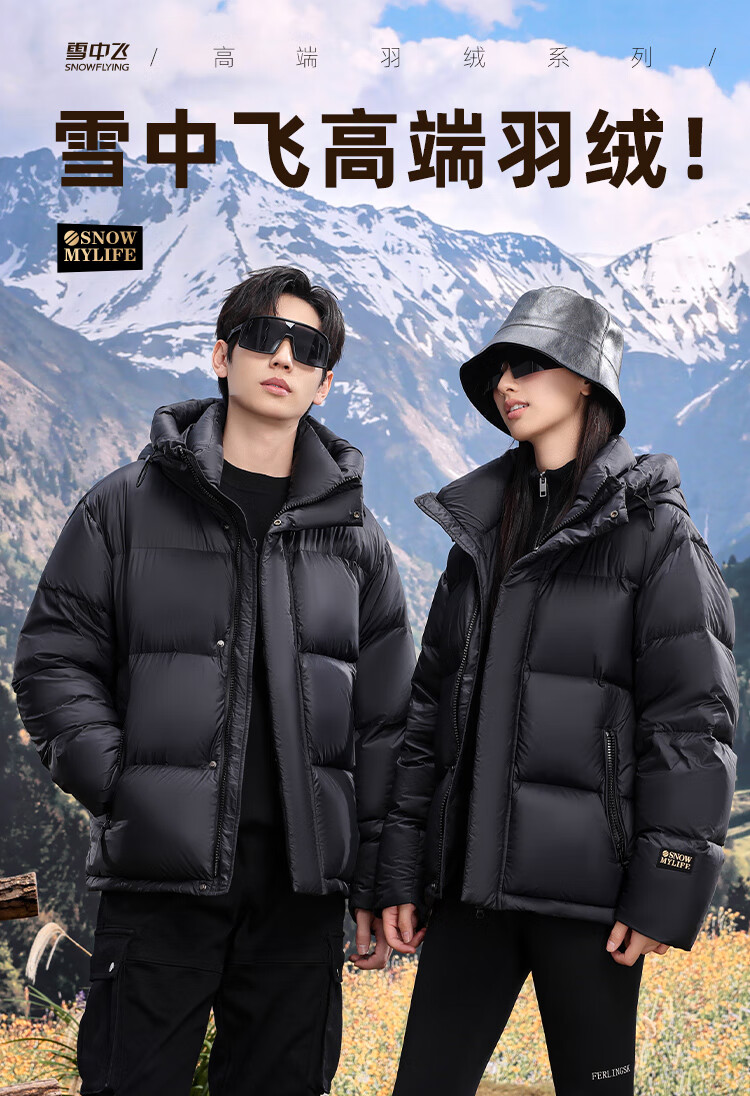 雪中飞男女同款羽绒服短款连帽高充绒蓬松舒适保暖防寒户外运动羽绒外套